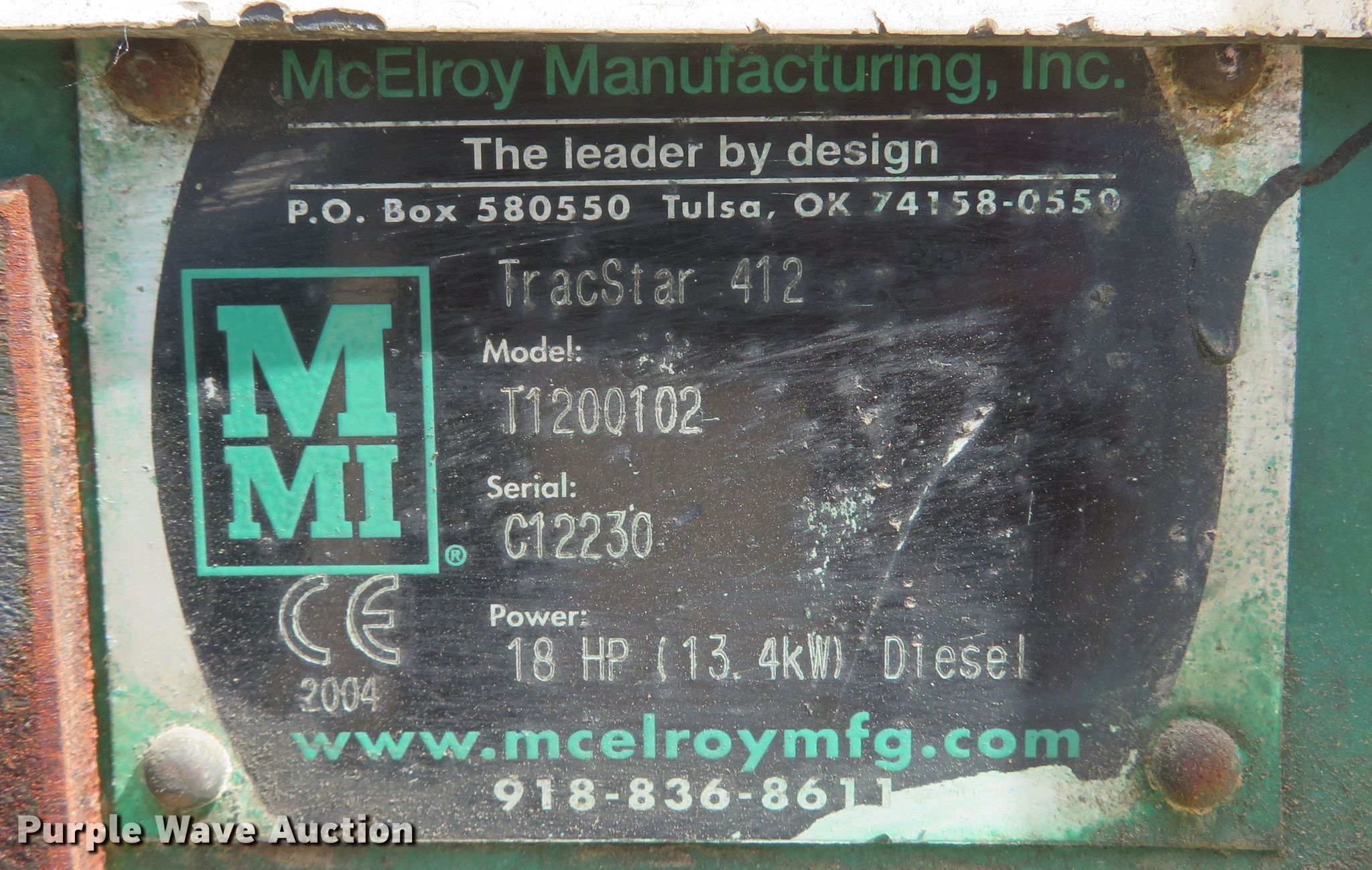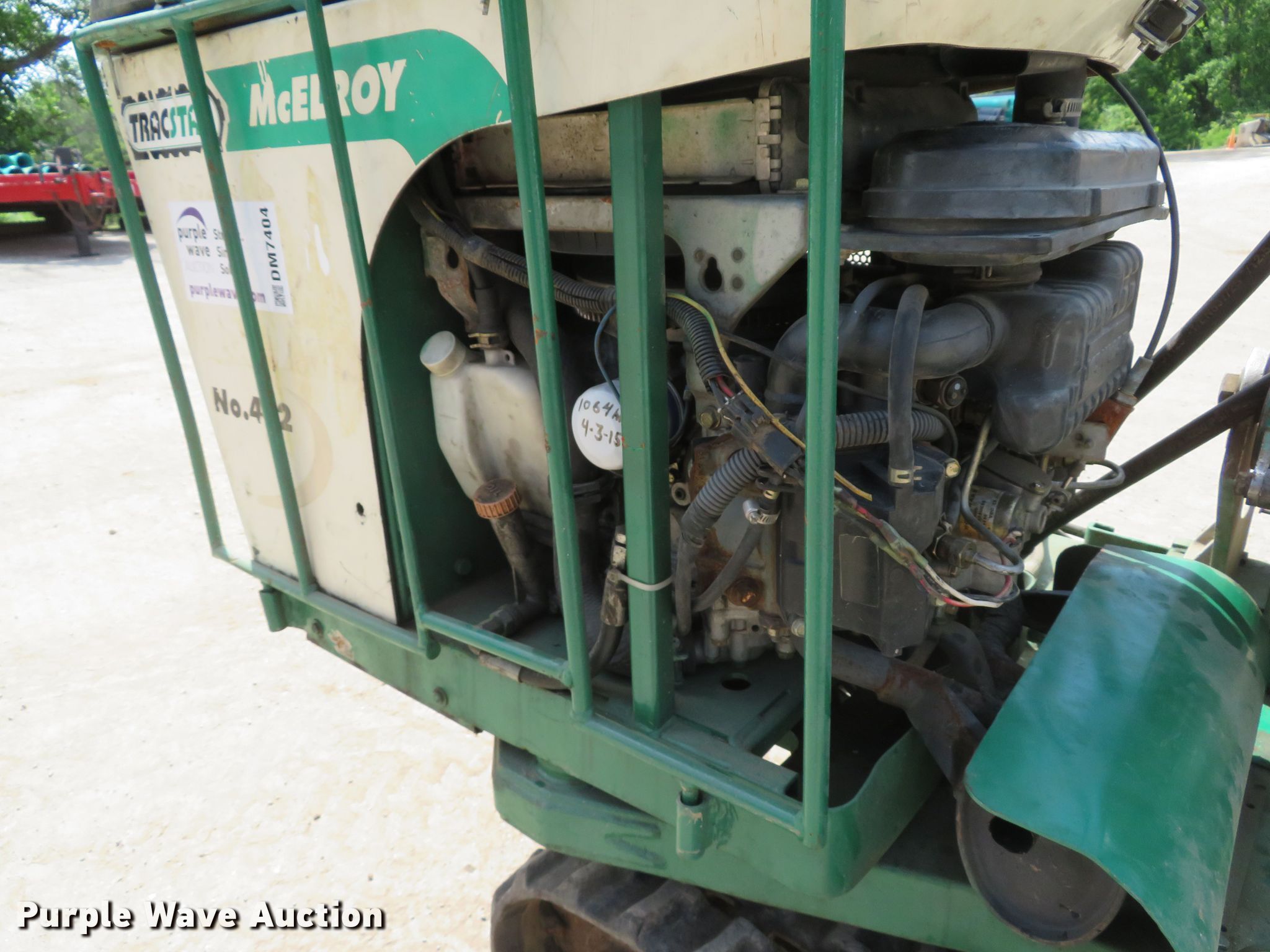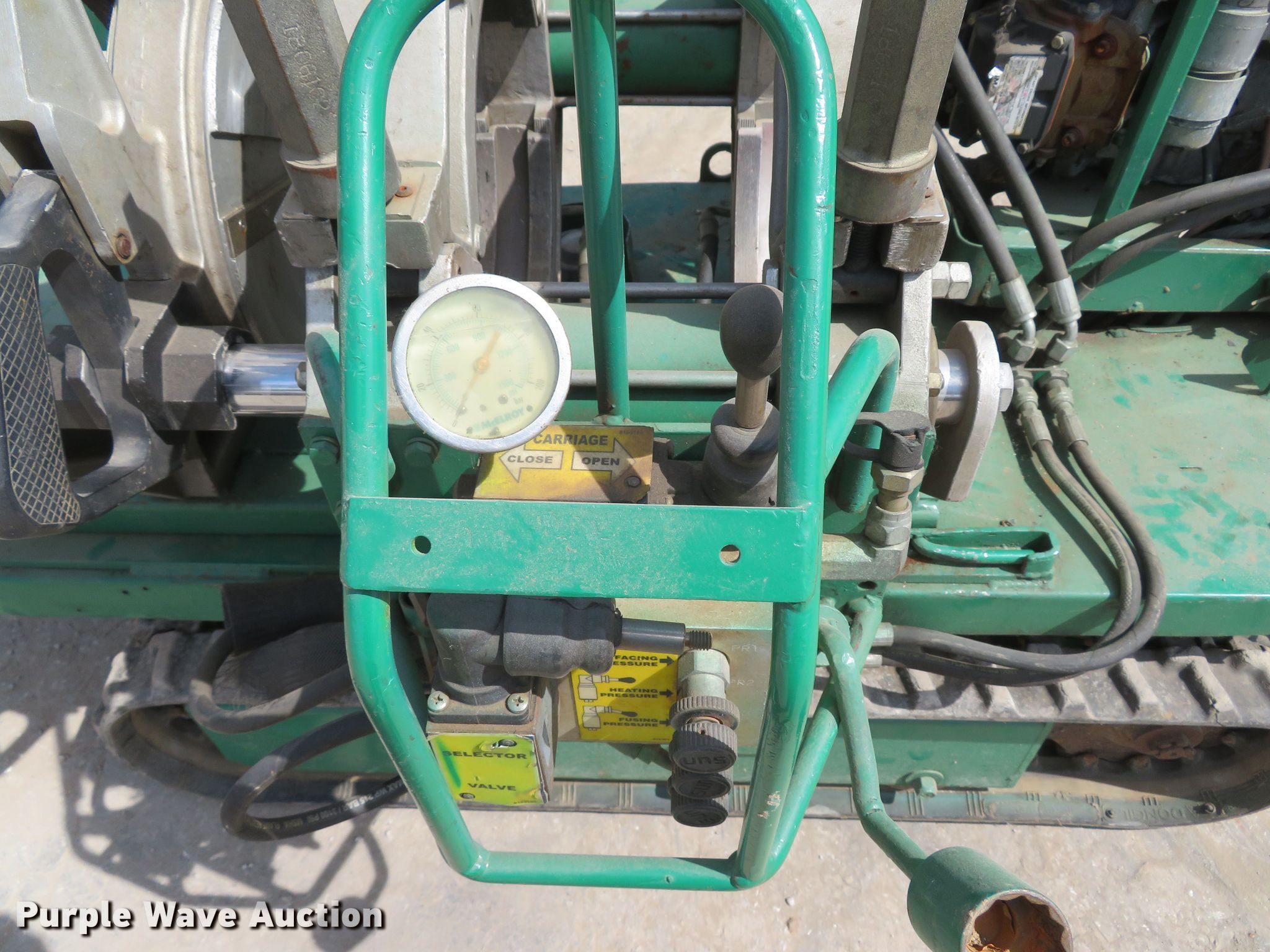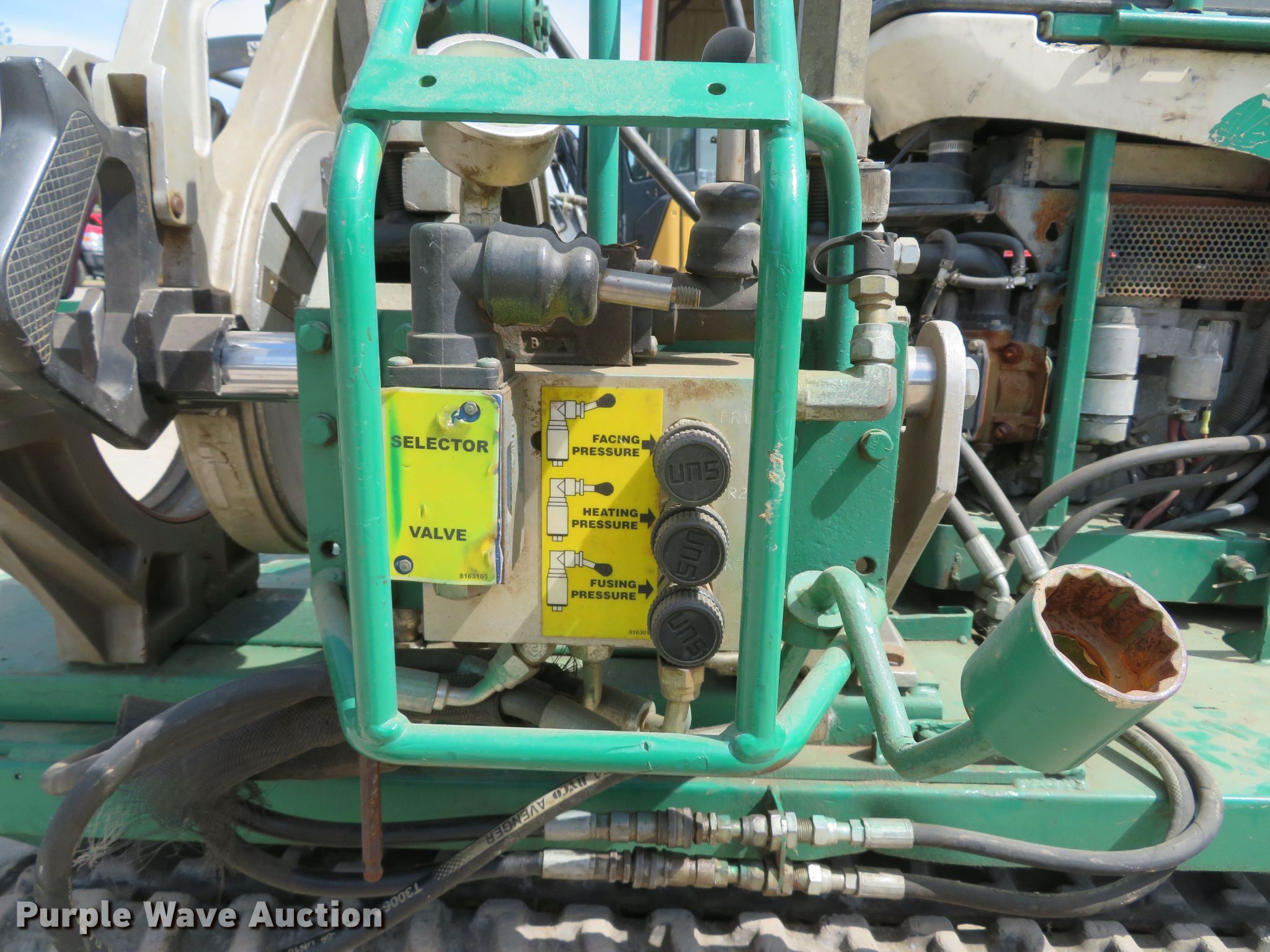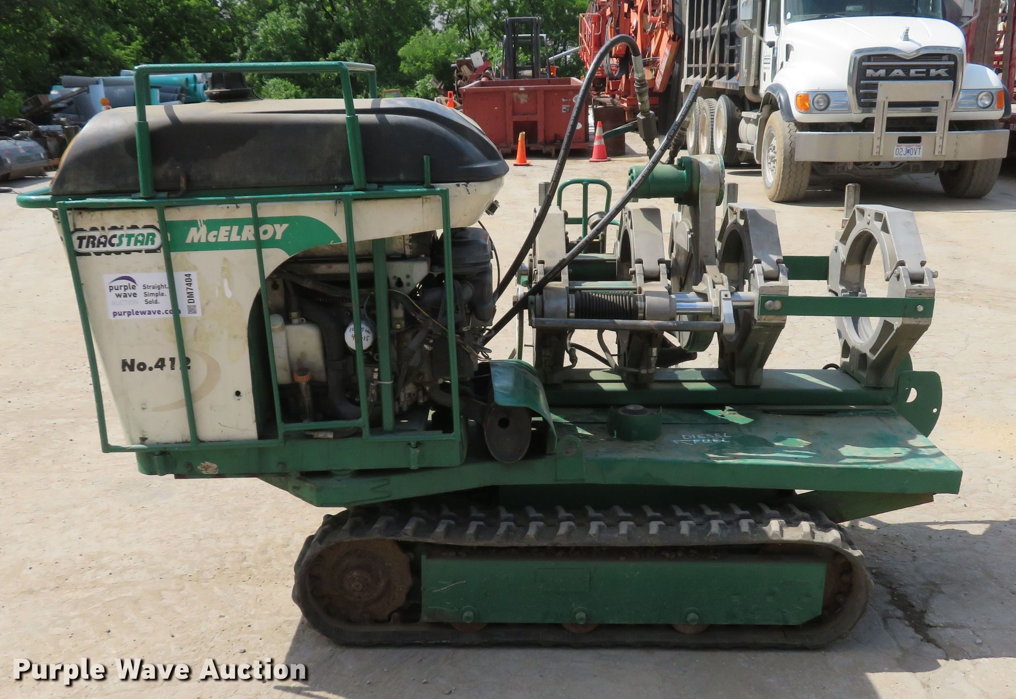 Purple Wave is selling a used Tools in Missouri. This item is a McElroy TracStar 412 poly pipe fusion machine with the following: 1,068 hours on meter, Yanmar 2V750-C two cylinder diesel engine, 18 HP, 4" IPS to 12" IPS, Four jaw carriage, Facer, 7" W rubber tracks, Serial: C12230, Unit #: 89, Heating plates not included