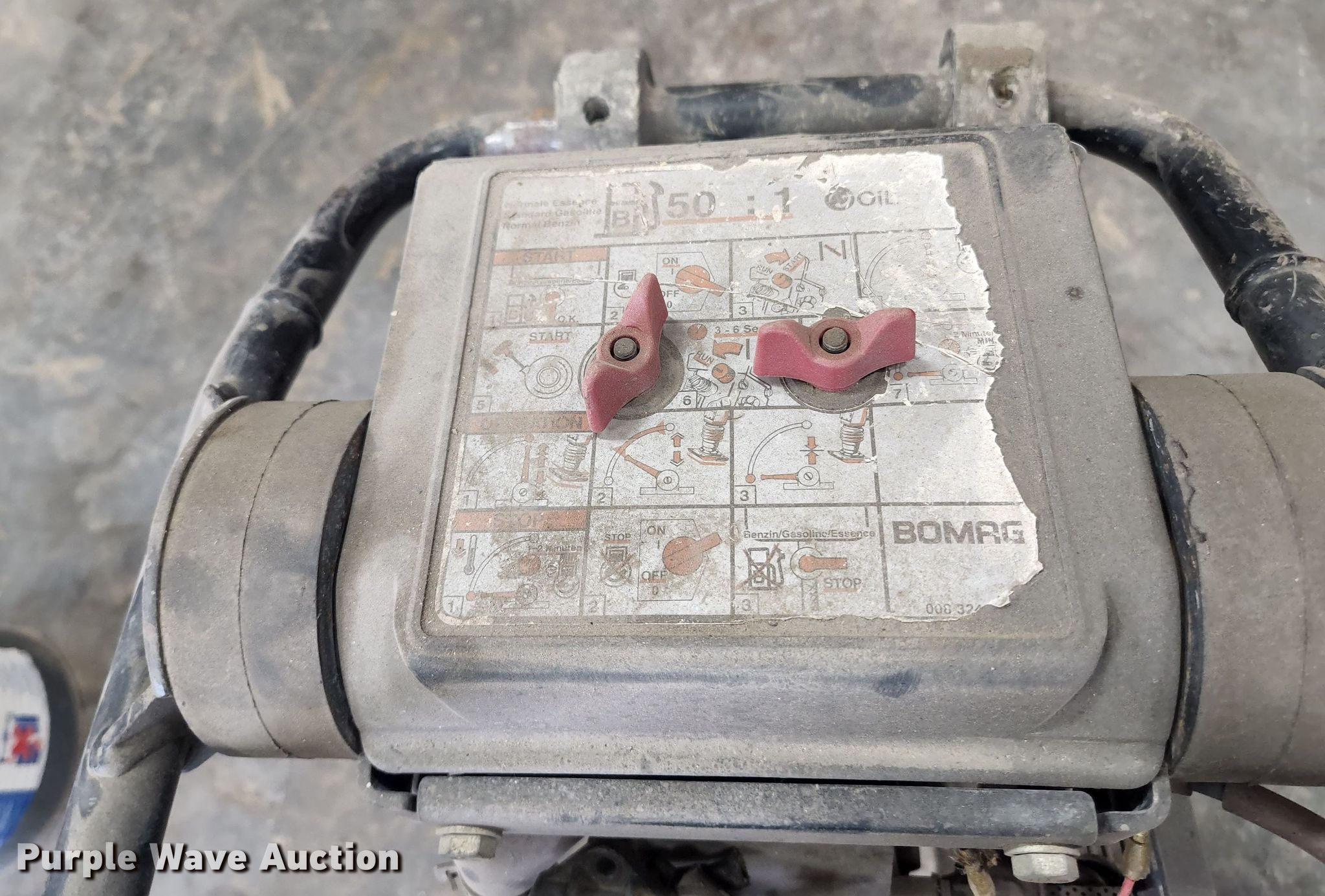 Purple Wave is selling a used Walk Behind Compactor in Missouri. This item is a 1998 Bomag BT60 plate compactor with the following: Single cylinder gas engine, Plate: 12" x 11", Non-operational unit