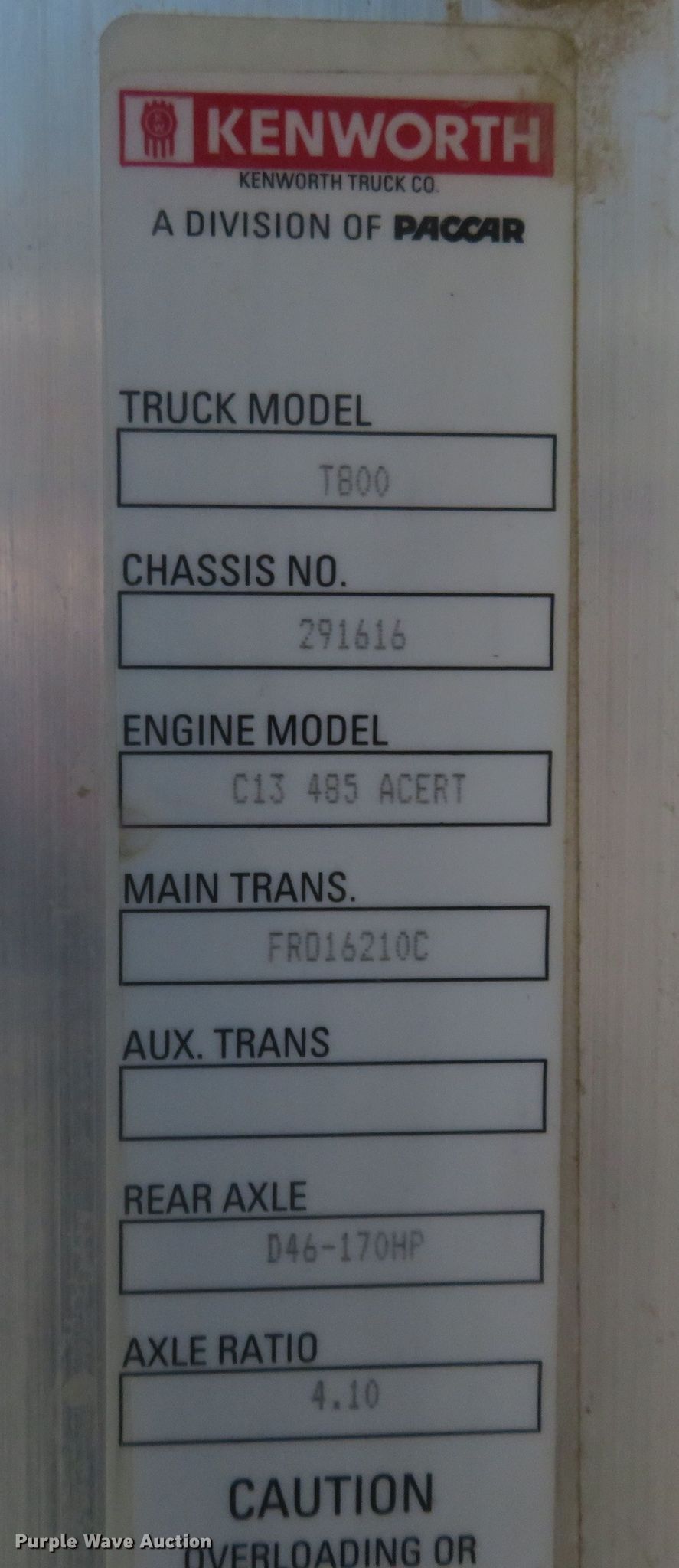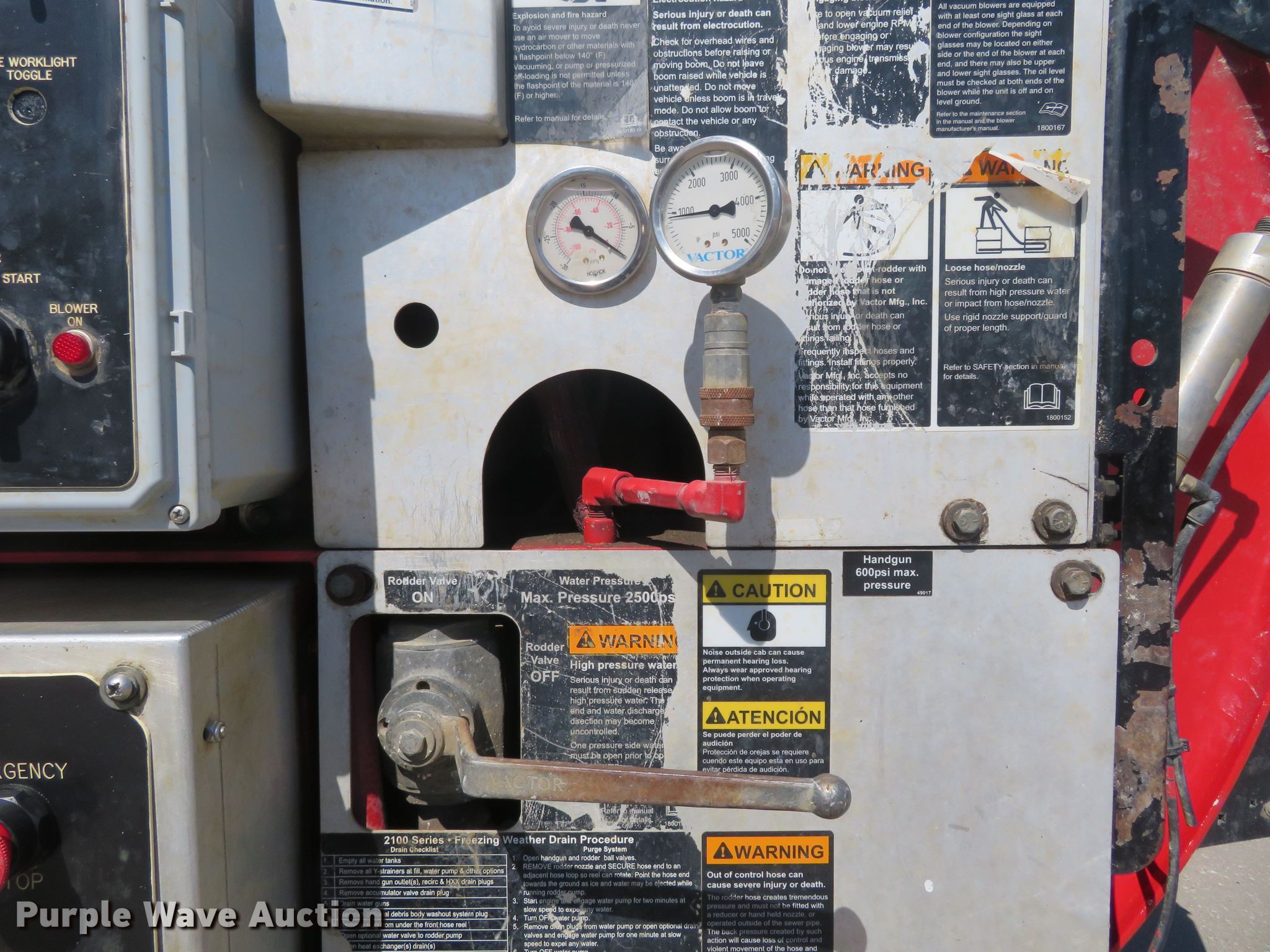 2011 Kenworth T800 sewer jetter truck. Miles: 219,314 on odometer, Hours: 1,836 on meter, VIN: 1NKDLU0XXBJ291616. Engine Caterpillar C13, Displacement: 12.5L, Cylinders: 6, Fuel type: Diesel, HP: 470. Transmission Eaton Fuller, Manual, Speed: 10. Chassis Axles: Tandem, Suspension: Spring over walking beam, Brakes: Air, PTO, GVWR: 66,000 lbs, Wheelbase: 265". Interior AC, Heat, Cruise control. Features Tank bed Vactor 2115P-18, Serial: 11-02V-12477, Capacity: 3,029 gallons, Rear manway, Water pump PSI: 2,500, GPM: 80, Vacuum pump Roots 824-RCS/16", CFM: 4,460, Water heater Water Pro-Tec WPT700K, Serial: 111813, BTU: 700,000, Hose reel Front, Hydraulic, Diameter: 1", Length: 800', Telescopic boom Diameter: 8", Remote control. Tires Front: 425/65R22.5, Rear: 11R22.5. Notes Windshield chipped or cracked, Non-operational climate controls, Remote control will not sync. Missouri title. Title has a lien that will be released following the close of the auction. Title distribution may be delayed up to 30 days from verification of funds. Bi-State Utilities Co - Open Inspection June 21 and 22. 12894 Pennridge Dr. Bridgeton, MO 63044