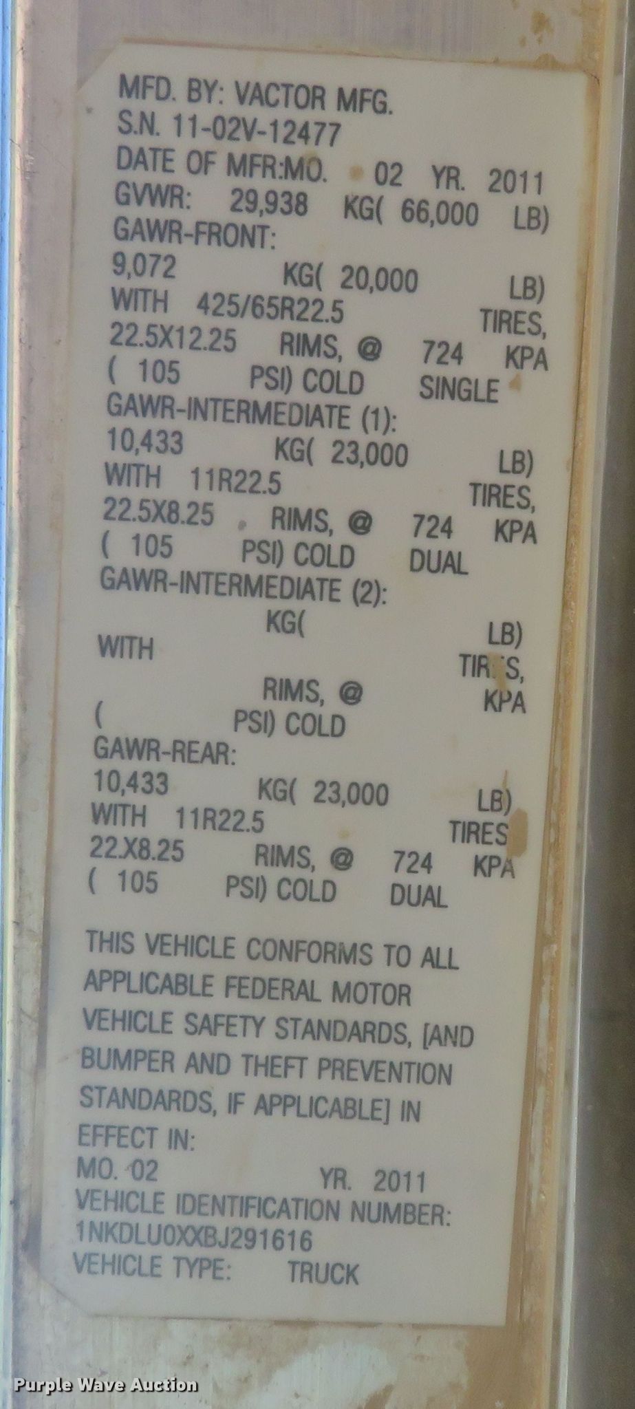 Purple Wave is selling a used Vacuum Truck in Missouri. This item is a 2011 Kenworth T800 sewer jetter truck with the following: Miles: 219,314 on odometer, Hours: 1,836 on meter, VIN: 1NKDLU0XXBJ291616