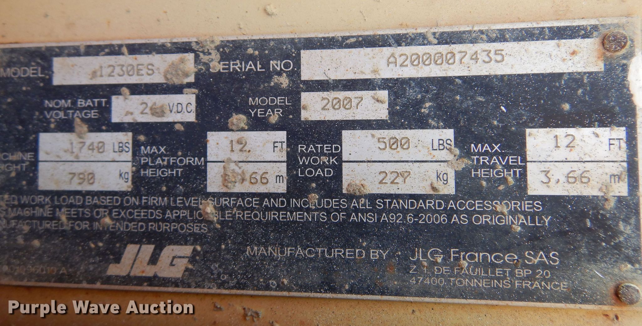 Purple Wave is selling a used Scissor or Vertical Lift in Oklahoma. This item is a 2007 JLG 1230ES scissor lift with the following: Hours: 474 on meter, Serial: A200007435