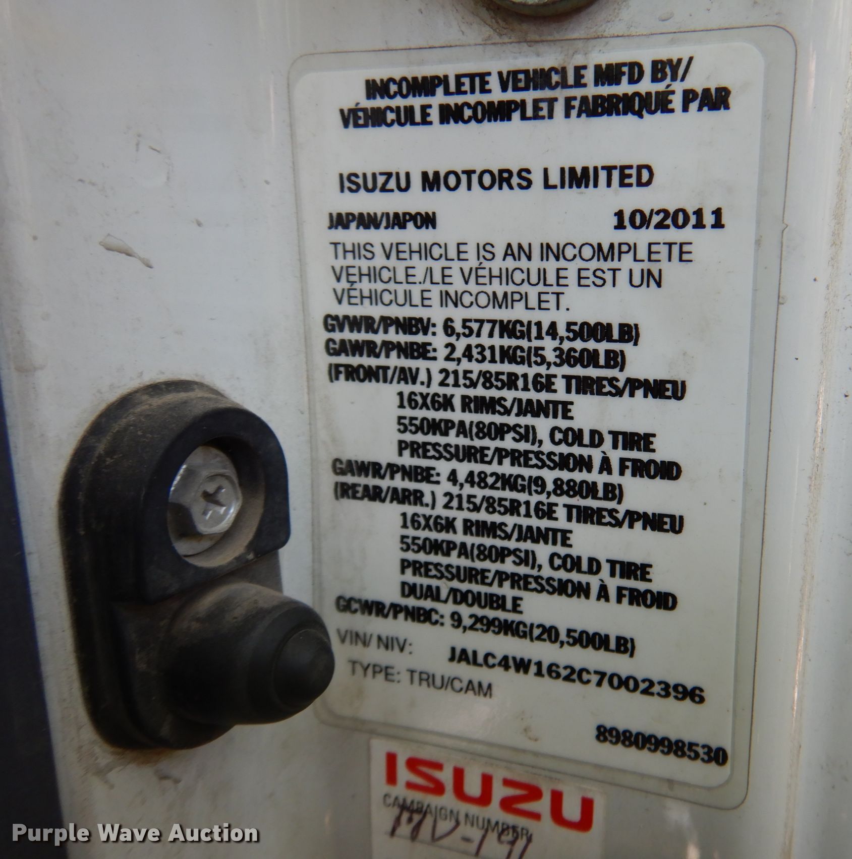- VIN: JALC4W162C7002396