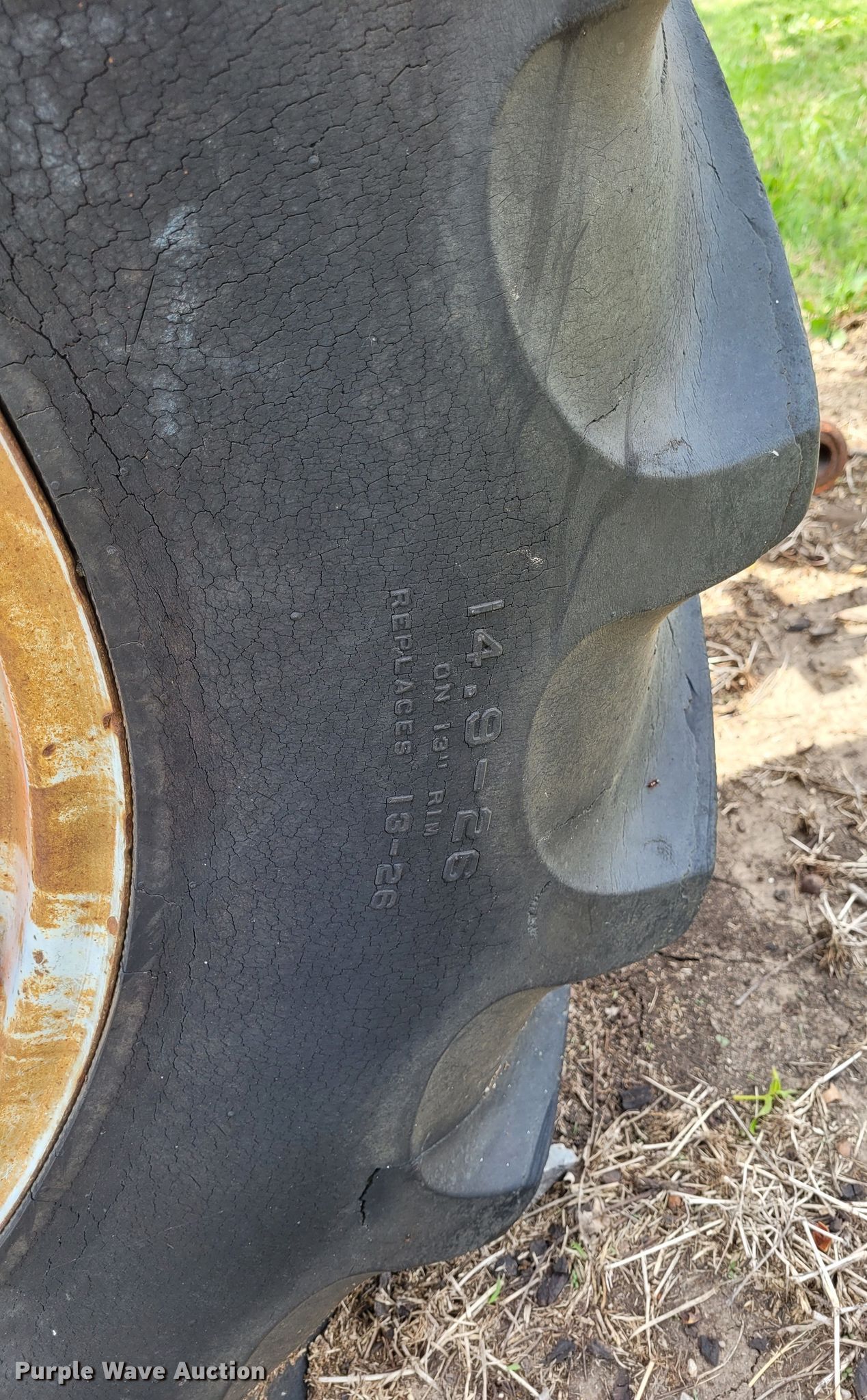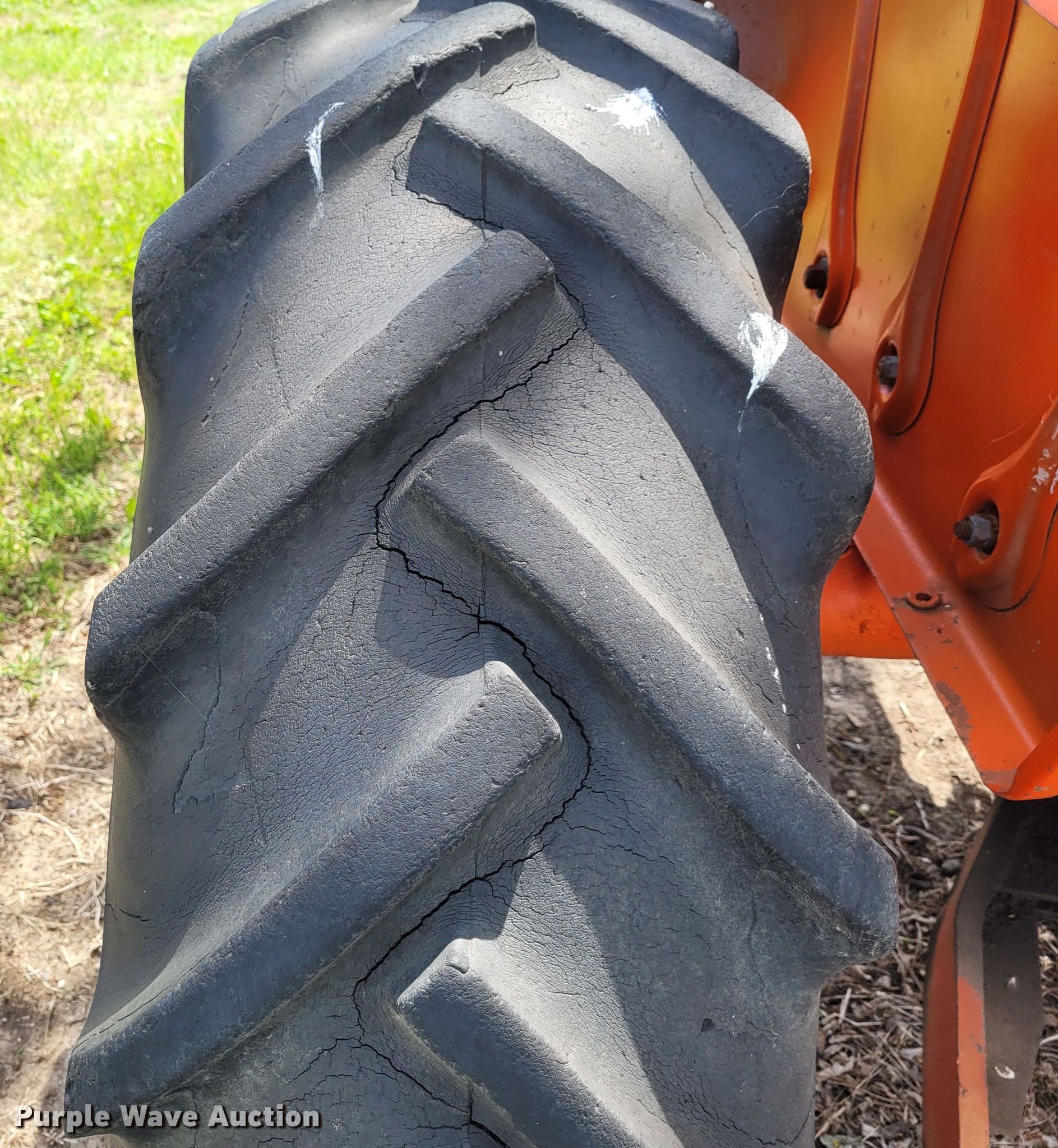 Allis Chalmers D14 tractor. Hours: 3,182 on meter, Serial: 221068. Engine Fuel type: Gas. Transmission Manual, 4F - 1R. Features PTO: 540, Three point. Tires Front: 5.50-16, Rear: 14.9-26. Dennett's Service. Winfield, KS 67156