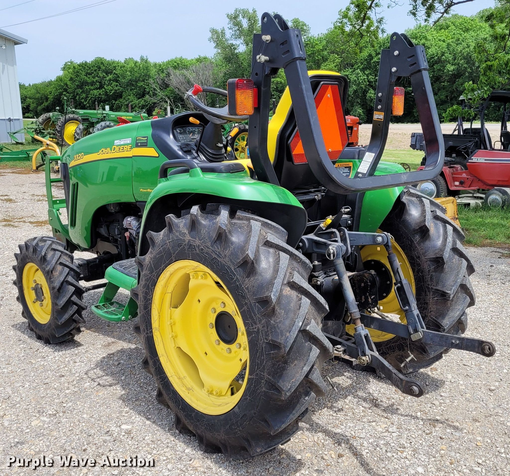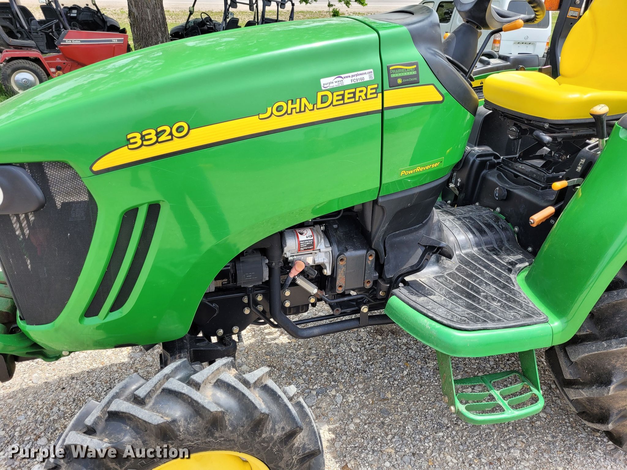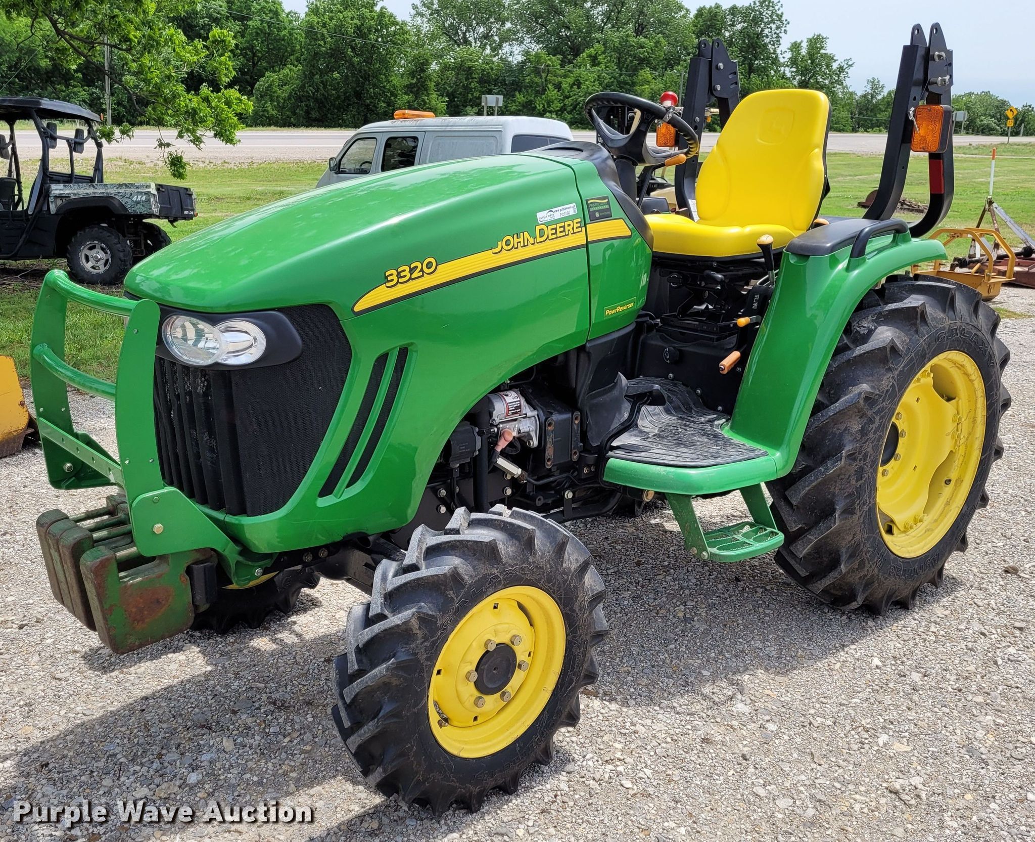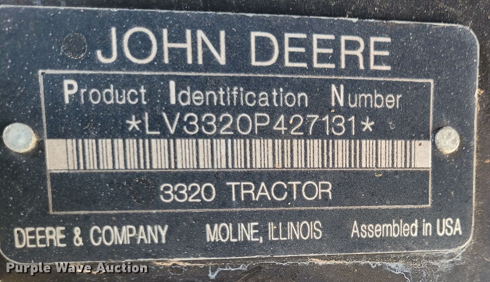 Purple Wave is selling a used Tractor in Kansas. This item is a John Deere 3320 MFWD tractor with the following: Hours: 233 on meter, Serial: LV3320P427131