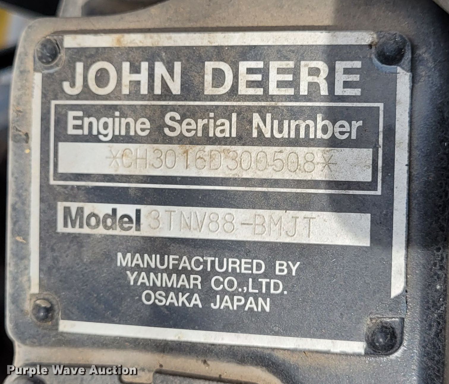 John Deere 3320 MFWD tractor. Hours: 233 on meter, Serial: LV3320P427131. Engine Yanmar, Cylinders: 3, Fuel type: Diesel. Transmission PowrReverser, 12F - 12R, Left-hand reverser. Features PTO: 540, Three point. Tires Front: 7-14, Rear: 11.2-24. Dennett's Service. Winfield, KS 67156