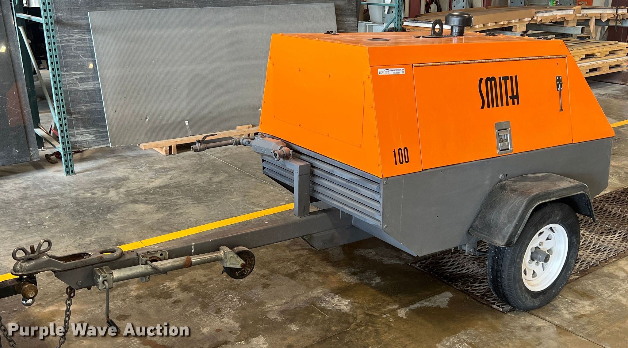 Purple Wave is selling a used Air Compressor in Missouri. This item is a Smith 100 air compressor with the following: Hours: 490 on meter, Serial: 68746L