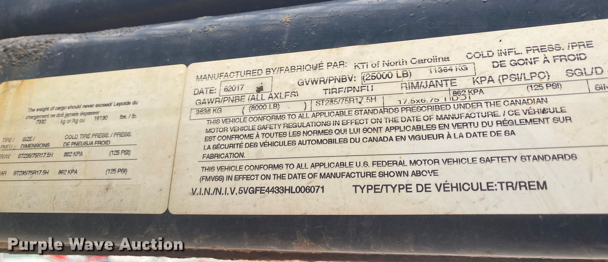 Purple Wave is selling a used Car Carrier in Oklahoma. This item is a 2017 KTI Mini-5 car carrier with the following: VIN: 5VGFE4433HL006071