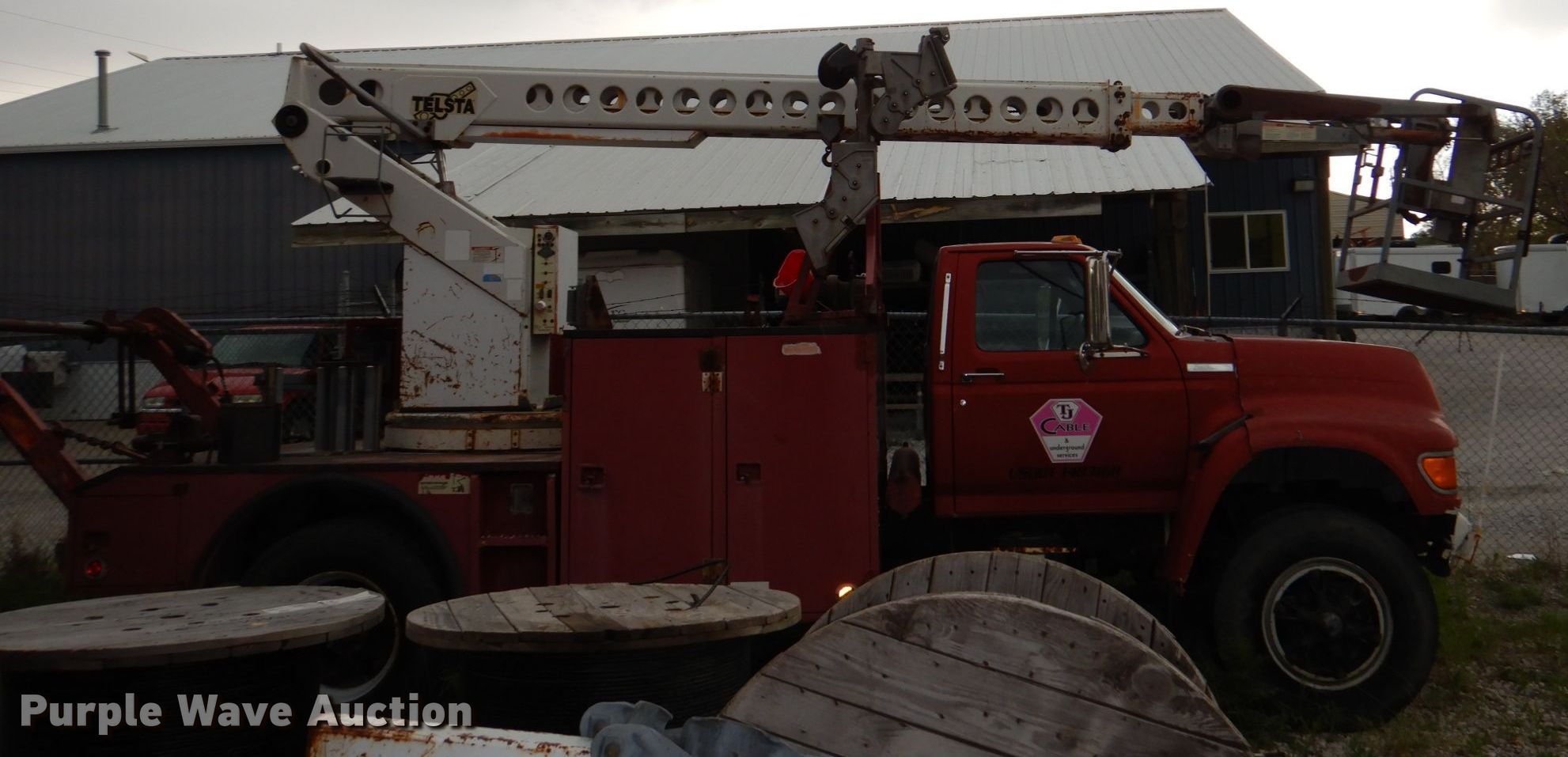 This 1995 Ford F800 bucket truck will sell to the highest bidder regardless of price.