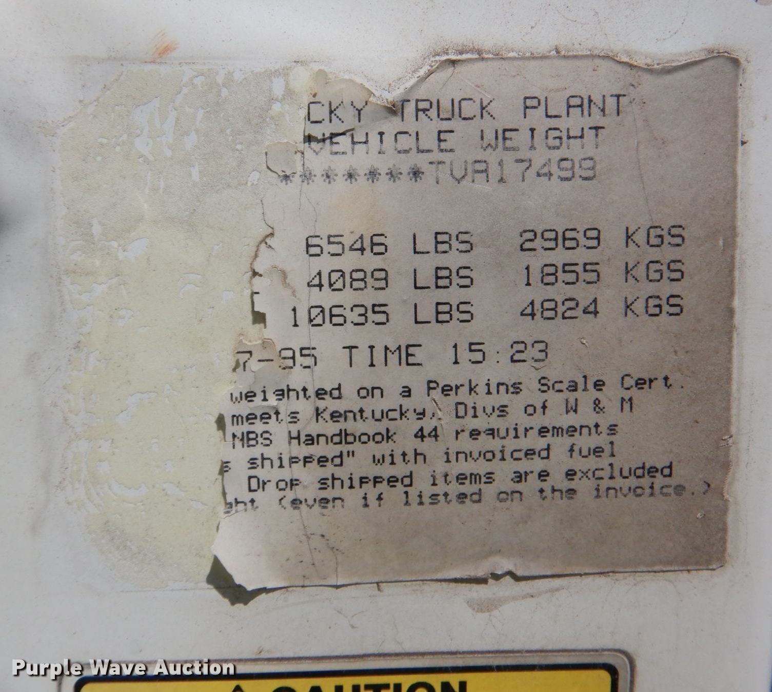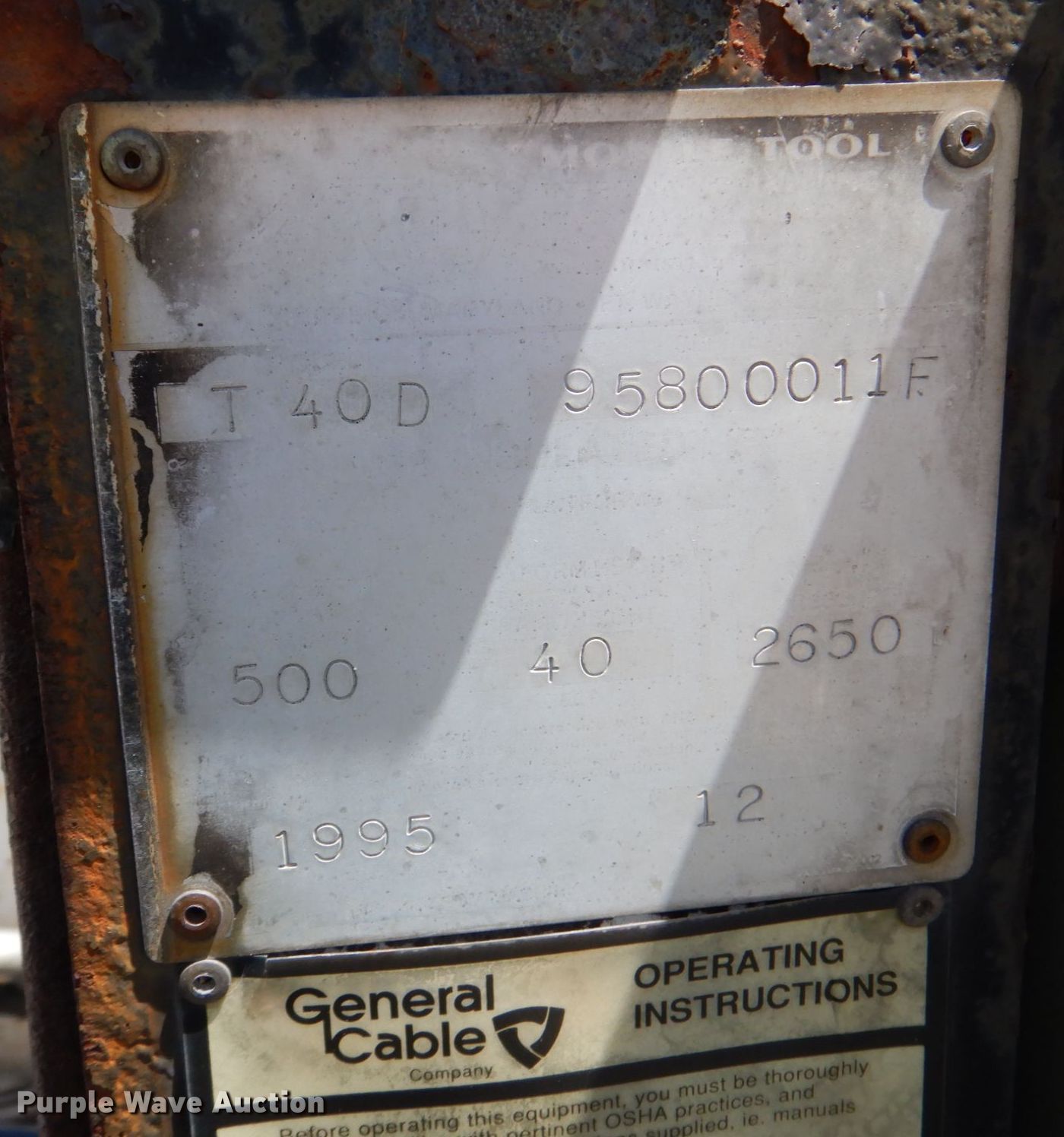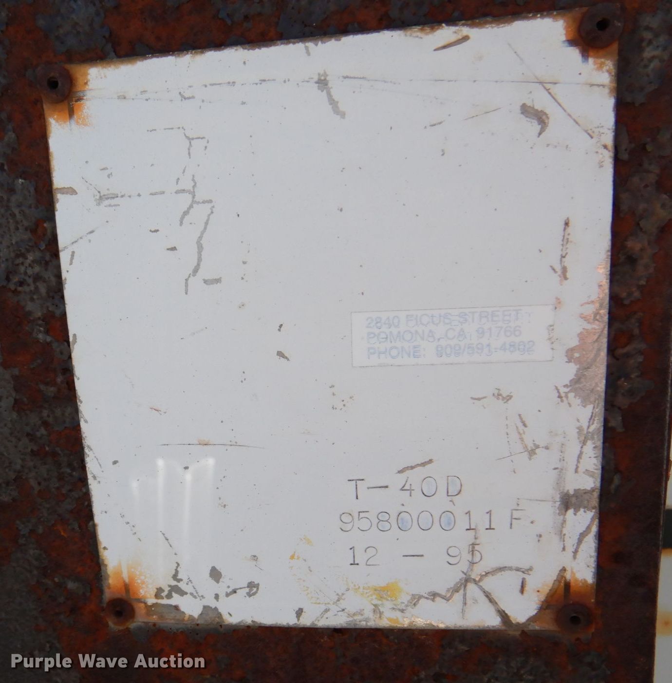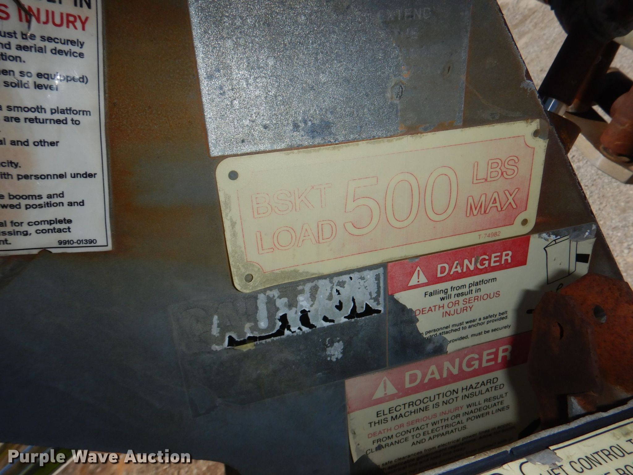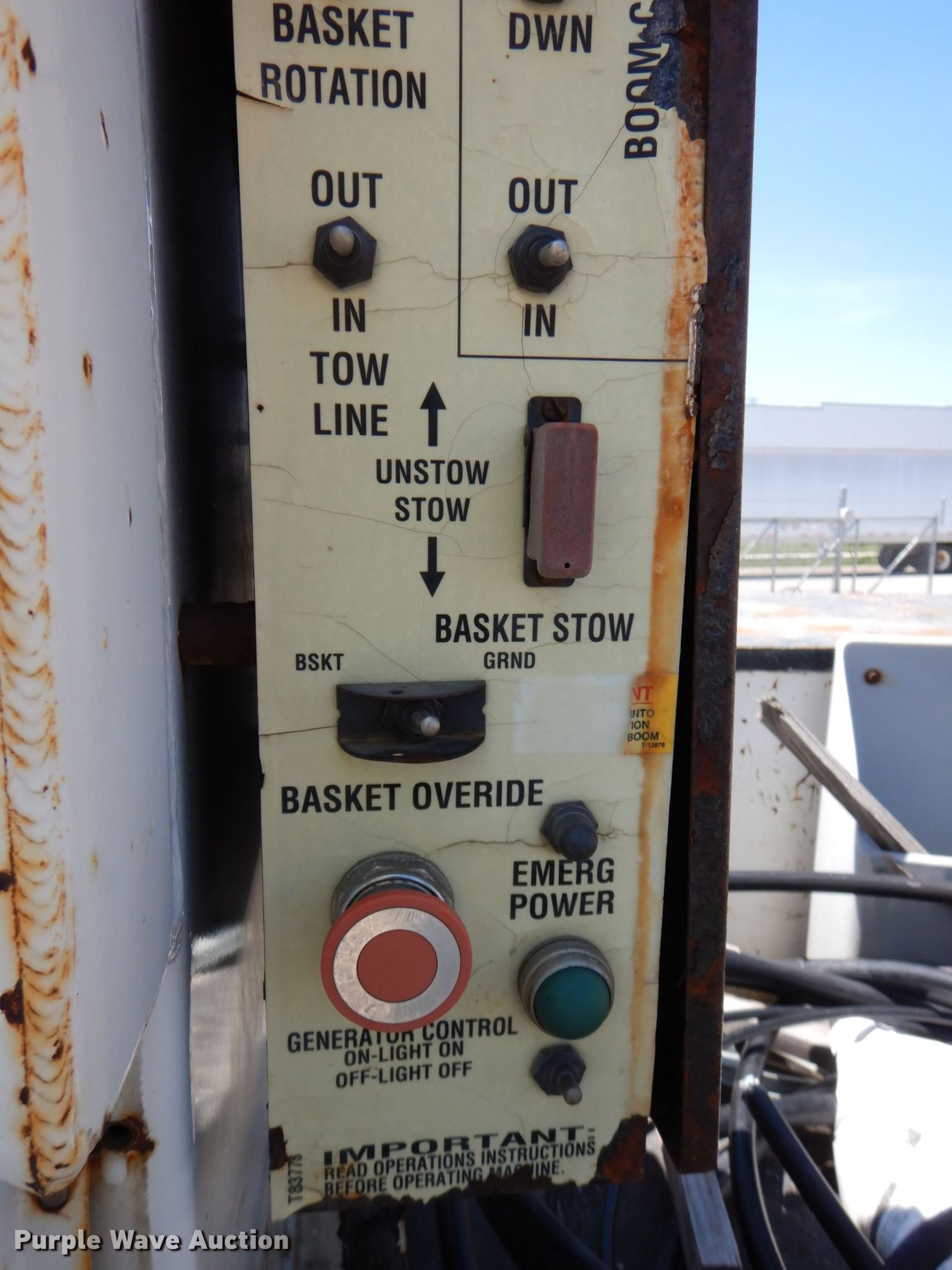 1996 Ford F800 bucket truck. Miles: 62,741 on odometer, Hours: 9,074 on meter, VIN: 1FDXF80E9TVA17499. Engine Displacement: 8.3L, Cylinders: 6, Fuel type: Diesel. Transmission Automatic. Chassis Axles: Single, Suspension: Spring, Brakes: Air, GVWR: 33,000 lbs, Wheelbase: 181". Interior Heat, Auxiliary controls, Brake controller. Features Bed 12' 3" L x 96" W, Boom Telsta T40D, Boom length: 40', Maximum lift capacity: 500 lbs, Boom type: Telescopic, Man basket, Boom controls Ground, Platform/ basket, Reel Width: 48". Tires Size: 11R22.5. Notes Non-operational unit. Nebraska title. TJ Cable. 325 SW 31st St. Lincoln, NE 68522