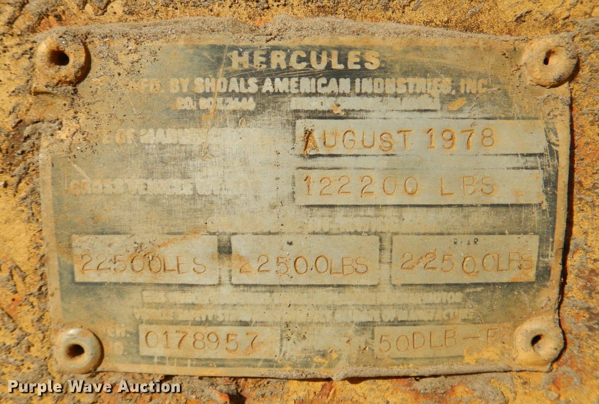 Purple Wave is selling a used Equip. Trailer in Texas. This item is a 1978 Hercules 50DLB-F lowboy equipment trailer with the following: VIN: 0178957