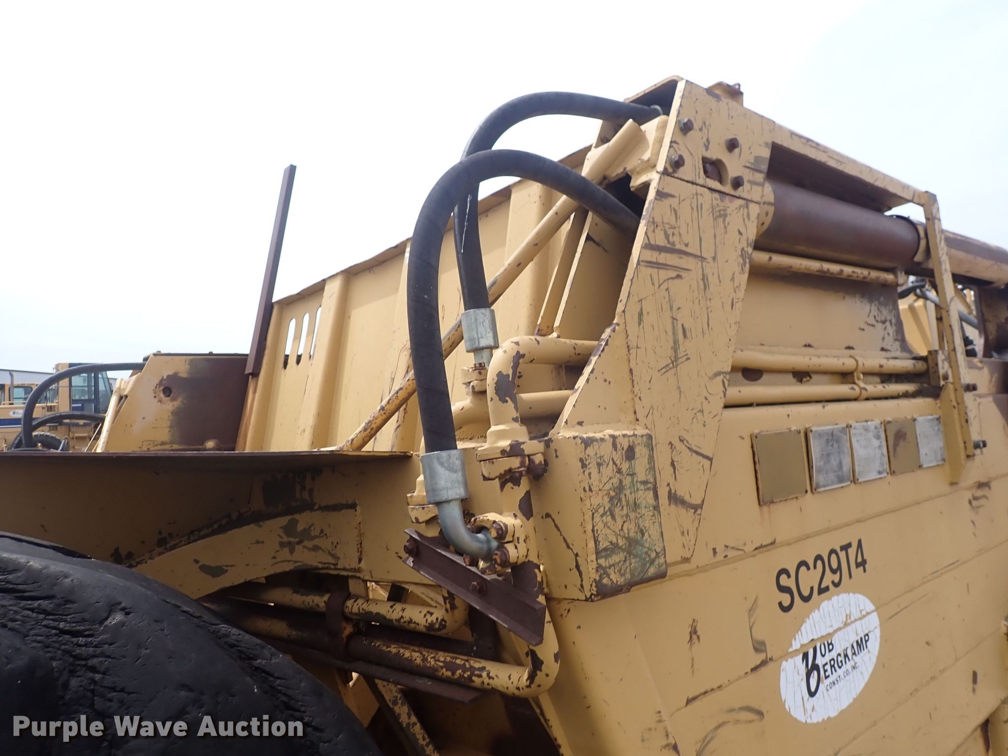 Scraper. Features. Working width: 9', Hydraulic lift. Tires Front: 23.5-25, Rear: 29.5-29. Bob Bergkamp Construction. 3709 S West St. Wichita, KS 67217
