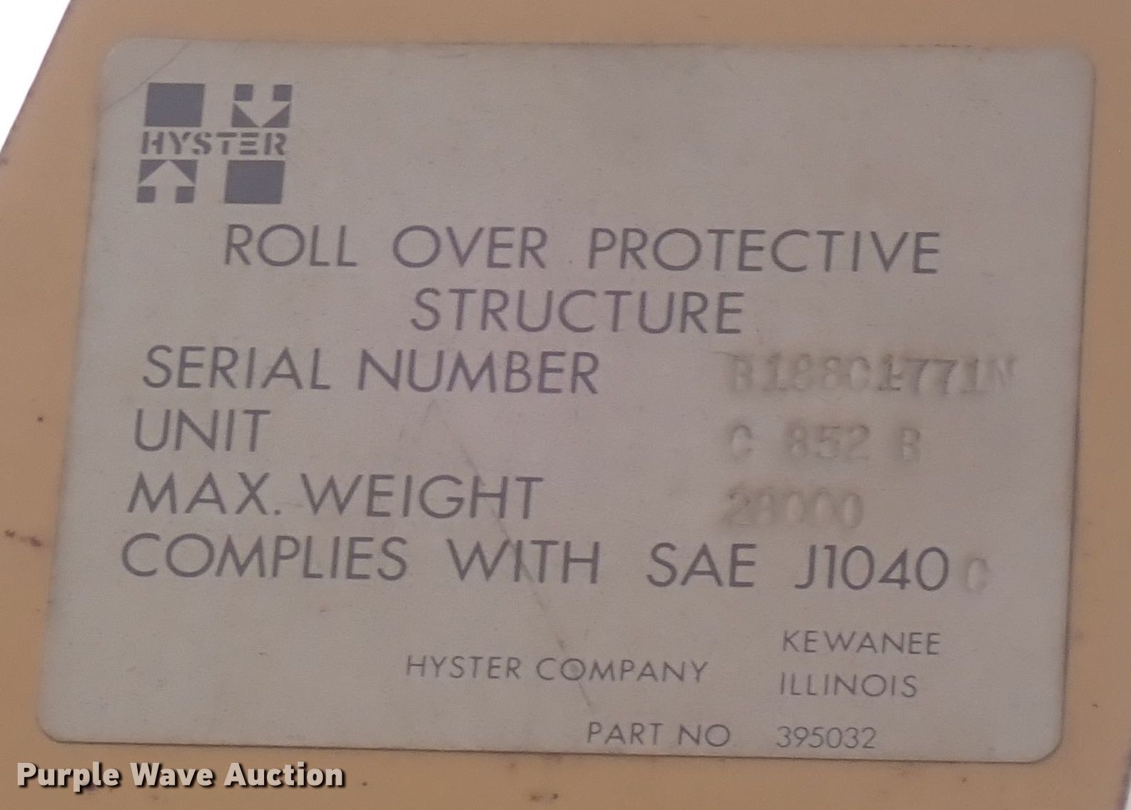 Purple Wave is selling a used Single Drum Roller Compactor in Kansas. This item is a Hyster C852B single drum vibratory roller with the following: Hours: 8,587 on meter, Serial: B188C1771N