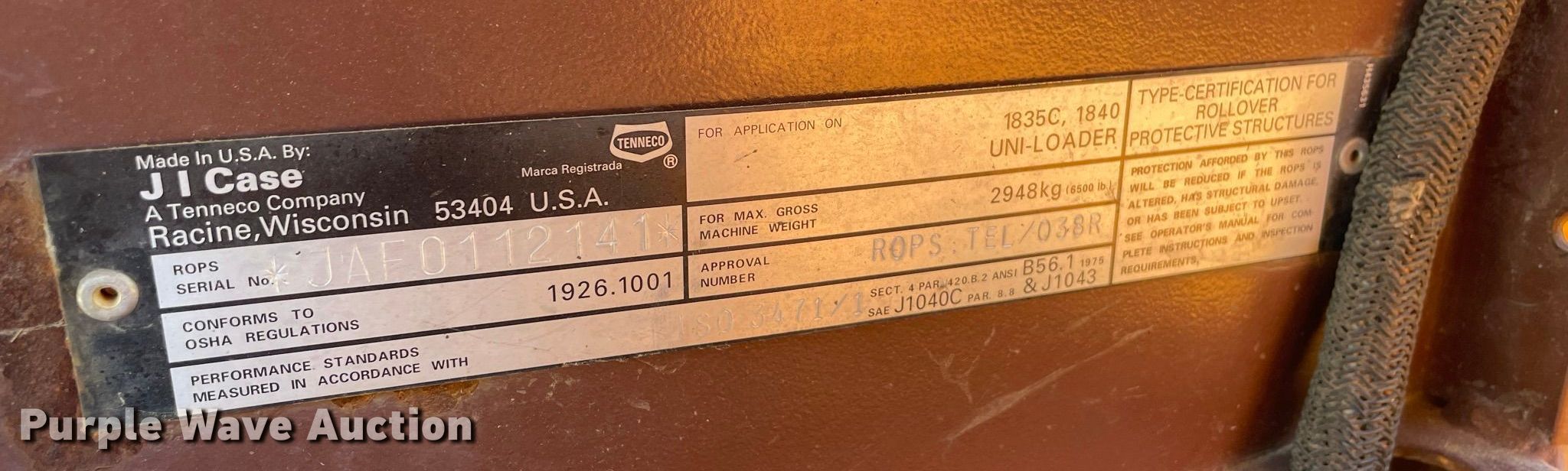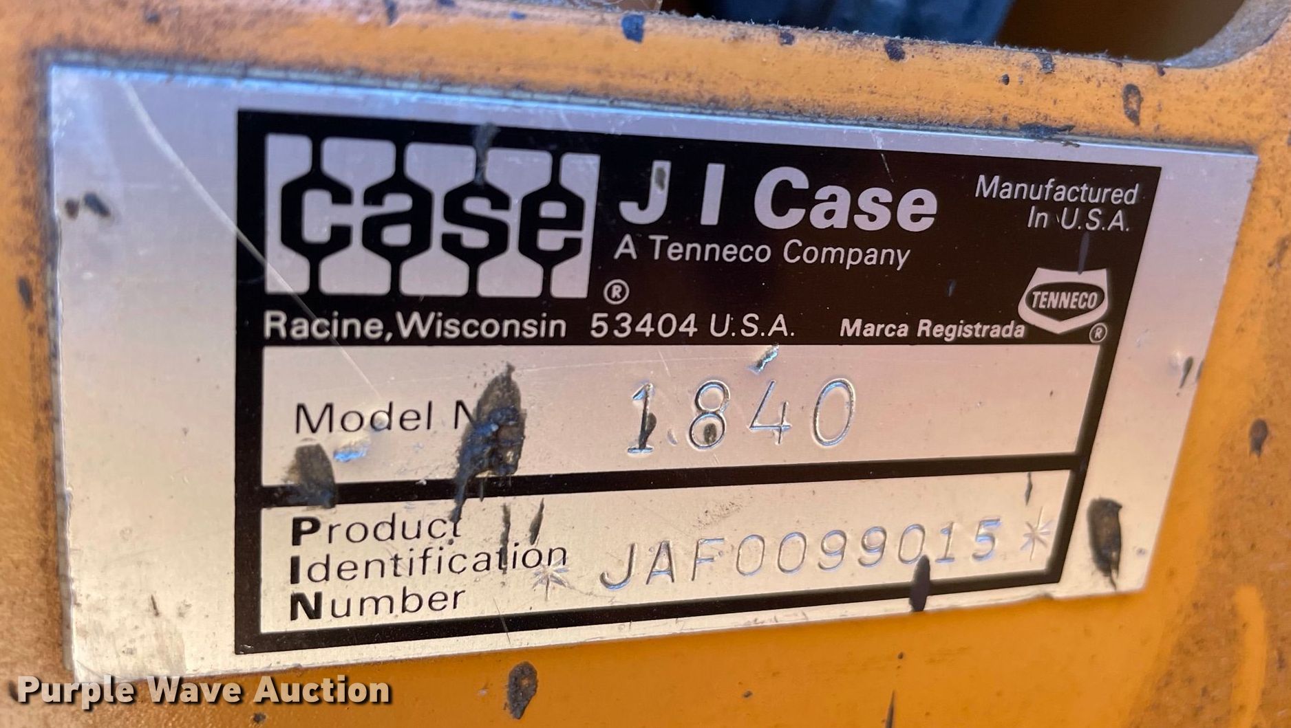 Purple Wave is selling a used Skid Steer Loader in Missouri. This item is a 1992 Case 1840 skid steer loader with the following: Hours: 1,804 on meter, Serial: JAF0099015