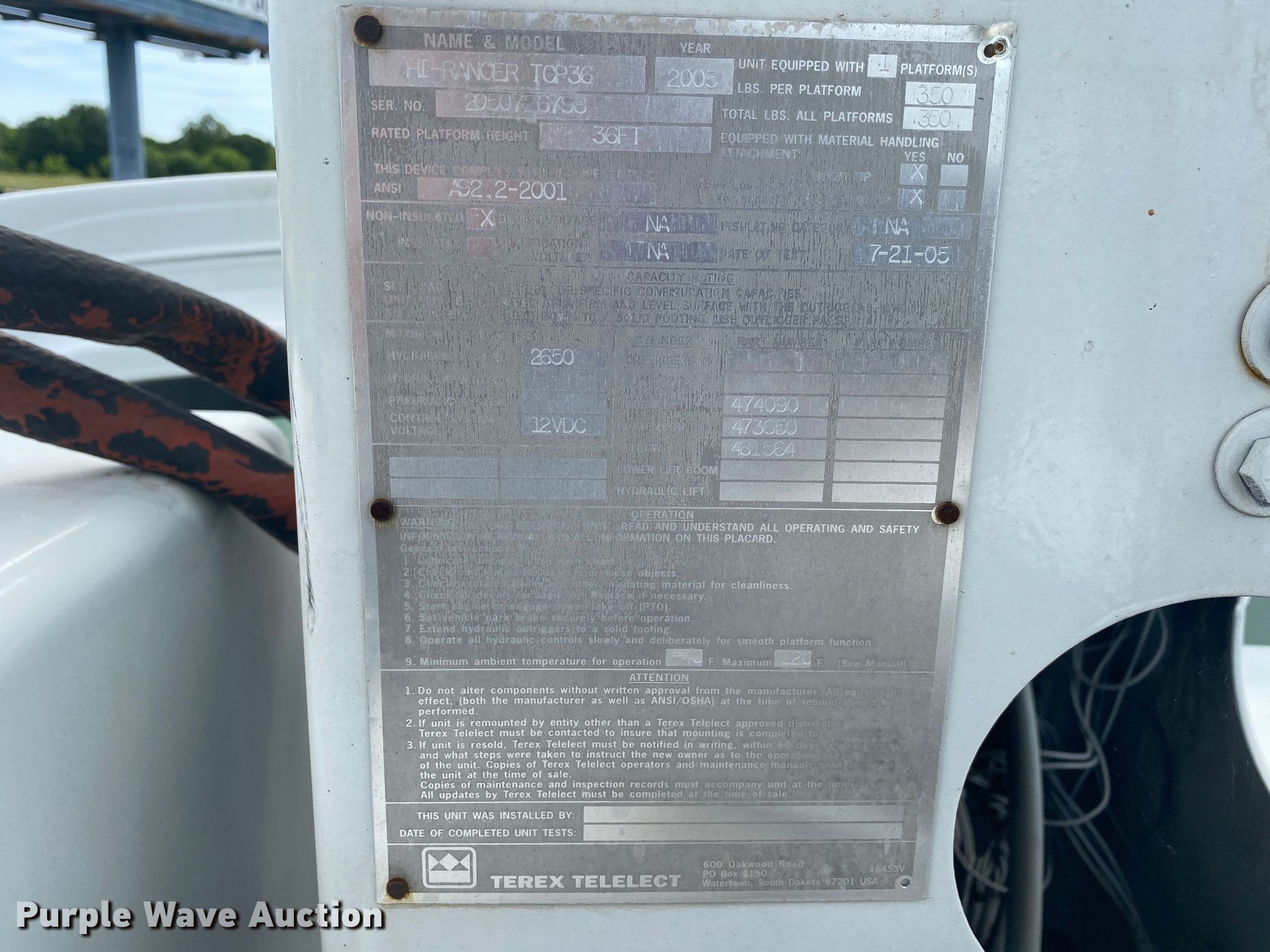 2005 GMC C5500 bucket truck. Miles: 86,427 on odometer, VIN: 1GDE5C1E45F901696. Engine Displacement: 8.1L, Cylinders: 8, Fuel type: Gas. Transmission Automatic. Chassis Axles: Single, Suspension: Spring, Brakes: Hydraulic, GVWR: 19,500 lbs. Interior AC, Heat, Cruise control. Features Bed Brandfx Body Co., 12' 6" L x 94" W, Boom 2005 Hi-Ranger Top36, Serial: 2050726798, Maximum lift capacity: 350 lbs, Maximum lift height: 36', Boom type: Insulated, Telescopic, Man basket, Boom controls Platform/ basket.. Tires Size: 225/70R19.5. Oklahoma title. 15600 N 145th E Ave. Collinsville, OK 74021