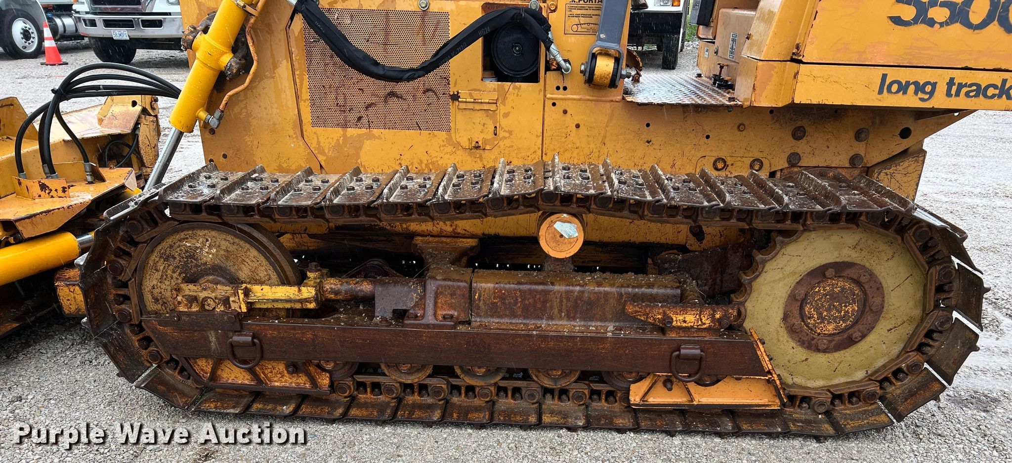 1995 Case 550G dozer. Hours: 3,507 on meter, Serial: JJG0215235. Engine Caterpillar, Cylinders: 4, Fuel type: Diesel. Transmission Powershift. Operators station OROPS, Steering: Clutch brake. Features Screen guards, Dozer blade Type: 6-way, Straight, Width: 8'. Tracks Width: 16", Grouser pads: Single, Bottom rollers: 6. Sellenriek Construction Inc.. Jonesburg, MO 63351