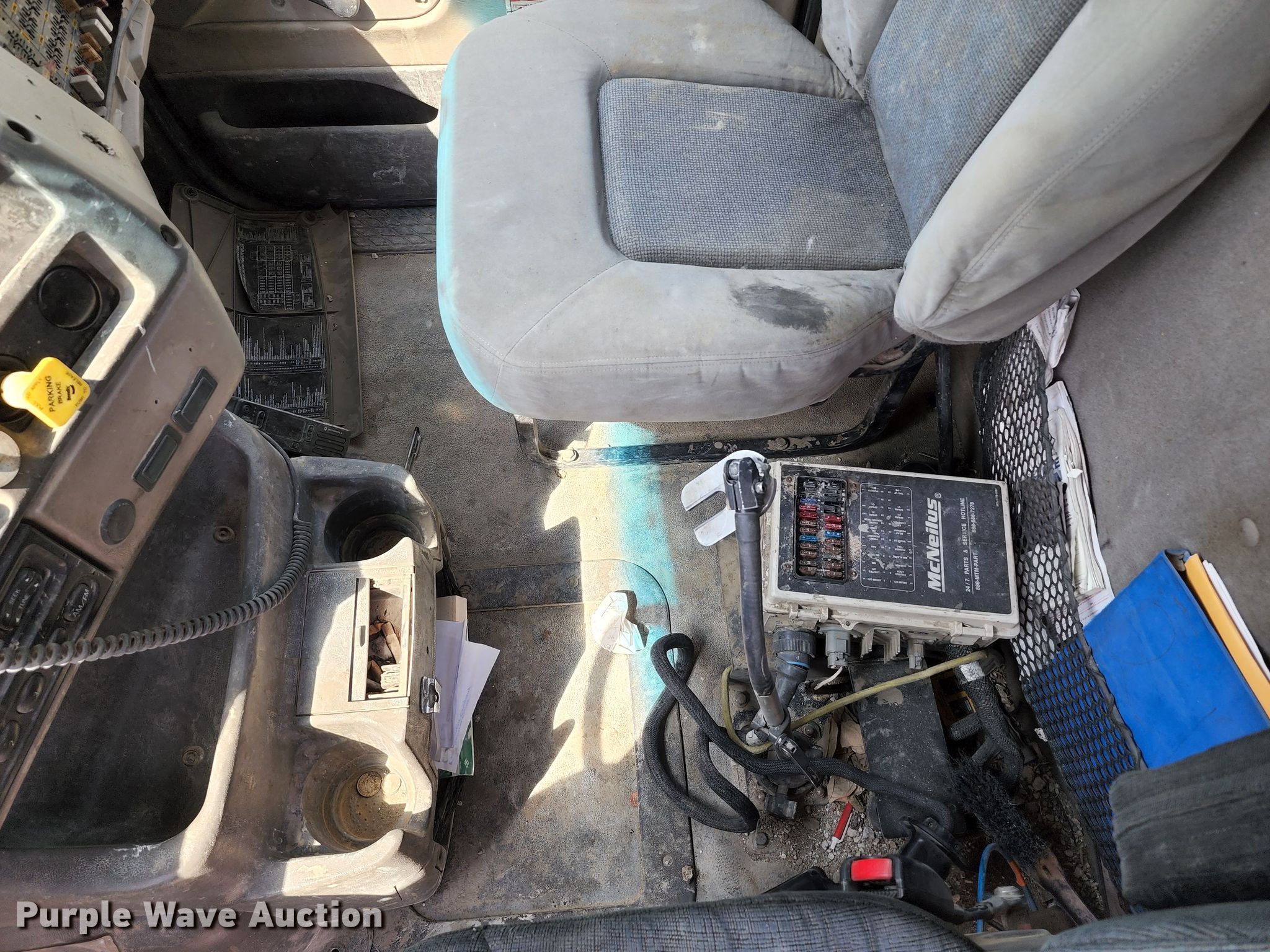 2004 Sterling L-Line ready mix truck. Miles: 252,997 on odometer, VIN: 2FZMAZDE24AN39208. Engine Caterpillar C12, Displacement: 12.5L, Cylinders: 6, Fuel type: Diesel. Transmission Automatic. Chassis Axles: 4, Pusher axle, Tag axle, Differential lock: Inter-axle, Suspension: Walking beam, Brakes: Air, PTO. Interior AC, Heat. Features Mixer McNeilus, Capacity: 11 cu.yd., Discharge: Rear, In-cab controls, Rear drum controls, Water tank capacity: 150 gallons, Chute Extensions: 3.. Tires Front: 425/65R22.5, Rear: 11R22.5, Lift axle: 255/70R22.5. Notes Dash warning indicator: Check engine, Brake, Transmission issues, stuck in neutral, Non-operational unit. Missouri title. MLC Ready Mix. 15721 Airport Rd. Greenwood, MO 64034