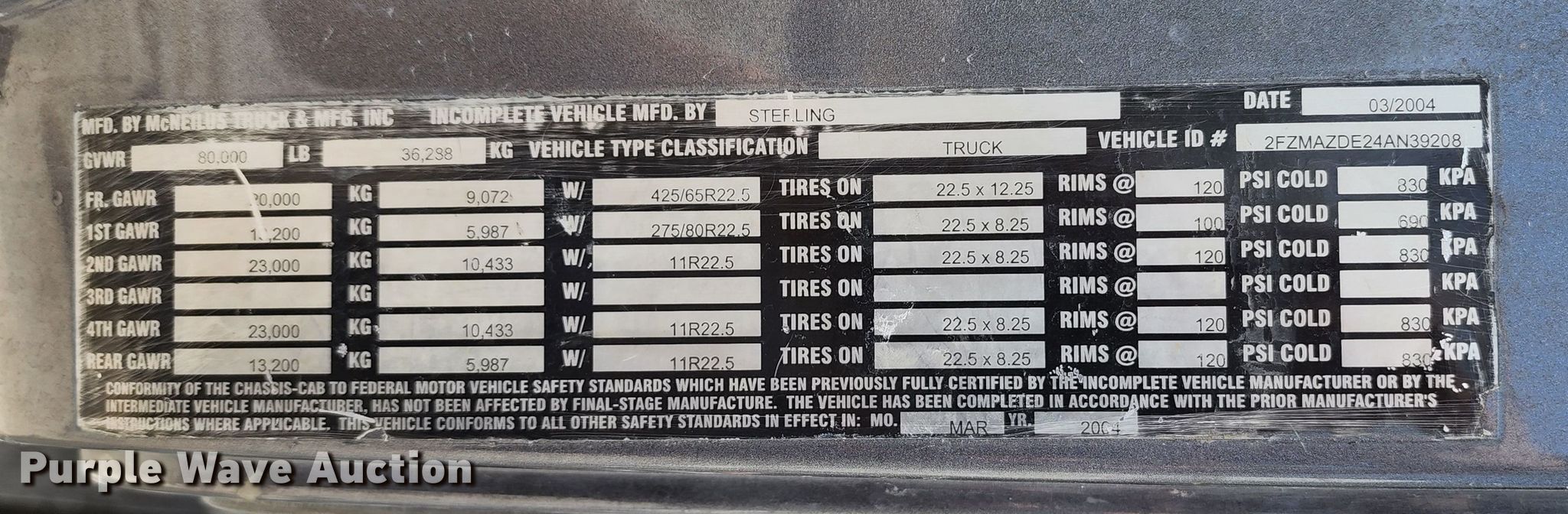Purple Wave is selling a used Ready Mix or Pump Truck in Missouri. This item is a 2004 Sterling L-Line ready mix truck with the following: Miles: 252,997 on odometer, VIN: 2FZMAZDE24AN39208