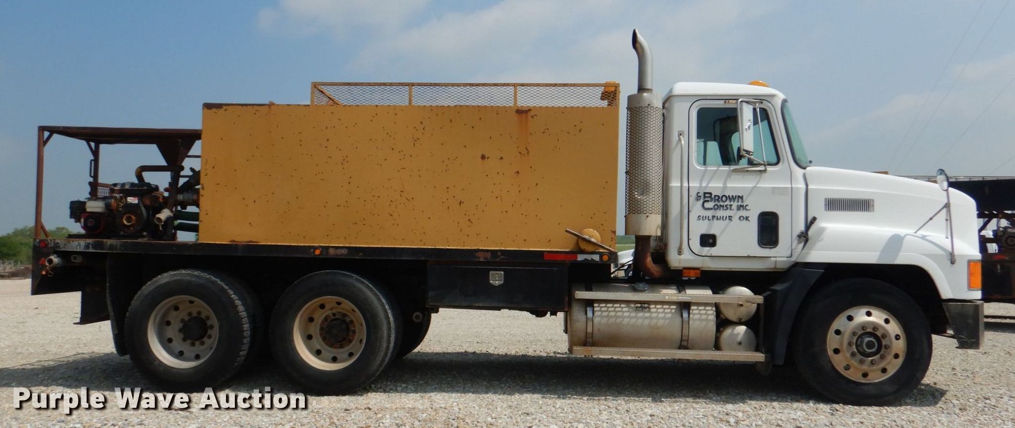 1995 Mack CH613 water truck. Miles: 182,444 on odometer, Hours: 30,170 on meter, VIN: 1M2AA13Y2SW052069, Unit #: 143. Engine Mack, Cylinders: 6, Fuel type: Diesel. Transmission Maxitorque T2090, Manual, Speed: 9. Chassis Axles: Tandem, Suspension: Spring, Brakes: Air. Interior AC, Heat, Heated mirrors, Cruise control. Features Bed / tank 12' L x 8' W, Water tank Side discharge, Robin EH30 9.0 pump Single cylinder gas engine. Tires Size: 11R24.5. Oklahoma classic title. CD Brown Construction. 744 Oaklawn Rd. Sulphur, OK 73086