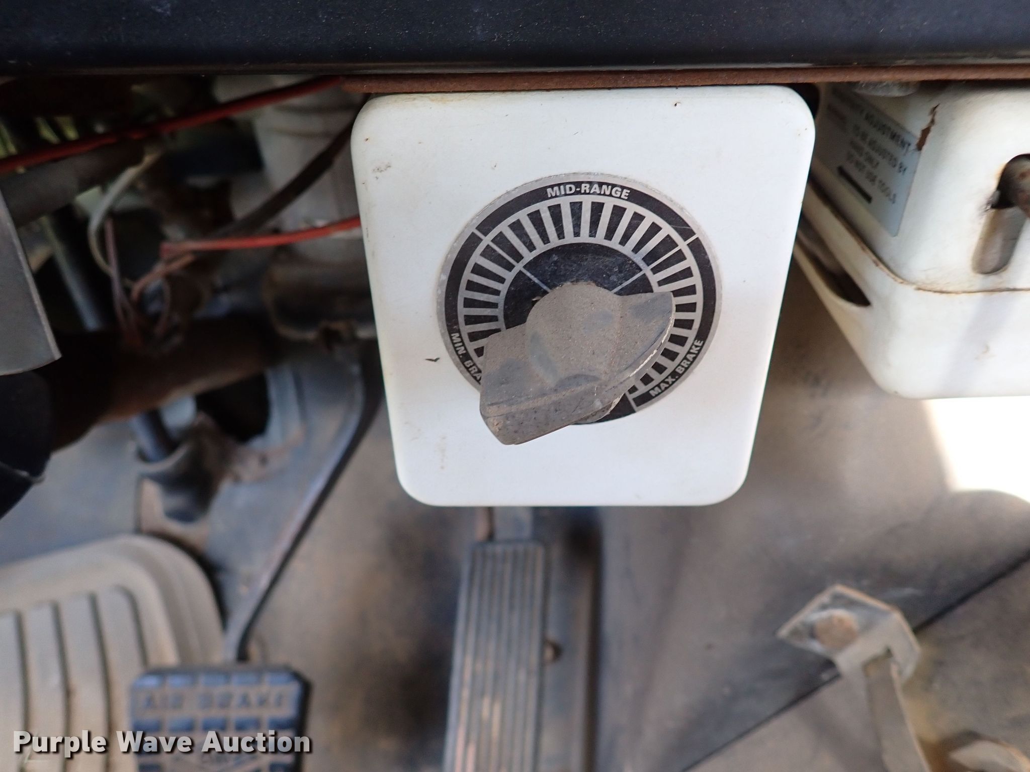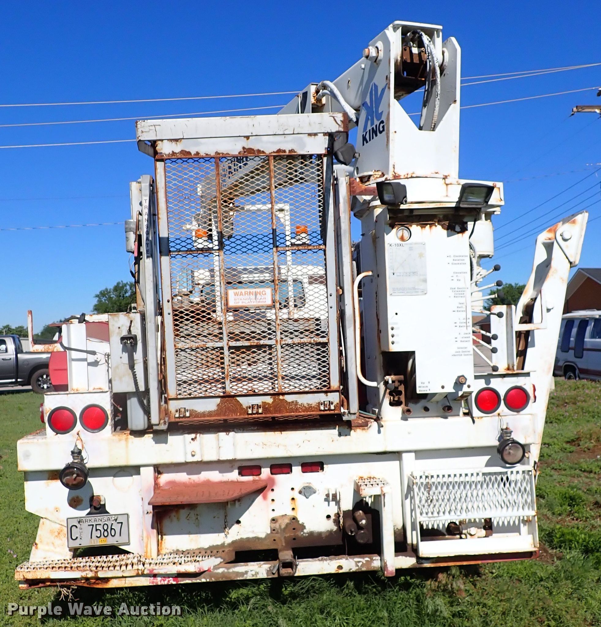 1990 International 4900 crane truck. Miles: 181,891 on odometer, Hours: 2,342 on meter, VIN: 1HTSDTVR0LH201475. Engine International DT466, Displacement: 7.6L, Cylinders: 6, Fuel type: Diesel. Transmission Manual, Speed: 5, plus 2. Chassis Axles: Single, Suspension: Spring, Brakes: Air, PTO. Interior Heat. Features Bed 16' 6" L x 102" W, Air compressor Kohler Command Pro, Oil/lube system Hose reels, Crane King K10XLSDT, Boom length: 18', Maximum lift capacity: 10,600 lbs. Tires Size: 11R22.5. Notes Unknown operating condition. Oklahoma title. Title distribution may be delayed up to 30 days from verification of funds. First State Bank. Watonga, OK 73772