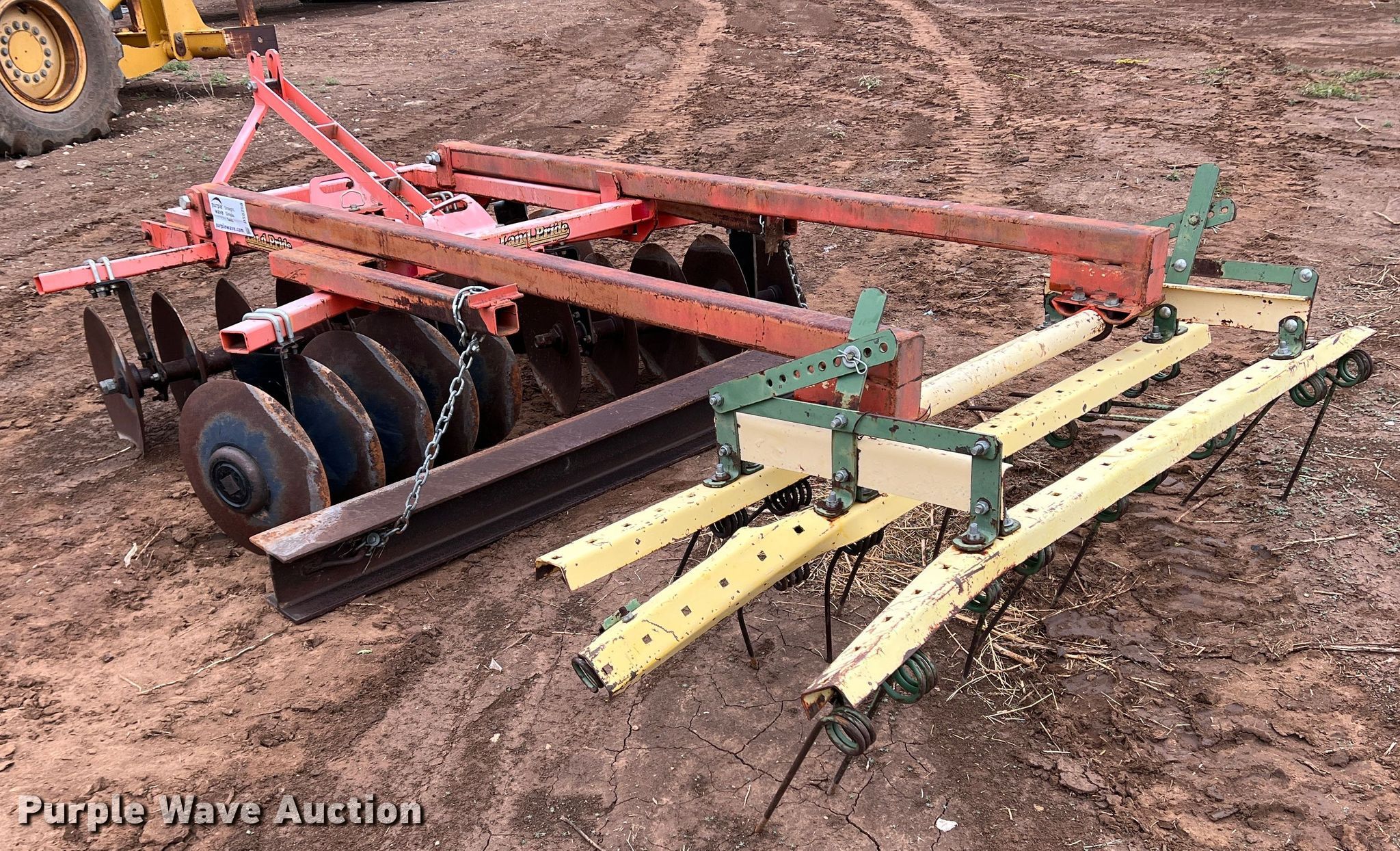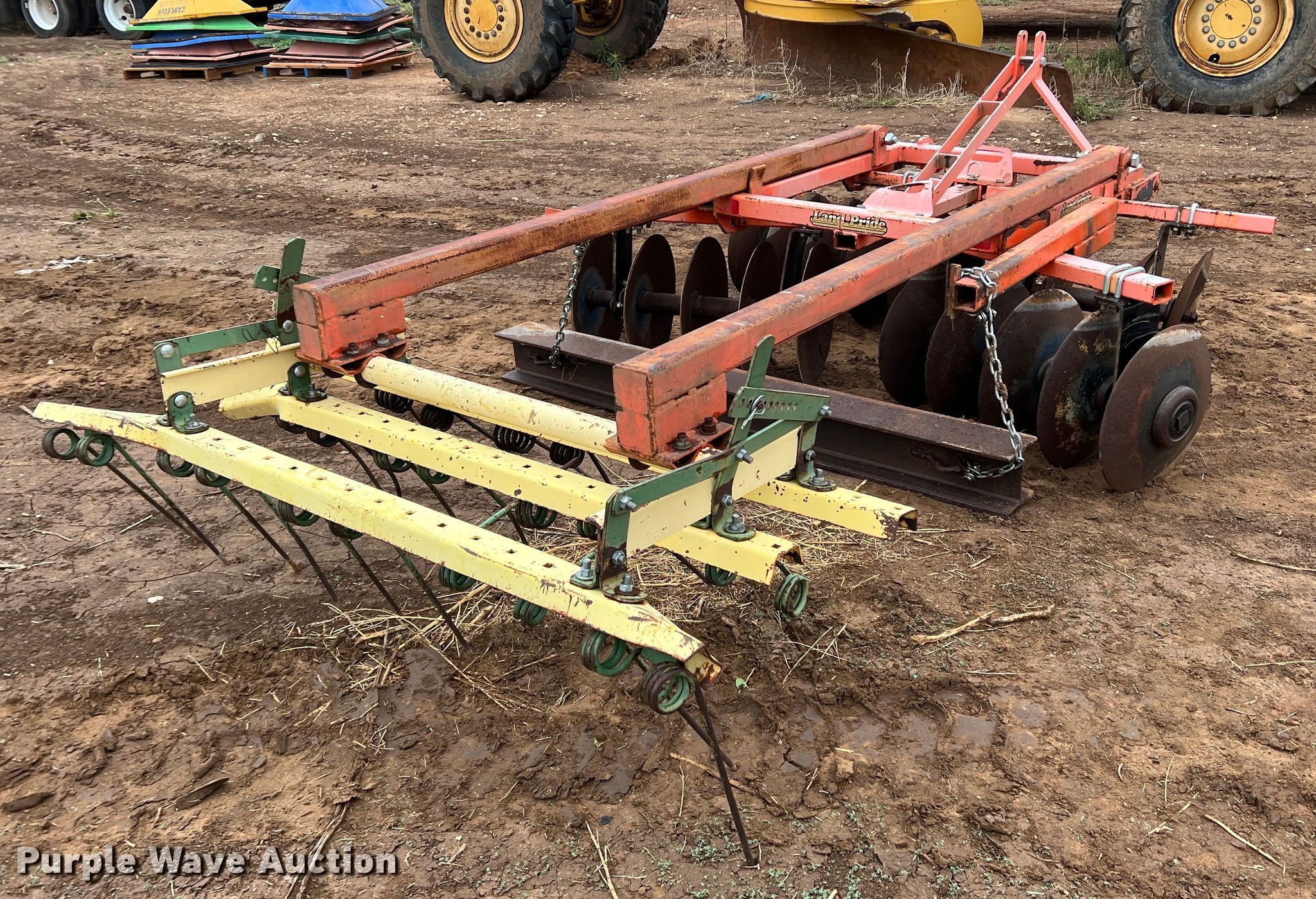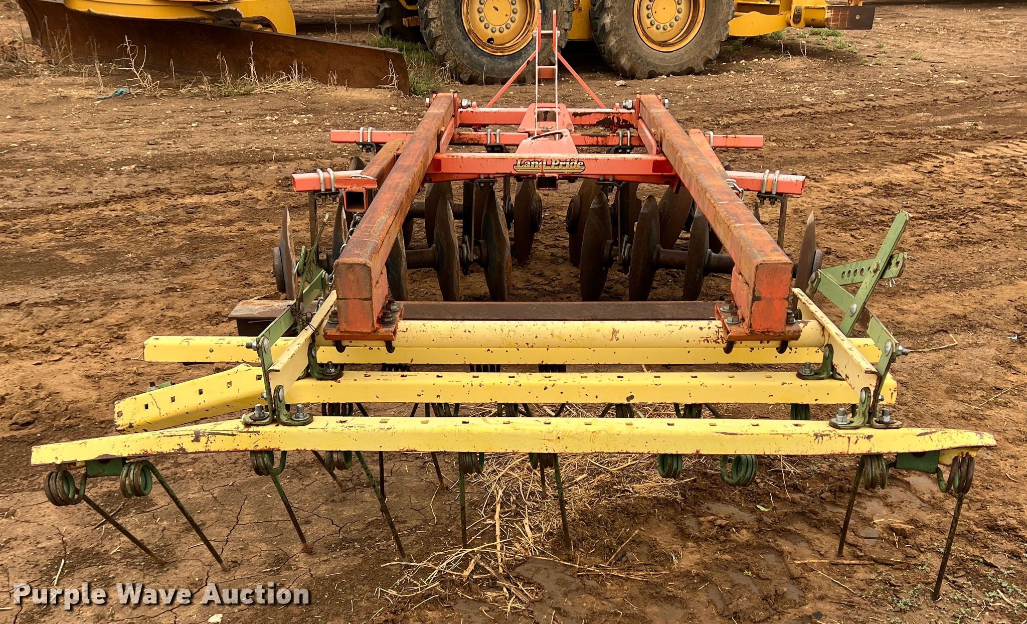 Purple Wave is selling a used Disk in Texas. This item is a Land Pride tandem disk with the following: Front blades, Diameter: 17", Spacing: 8", Rear blades, Diameter: 17", Spacing: 8", Attachments, Tine harrow, Harrow bars: 3, Hitch: Three point