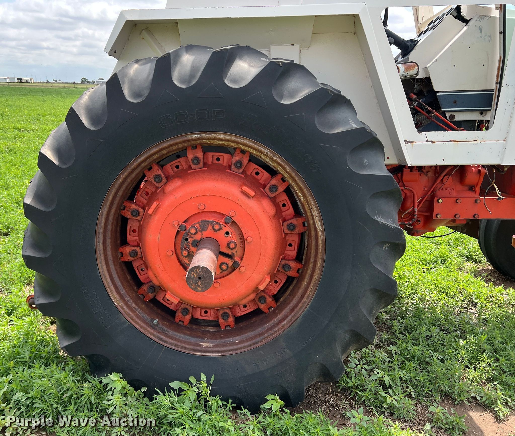 Case 1570 tractor. Hours: 2,740 on meter, Serial: 8816572. Engine No engine. Transmission Powershift, 12F - 3R. Features PTO: 1000, Three point, Hydraulic remote sets Rear: 2, Suitcase weights: 9. Tires Front: 14L-16.1, Rear: 20.8-38, Wheel weights: 2. Notes Missing glass, Parts only, Non-operational unit. Zamora Farms. 11200 U.S. 287. Dumas, TX 79029