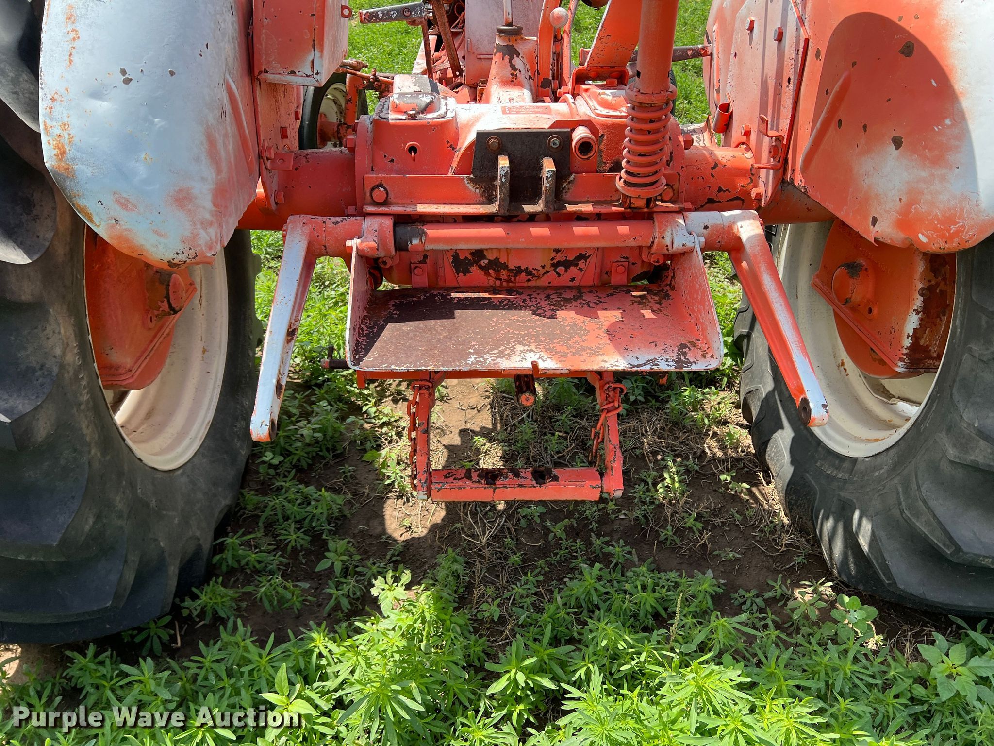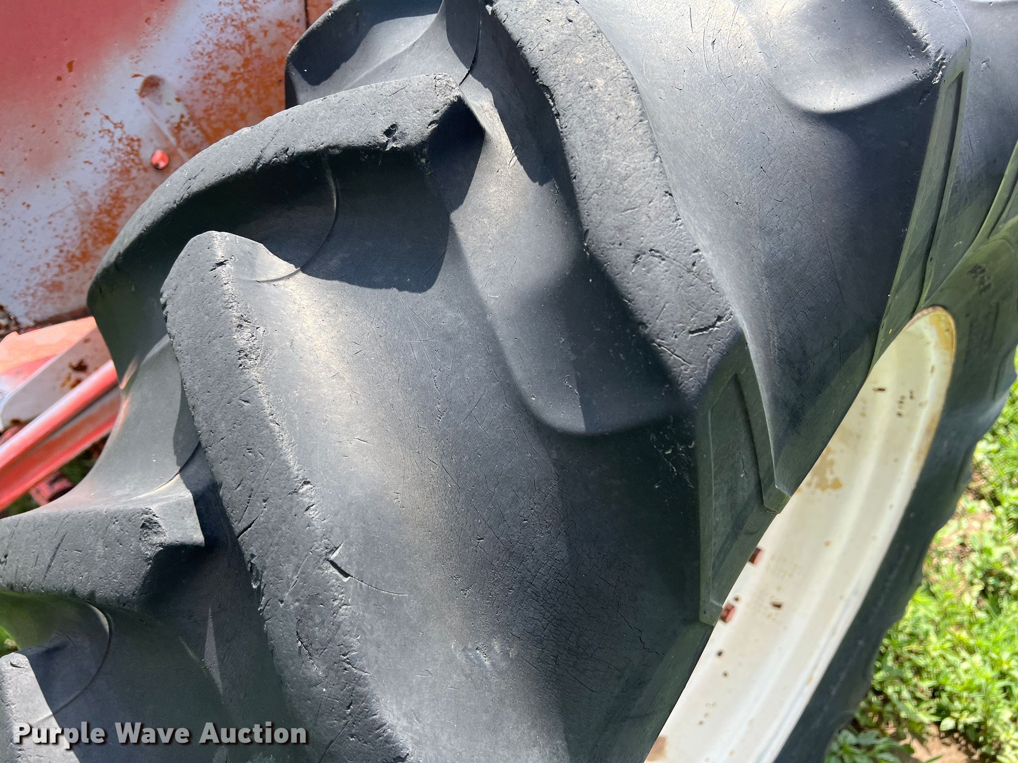 Allis-Chalmers tractor. Engine. Cylinders: 4, Fuel type: Gas. Transmission Manual, 4F - 1R. Features PTO: 540. Tires Front: 2235/75R15, Rear: 16.9-26. Notes Unknown operating condition. Zamora Farms. 11200 U.S. 287. Dumas, TX 79029