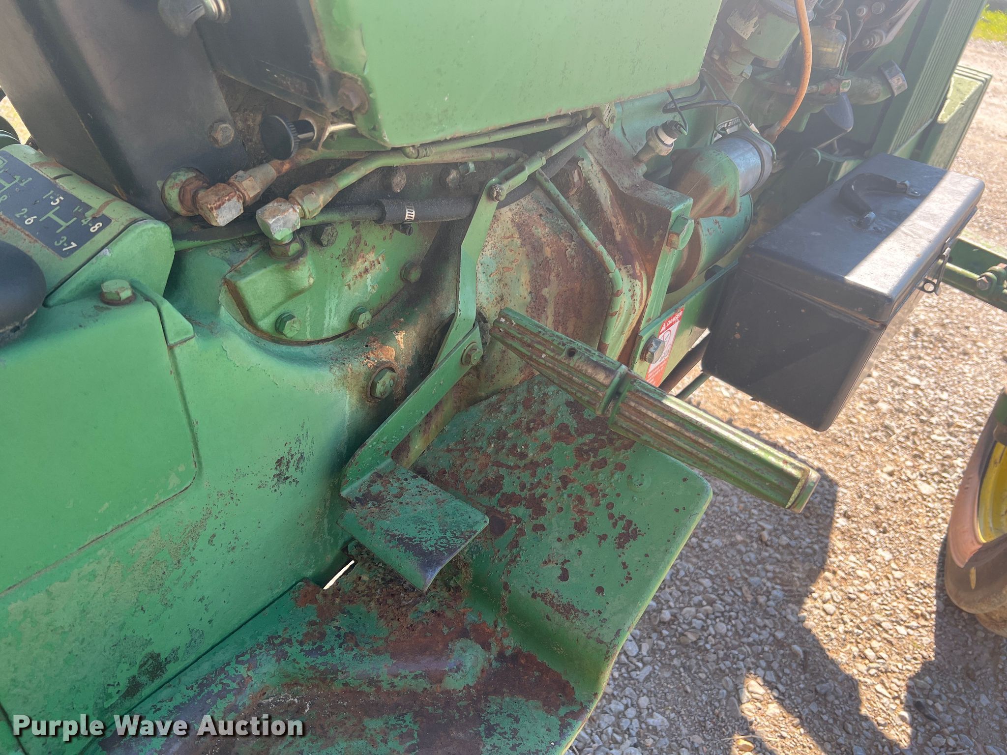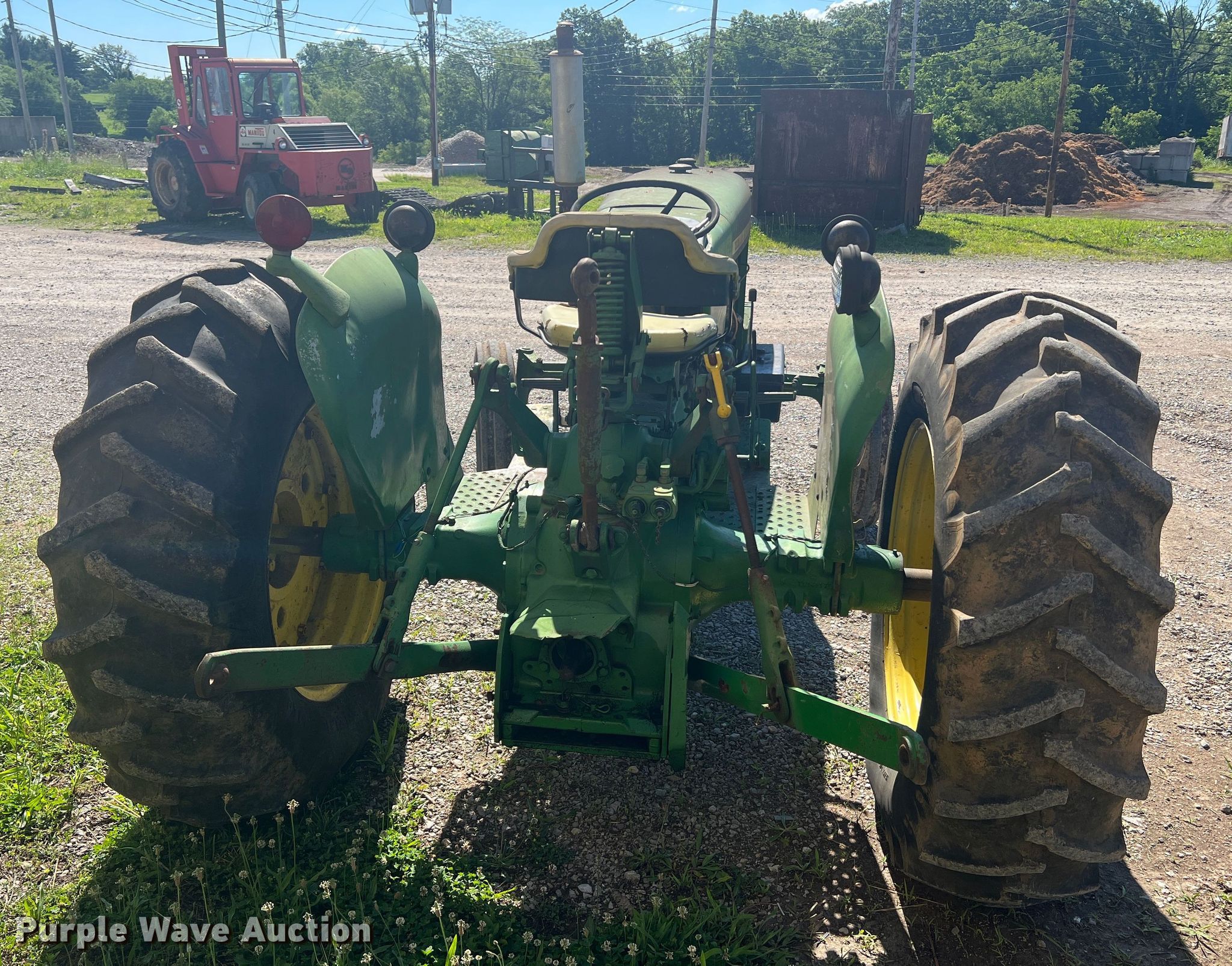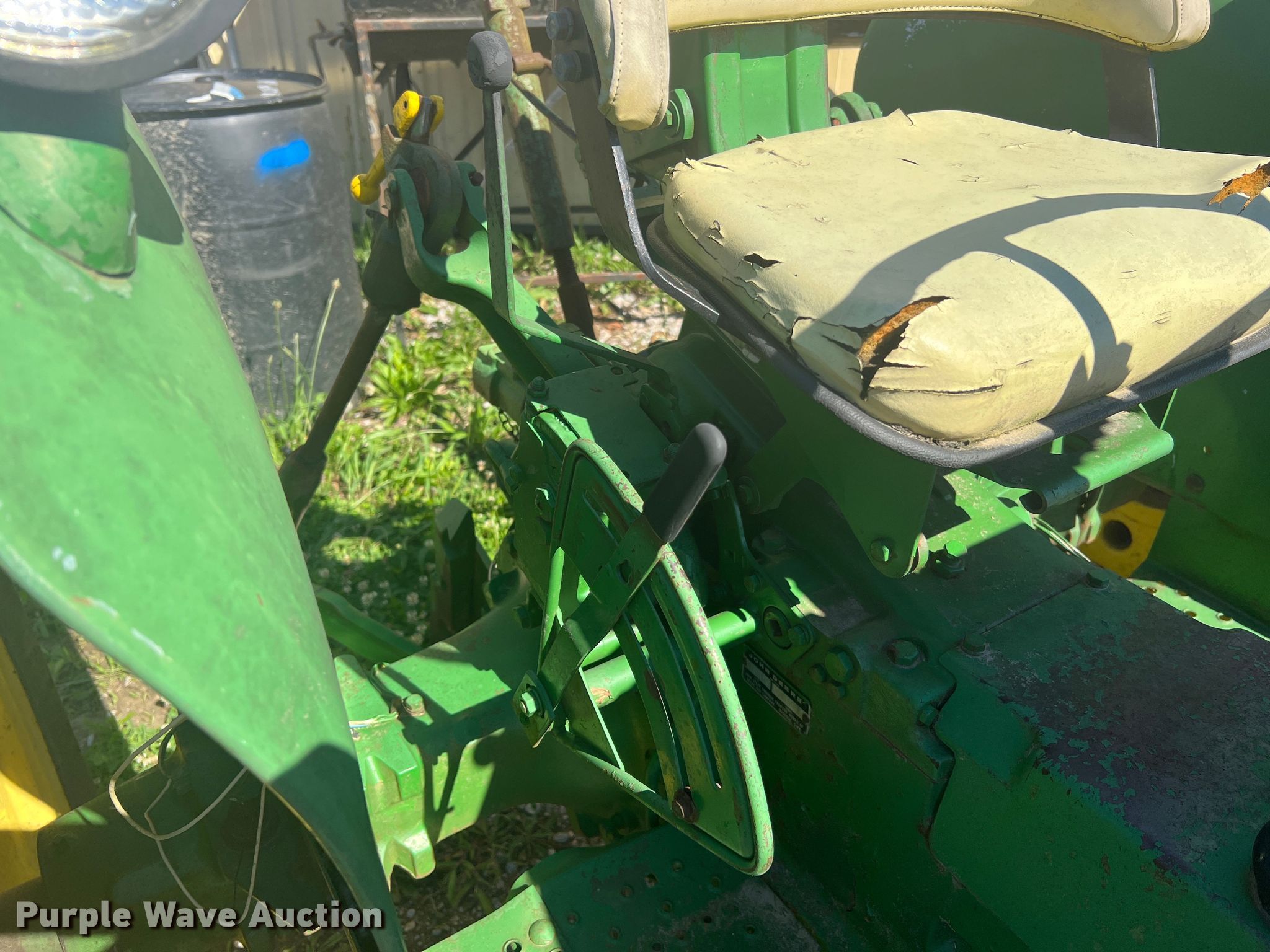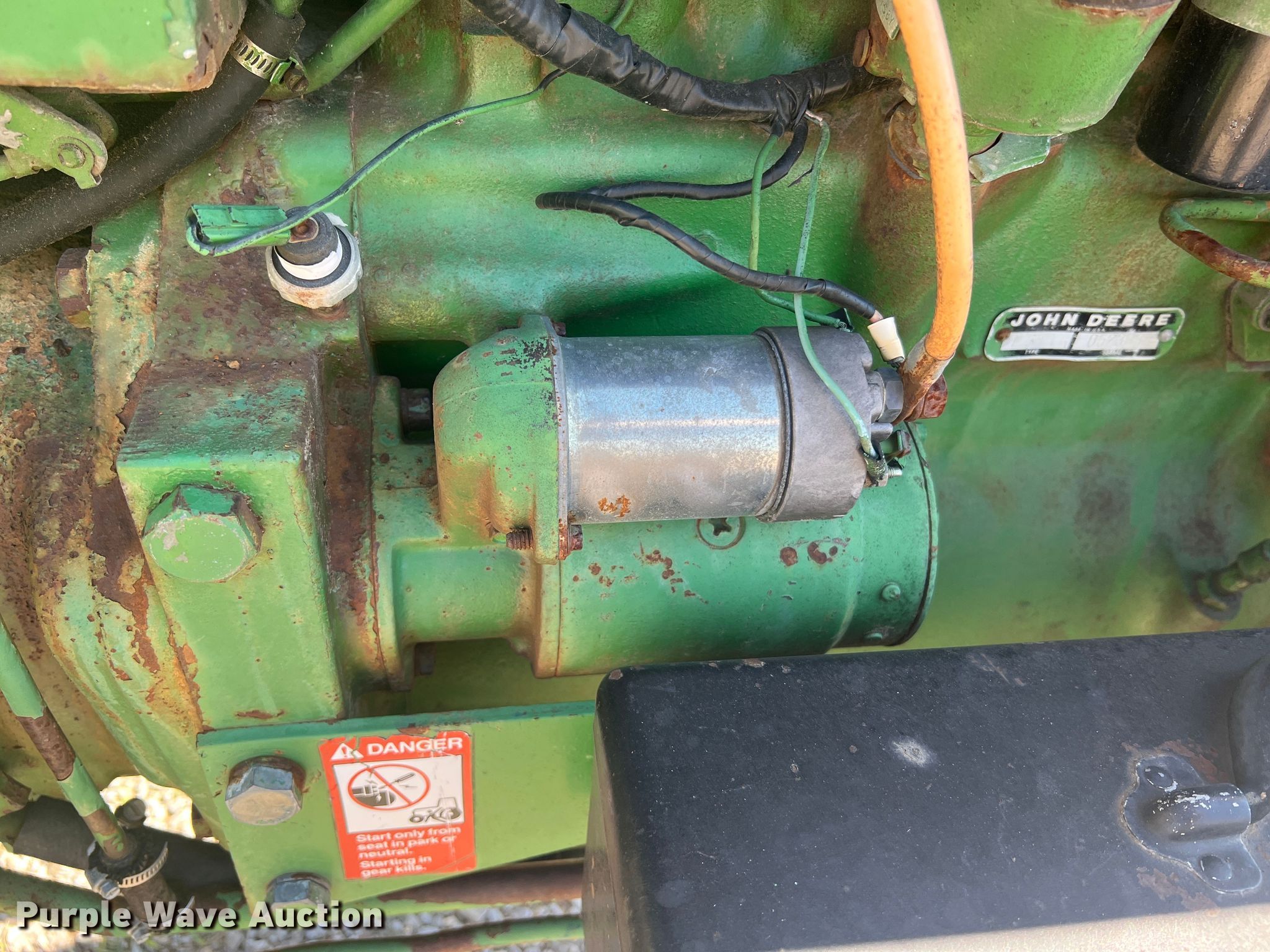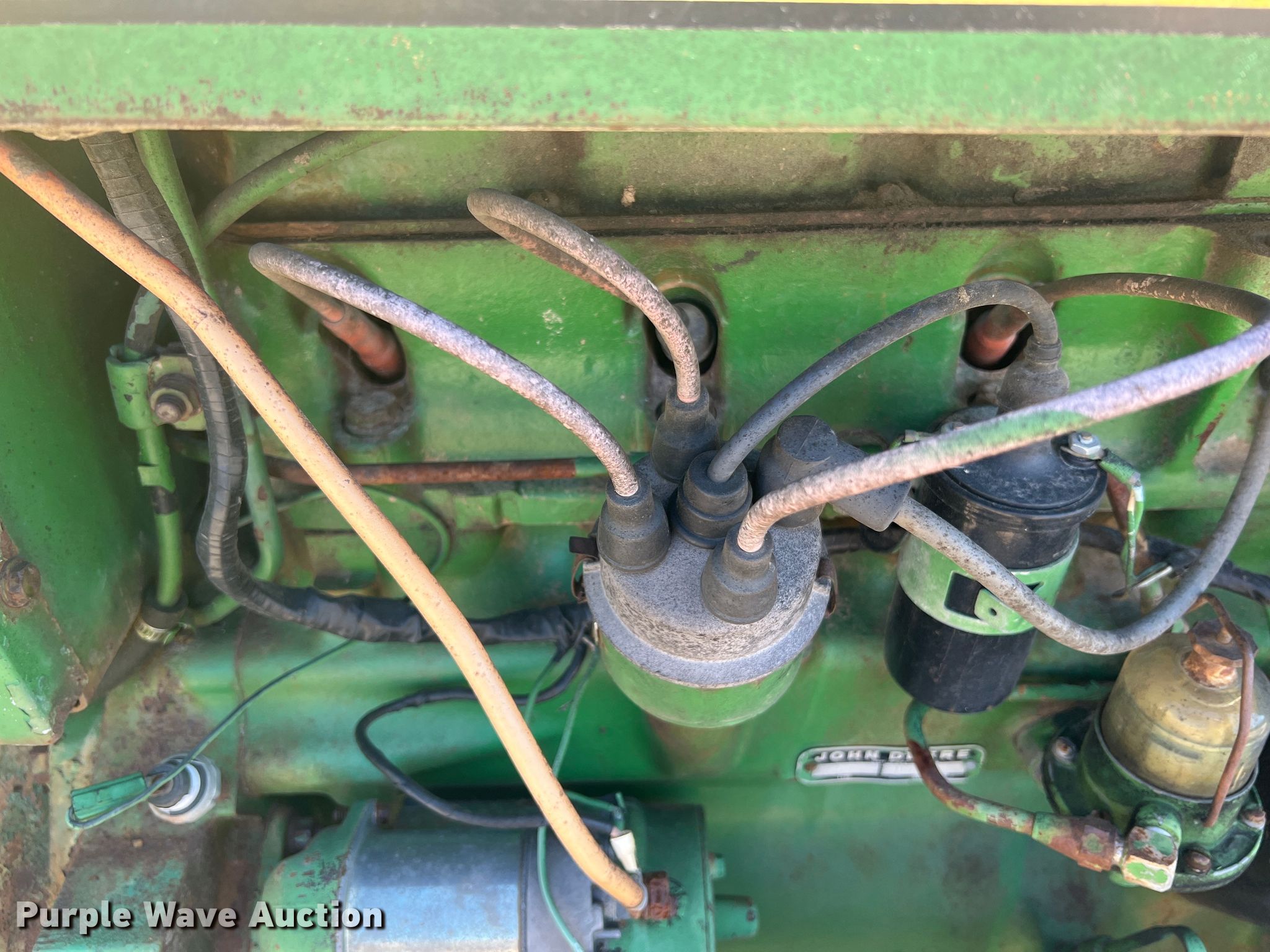 John Deere 2020 tractor. Hours: 2,887 on meter, Serial: 041095T. Engine John Deere M51TR, Serial: 052303T, Cylinders: 4, Fuel type: Gas. Transmission Manual, 8F - 4R. Features PTO: 540, Three point Top link, Hydraulic remote sets Rear: 1, Front weights: 3. Tires Front: 6.00-16 Foam filled, Rear: 14.9-28, Wheel weights: 4. Notes Battery issues, weak. Perryville Stave Company Inc.. Perryville, MO 63775