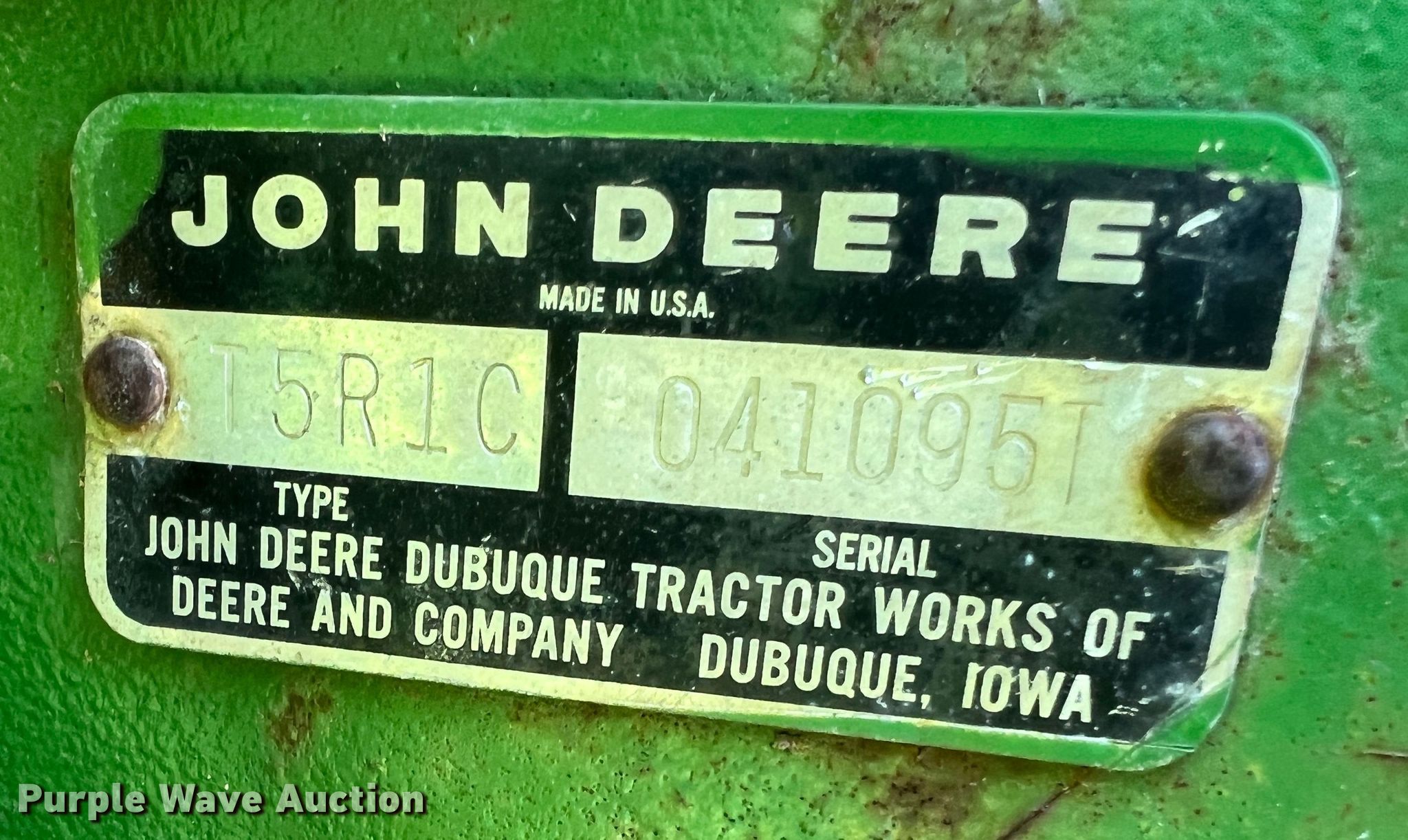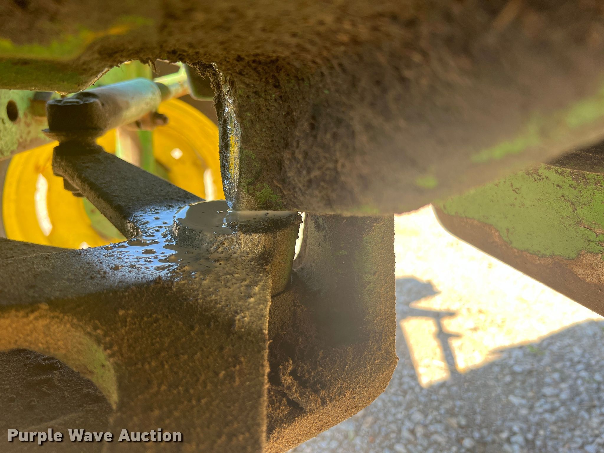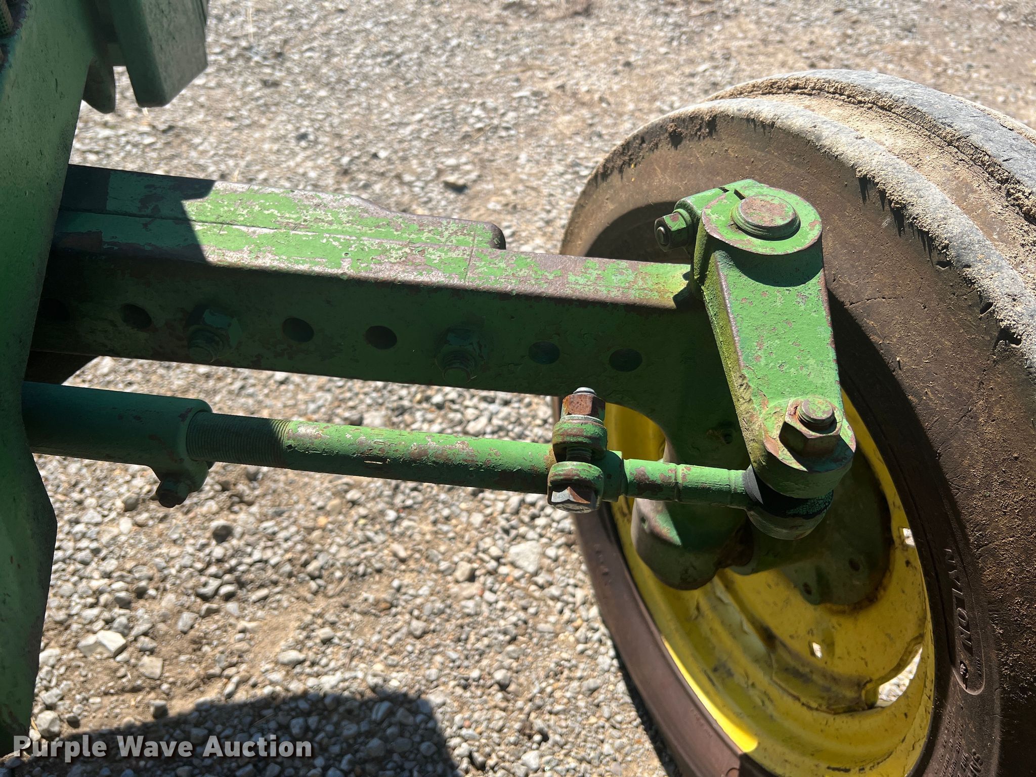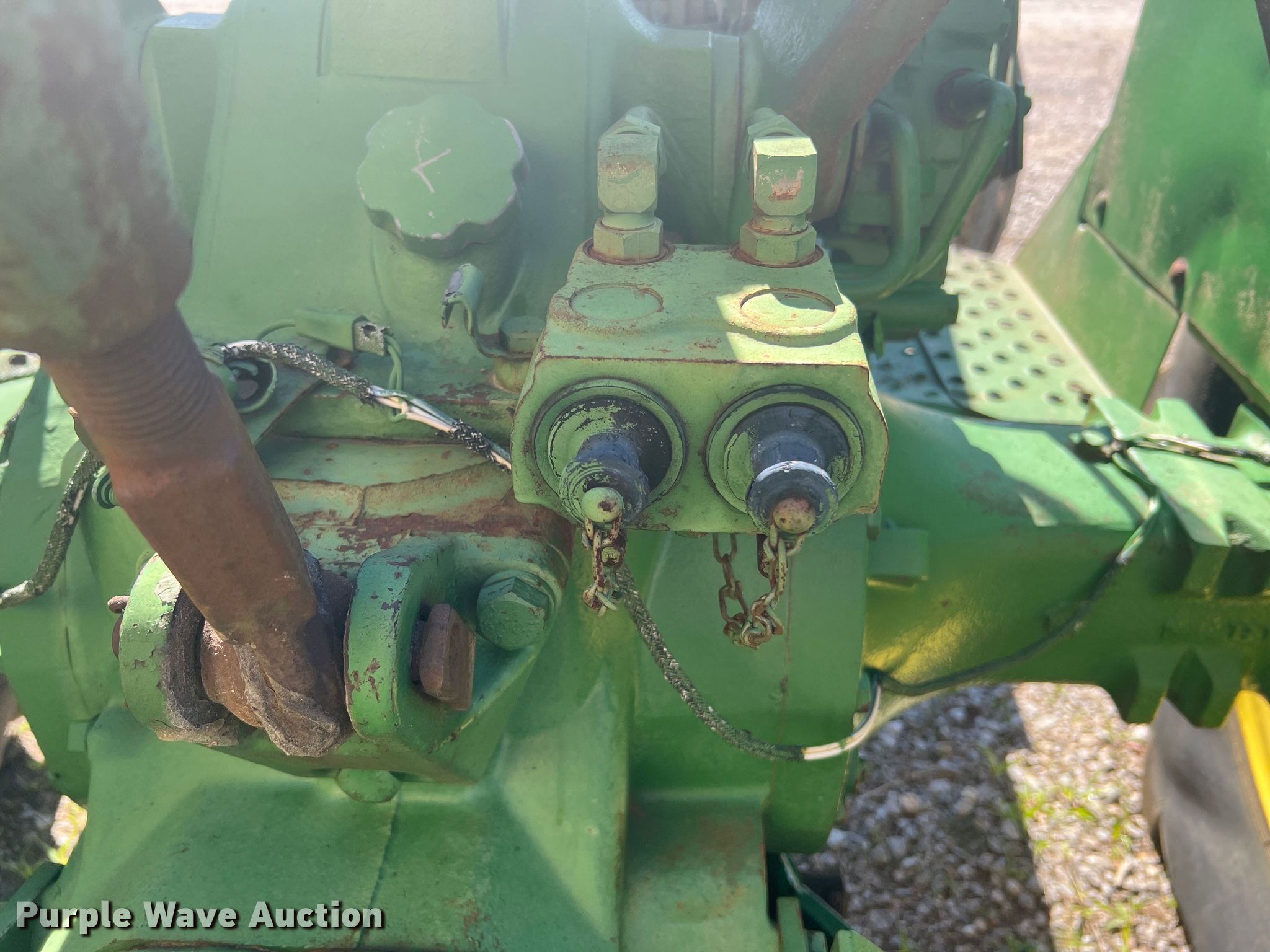 John Deere 2020 tractor. Hours: 2,887 on meter, Serial: 041095T. Engine John Deere M51TR, Serial: 052303T, Cylinders: 4, Fuel type: Gas. Transmission Manual, 8F - 4R. Features PTO: 540, Three point Top link, Hydraulic remote sets Rear: 1, Front weights: 3. Tires Front: 6.00-16 Foam filled, Rear: 14.9-28, Wheel weights: 4. Notes Battery issues, weak. Perryville Stave Company Inc.. Perryville, MO 63775