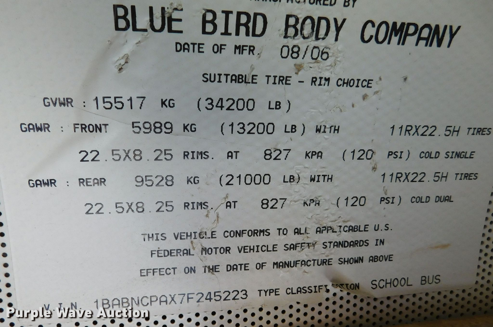 Take a look at this used 2007 Blue Bird school bus being sold on July 12th, 2022 in the SOLD! July 12 Government Auction made by Blue Bird. Take a look at all of the item information below or take a look at similar auctions for Transit Vehicles.
