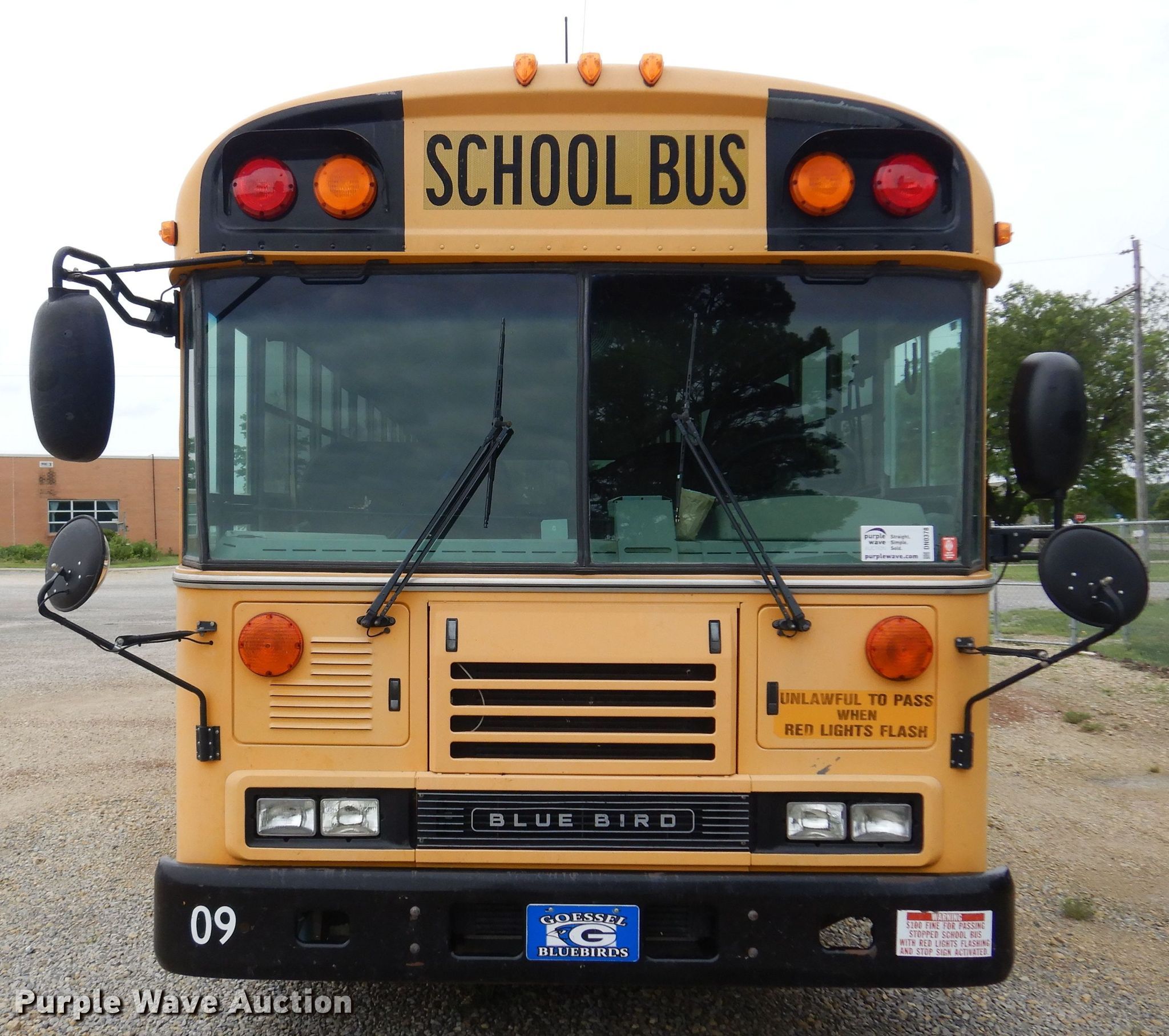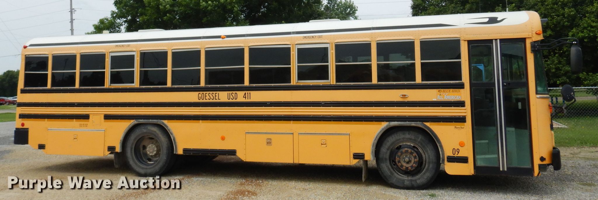 Purple Wave is selling a used Bus in Kansas. This item is a 2009 Blue Bird All American FE school bus with the following: Miles: 140,933 on odometer, Hours: 1,409 on meter, VIN: 1BABGCPH59F266619
