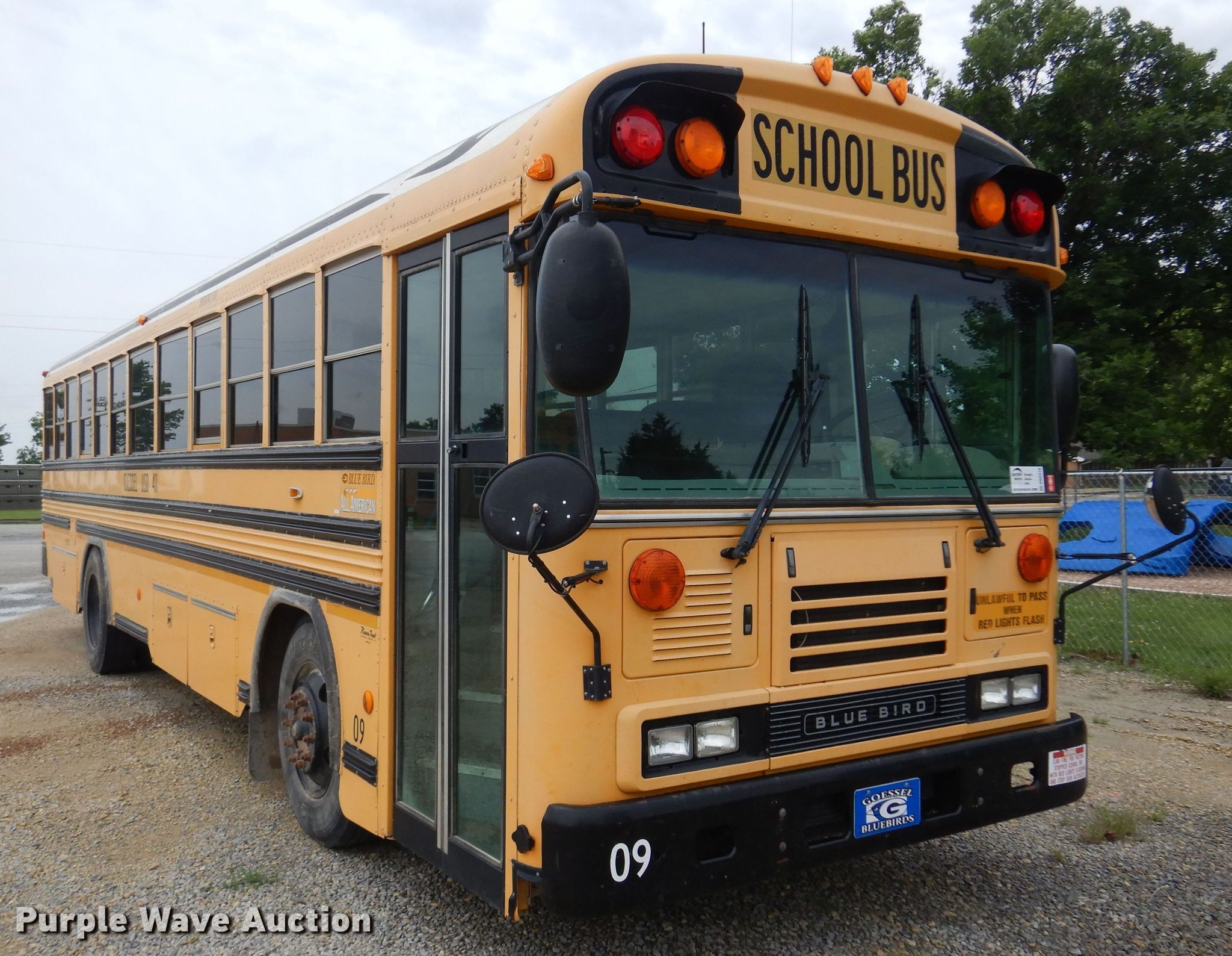This 2009 Blue Bird All American FE school bus will sell to the highest bidder regardless of price.