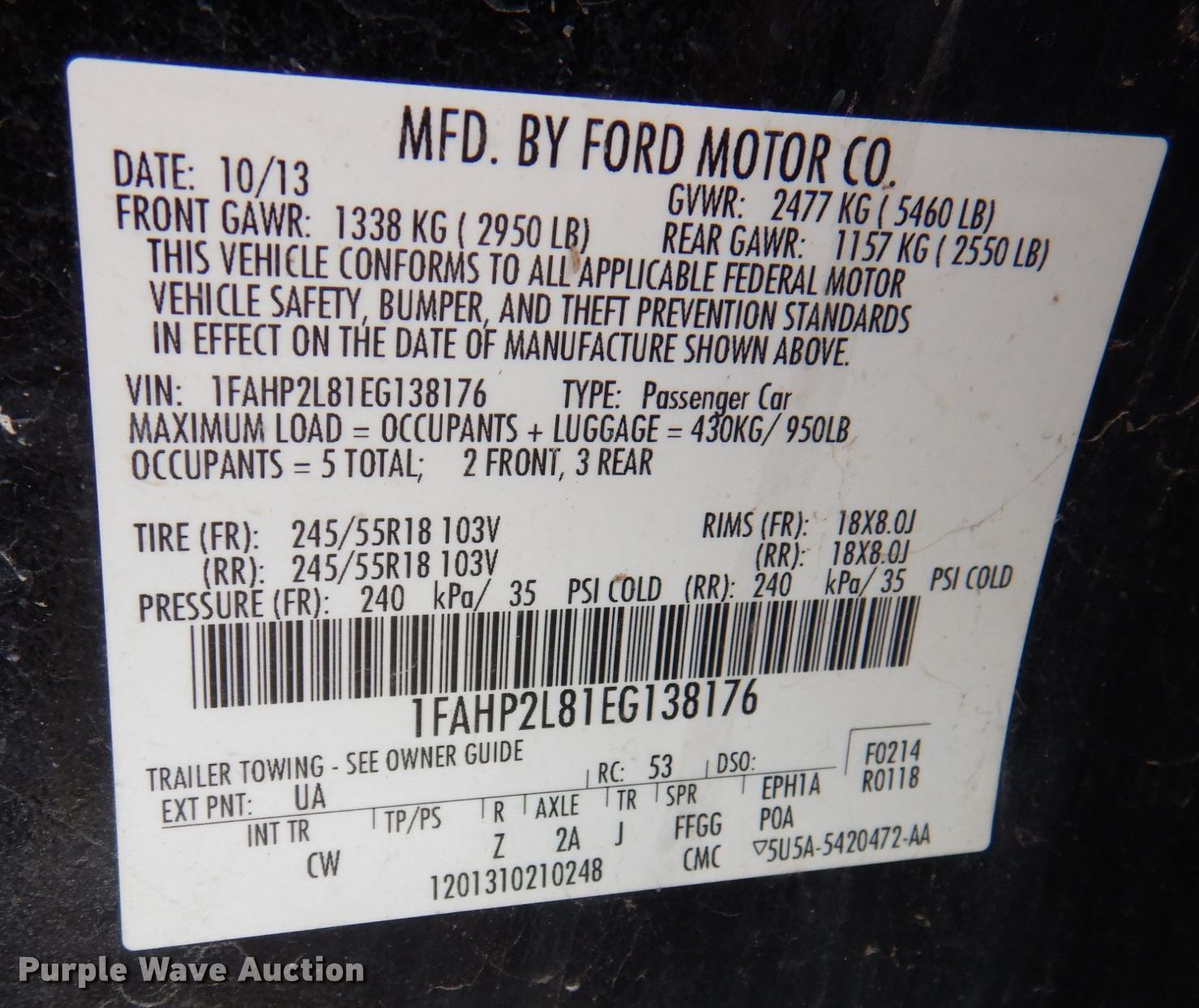 2014 Ford Taurus Police Interceptor. Miles: 122,916 on odometer, VIN: 1FAHP2L81EG138176. Engine Displacement: 3.5L V6 DOHC, Cylinders: 6, Fuel type: Gas. Transmission Automatic. Interior AC, Heat, Seat: Power driver, Power windows, Power locks, Cruise control. Tires Size: 245/55R18. Notes Dead battery. Missouri title. Seller is a government entity who will be assigning and distributing the title. Please contact the seller for distribution questions. City of Trenton, MO. 1900 16th St. Trenton, MO 64683