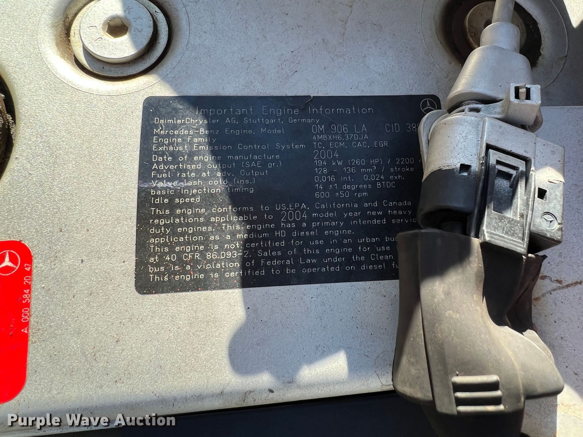 2005 Freightliner FS65 Thomas Built school bus. Miles: 165,539 on odometer, Hours: 7,639 on meter, VIN: 4UZAAWCT55CU12166. Engine Mercedes-Benz OM 906 LA, Cylinders: 6, Fuel type: Diesel, HP: 260. Transmission Automatic. Chassis Axles: Single, Suspension: Spring, Brakes: Hydraulic. Interior AC, Heat, Heated mirrors, Passengers: 36. Tires Size: 10R22.5. Notes Dash warning indicator: Check engine, Possible EGR temperature sensor issues. Kansas title. USD 214 Ulysses. 111 S Baughman St. Ulysses, KS 67880