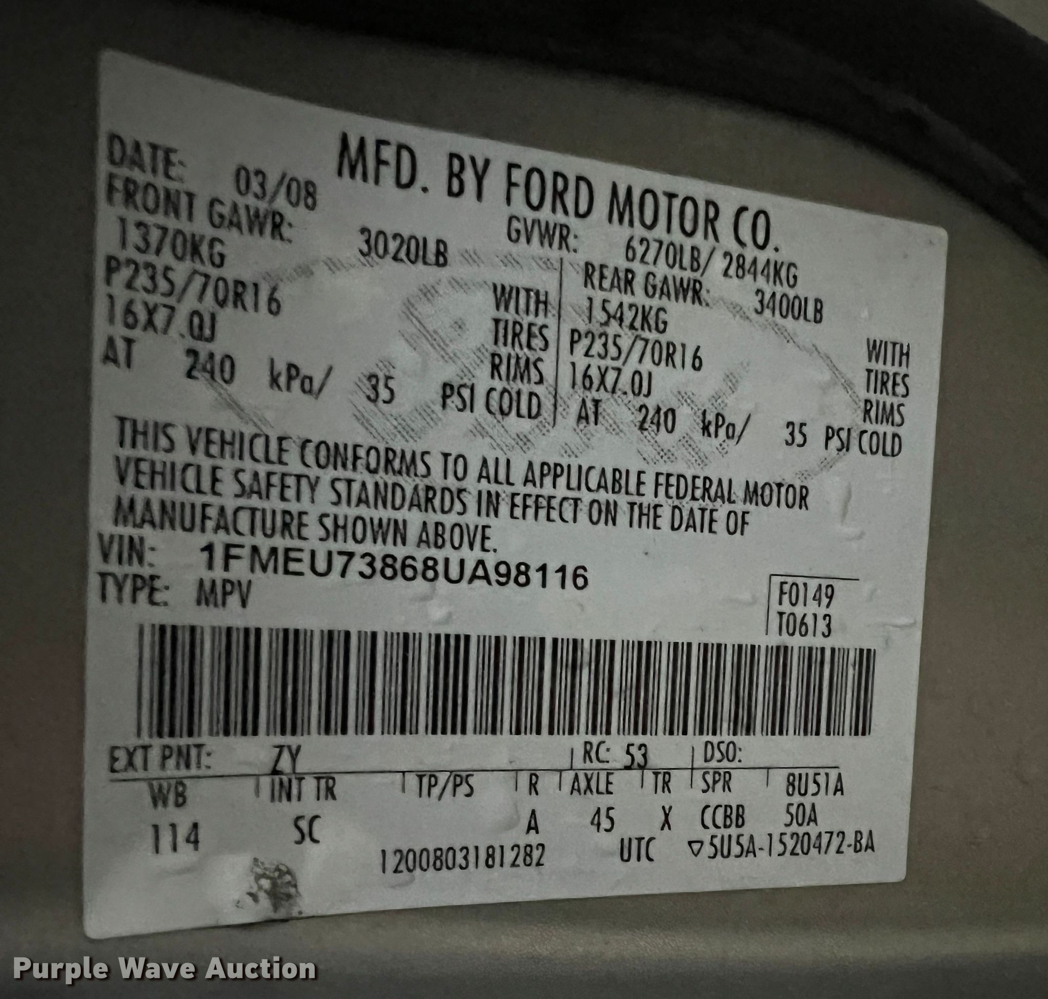 - VIN: 1FMEU73868UA98116