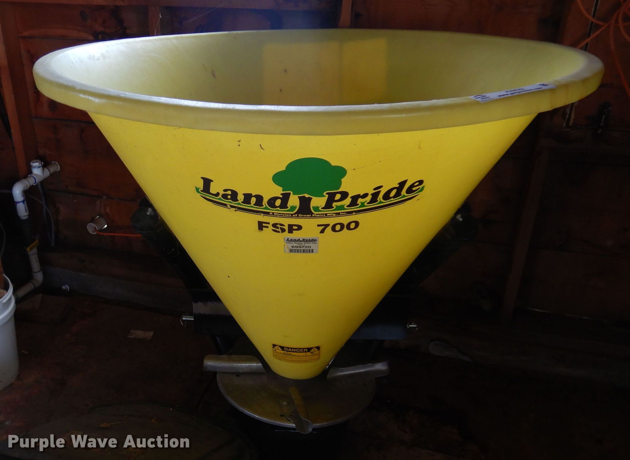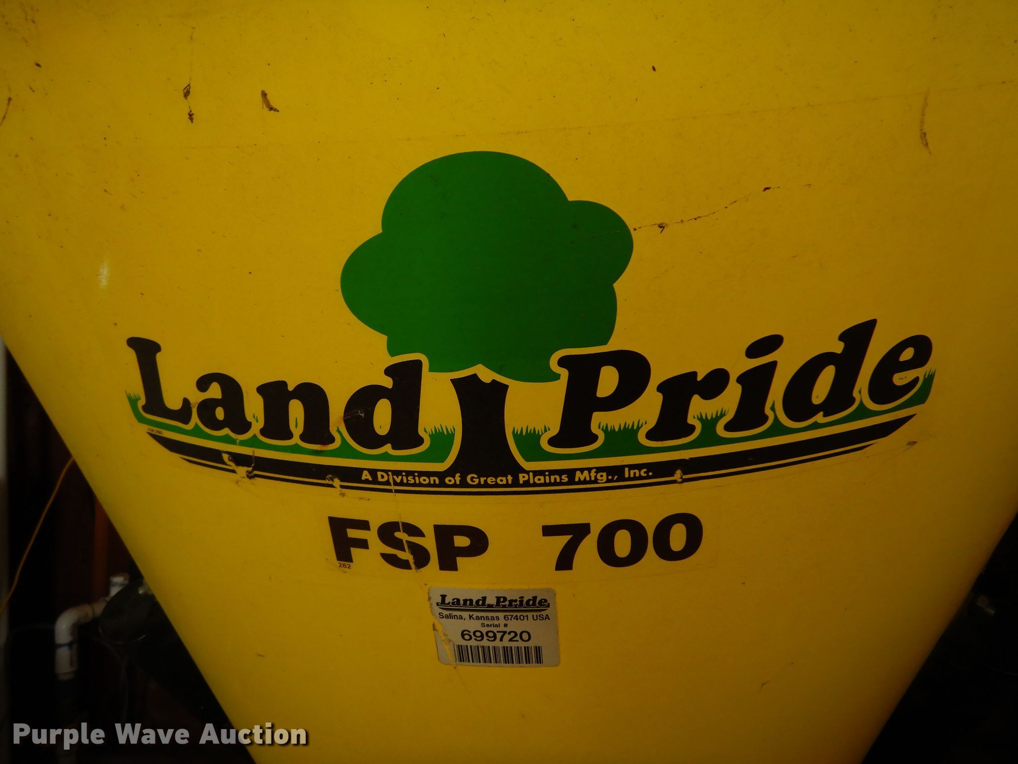 Purple Wave is selling a used Applicator Attach. in Kansas. This item is a Land Pride FSP700 spreader with the following: 540 PTO, Serial: 699720