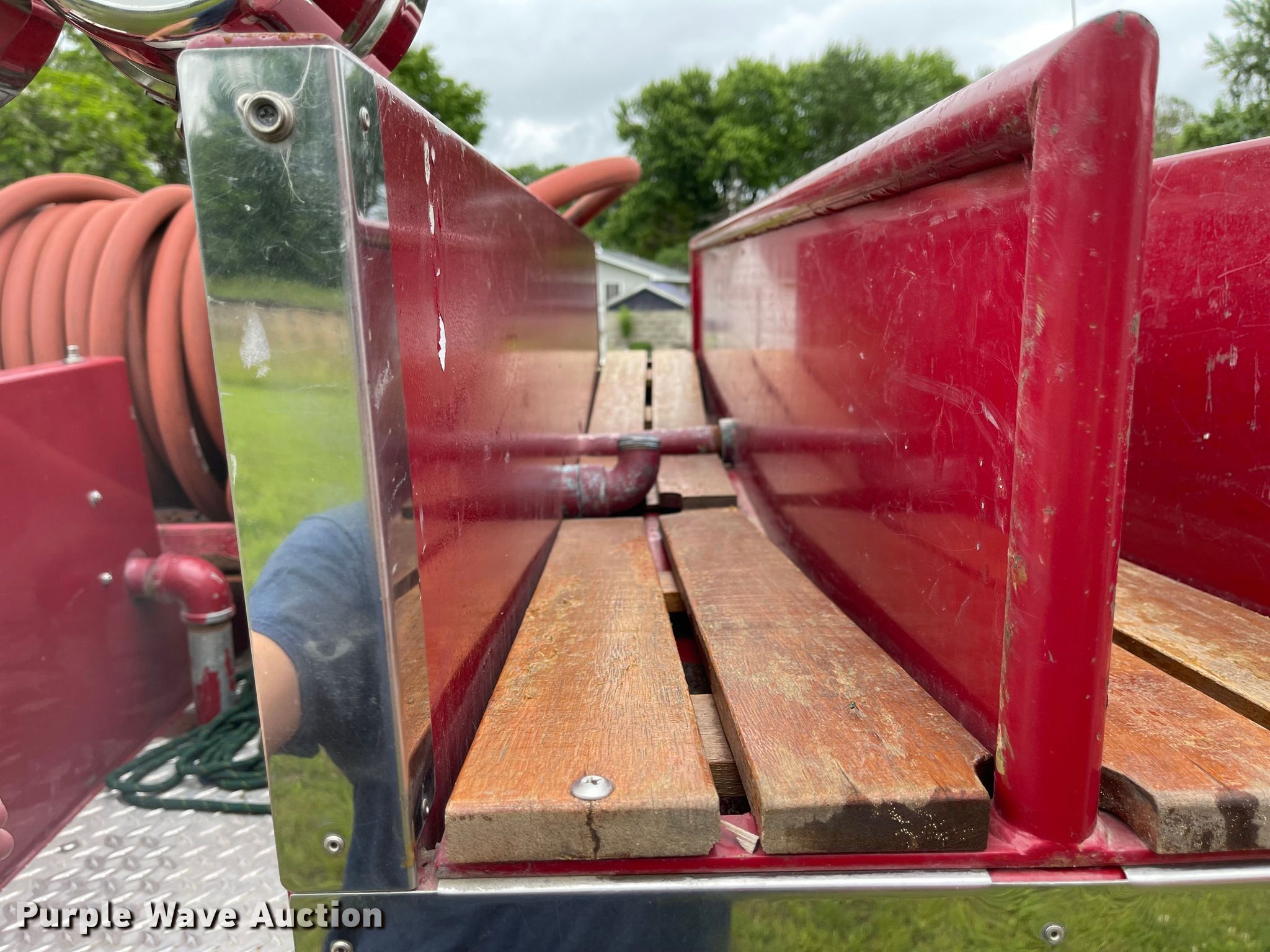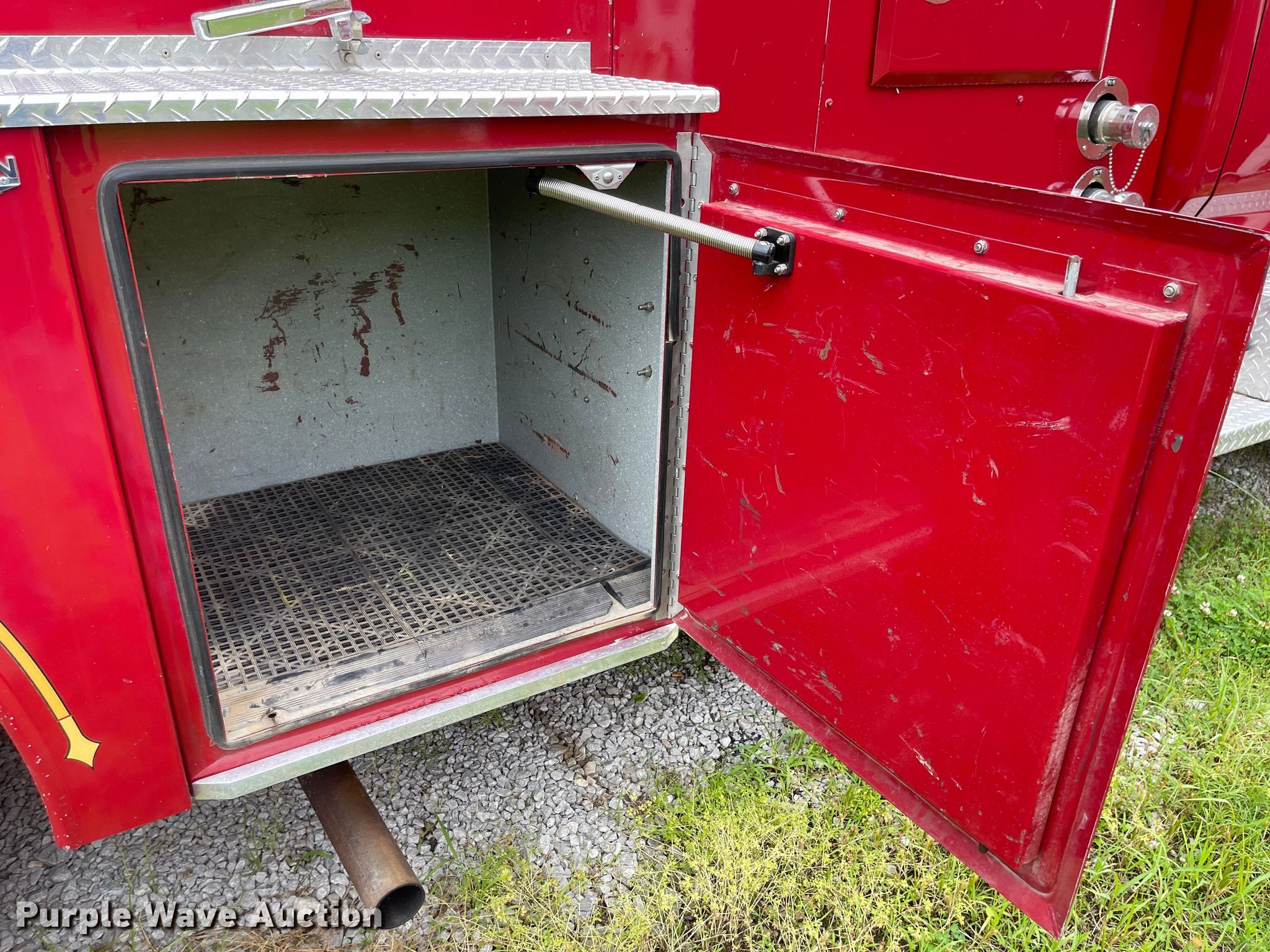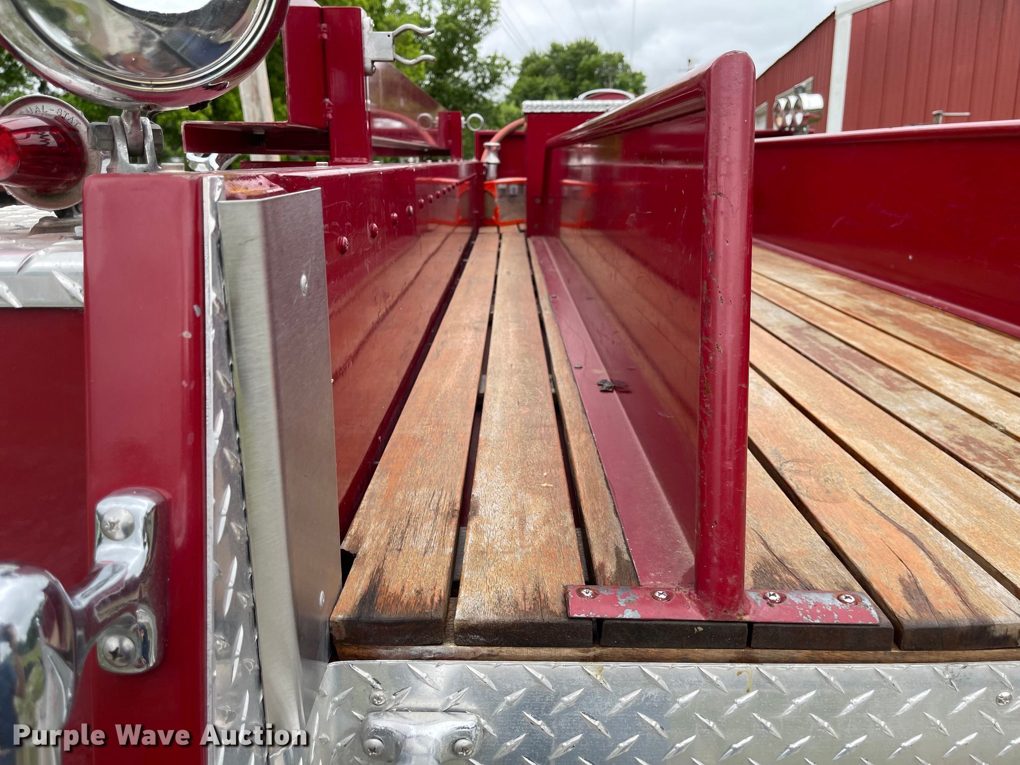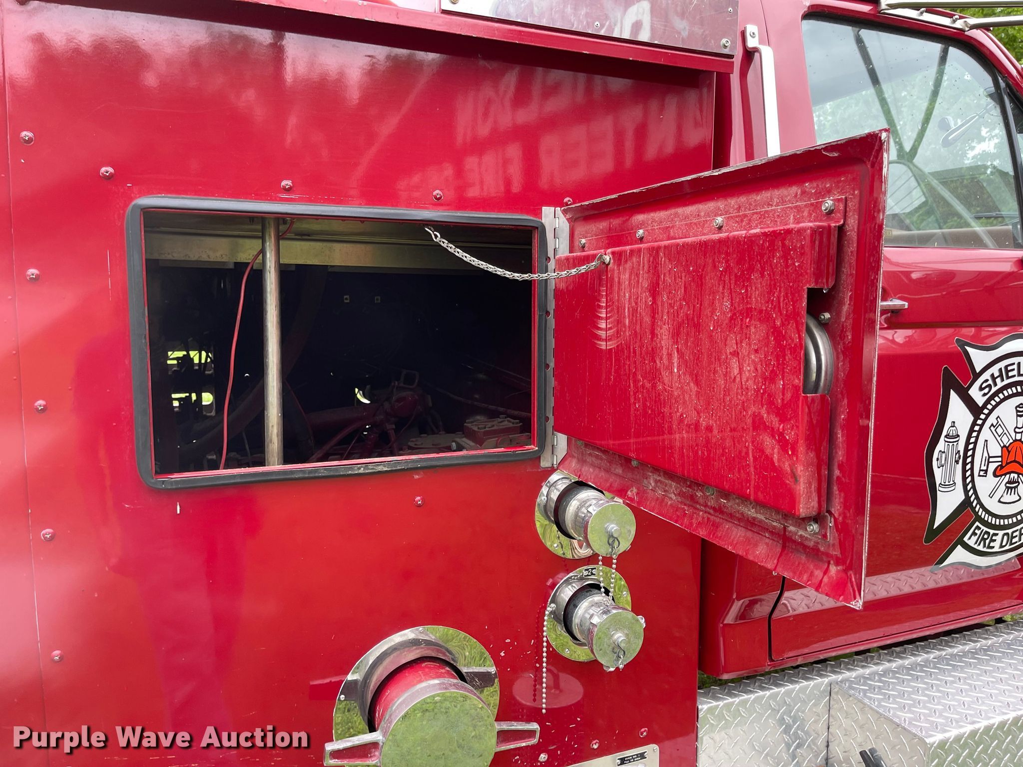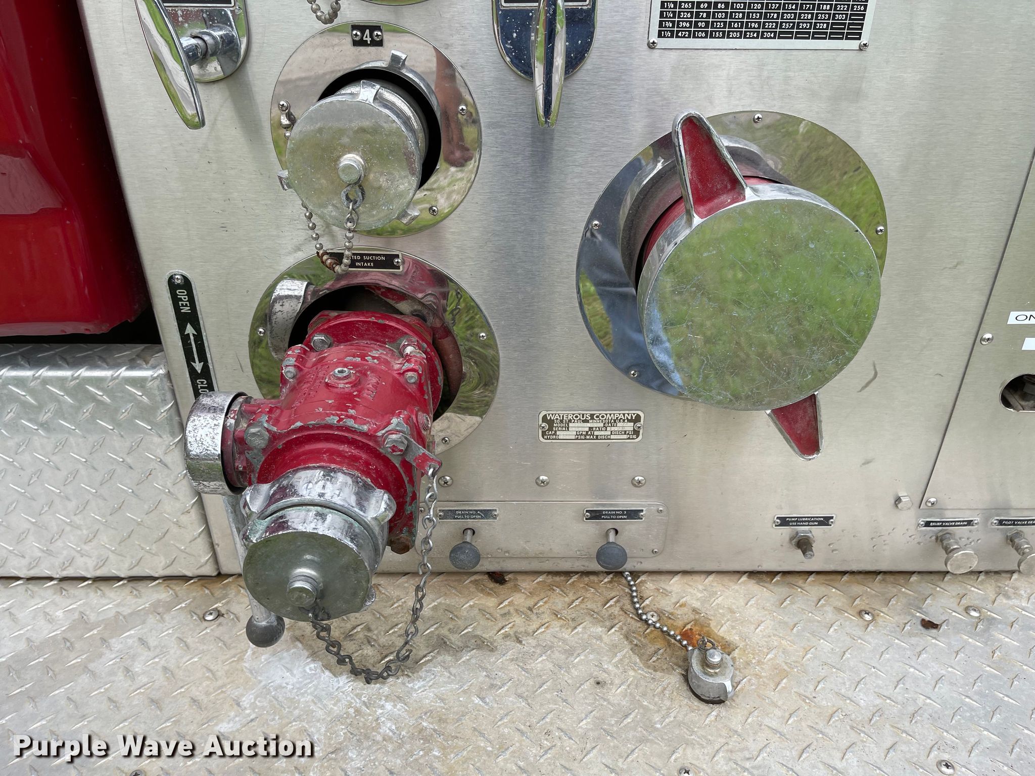 1982 Ford F800 pumper fire truck. Miles: 17,753 on odometer, VIN: 1FDXF82K4CVA44757. Engine Displacement: 7.0L V8, Cylinders: 8, Fuel type: Gas. Transmission Manual, Speed: 5. Chassis Axles: Single, Suspension: Spring, Brakes: Air. Interior Heat. Features Fire truck body Pump 1,000 gpm, Hose. Tires Size: 10.00R20. Notes Broken driveshaft, Non-operational unit. Missouri title. Sheldon Fire Department. Sheldon, MO 64784