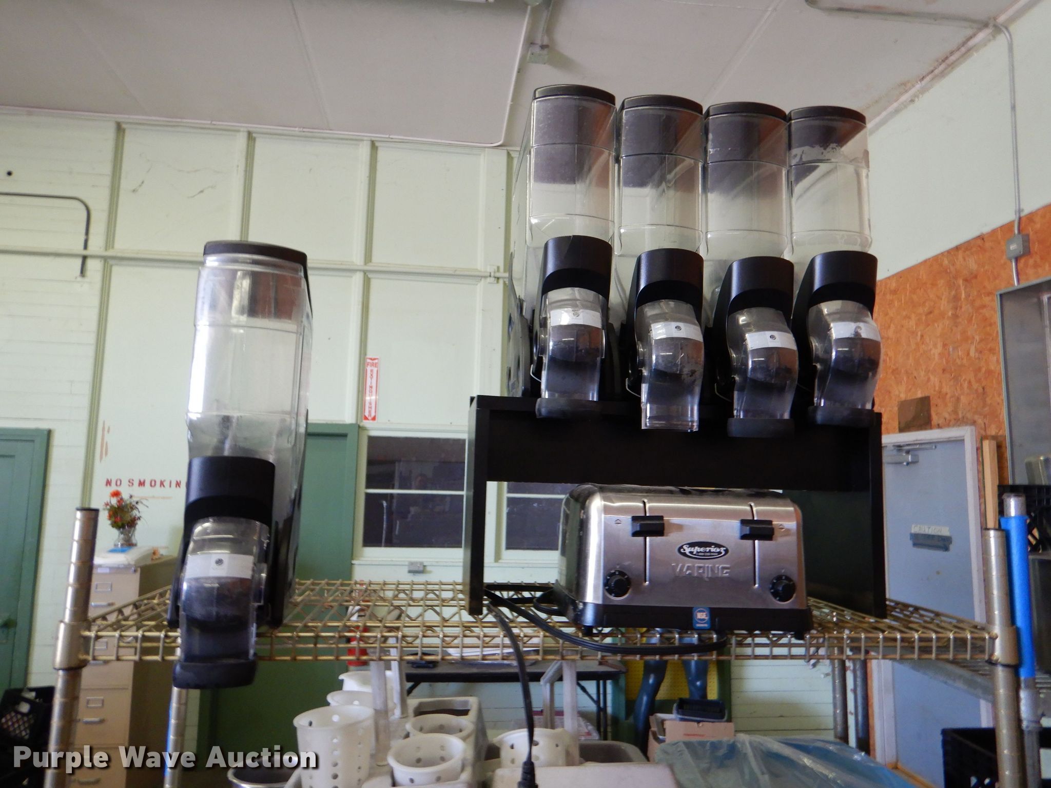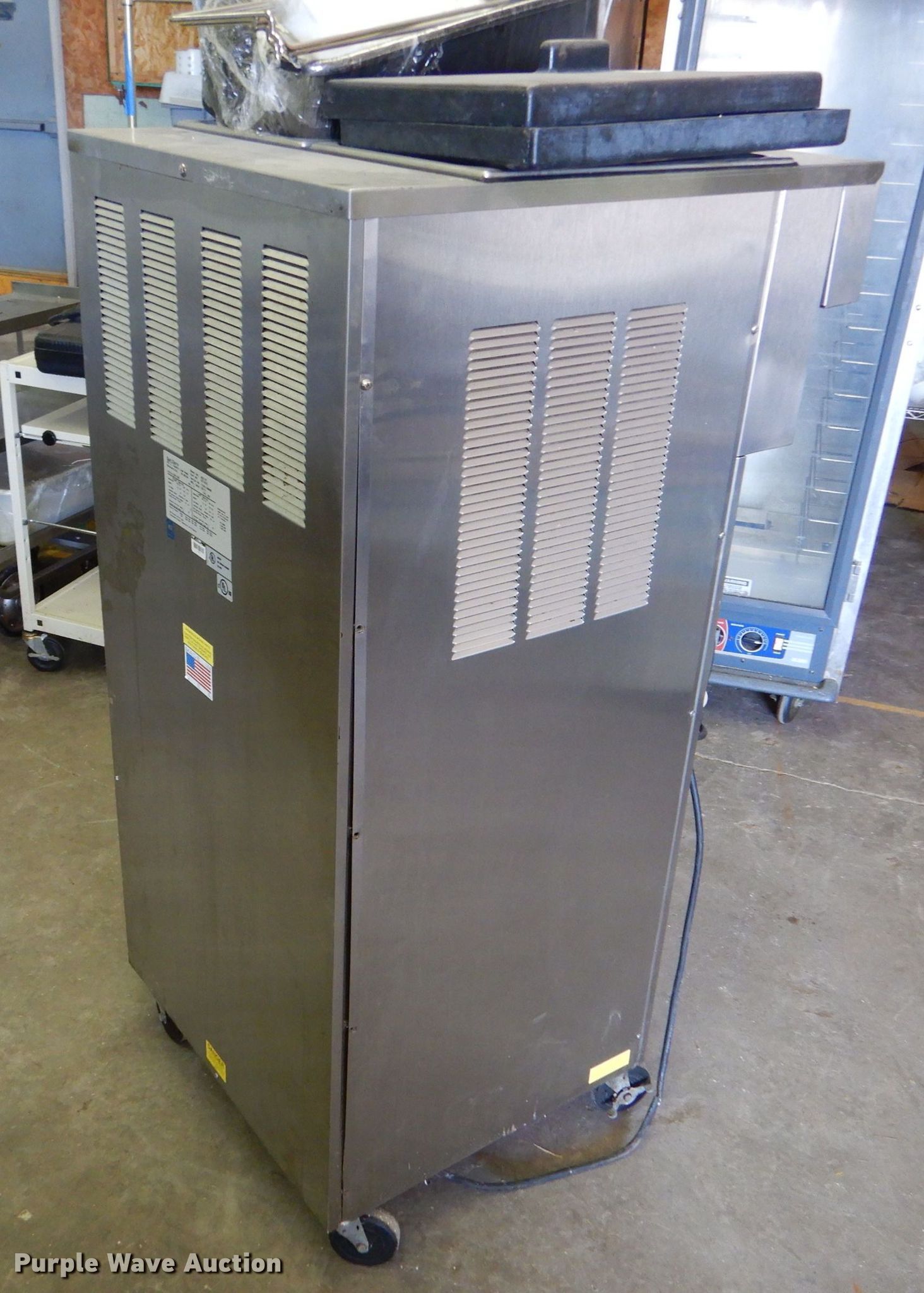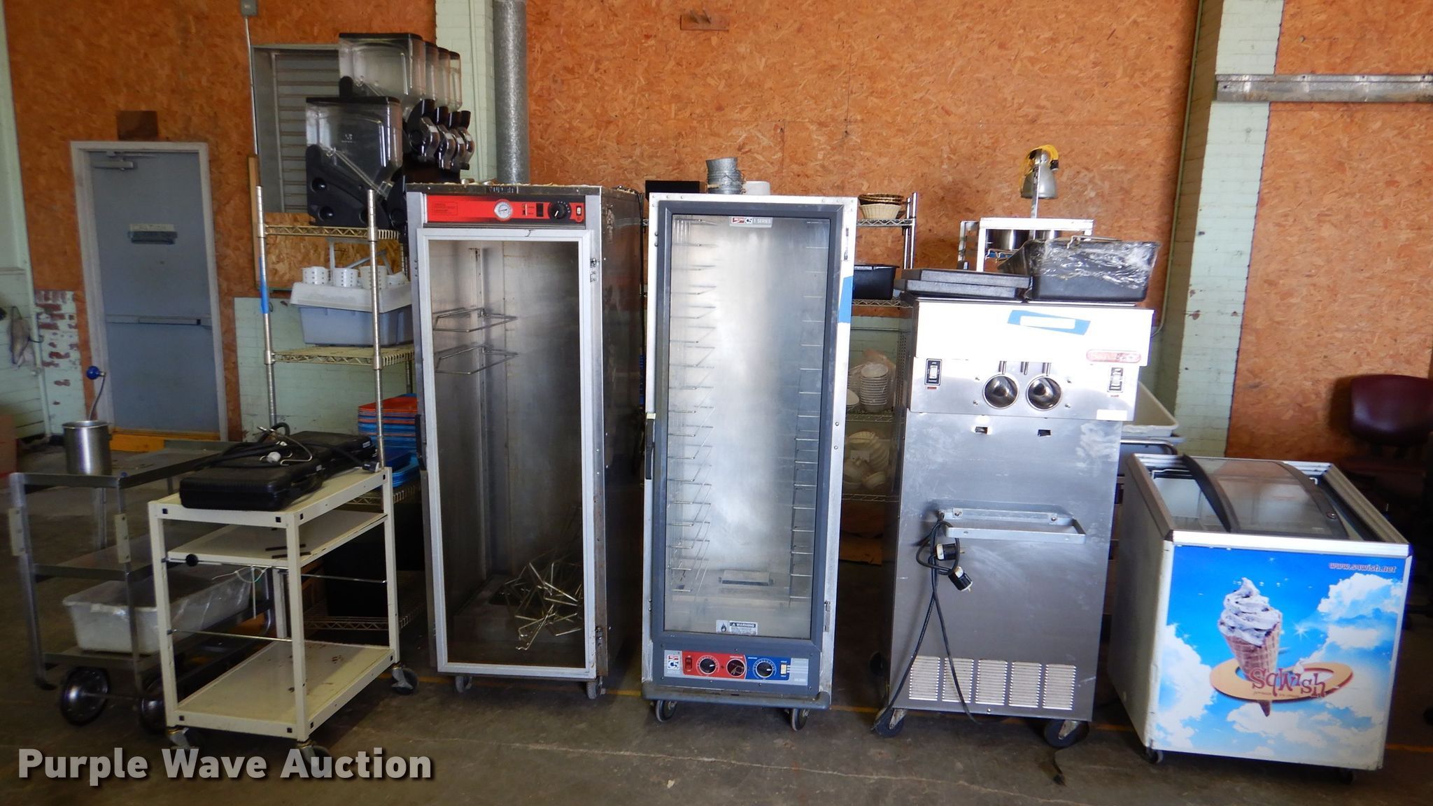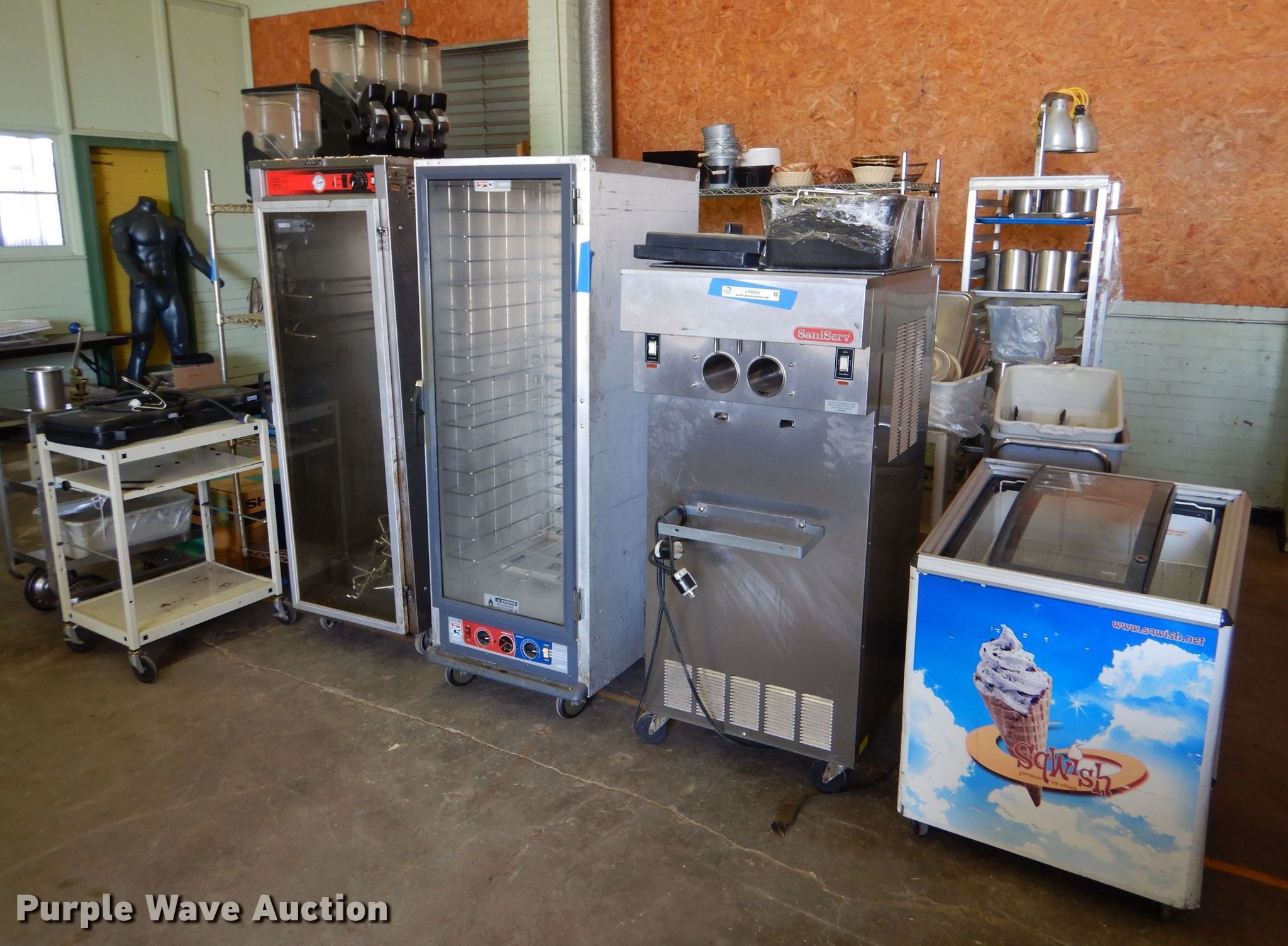 Purple Wave is selling a used Restaurant Equip. in Kansas. This item is a Restaurant equipment with the following: SaniServ model A5211P ice cream machine, Ojeda CHP68 Freezer, (2) proofers, Gas stoves, Sharp microwave, Carts, (3) storage shelves, Toaster, Dishes, Trays, Cereal holders and more