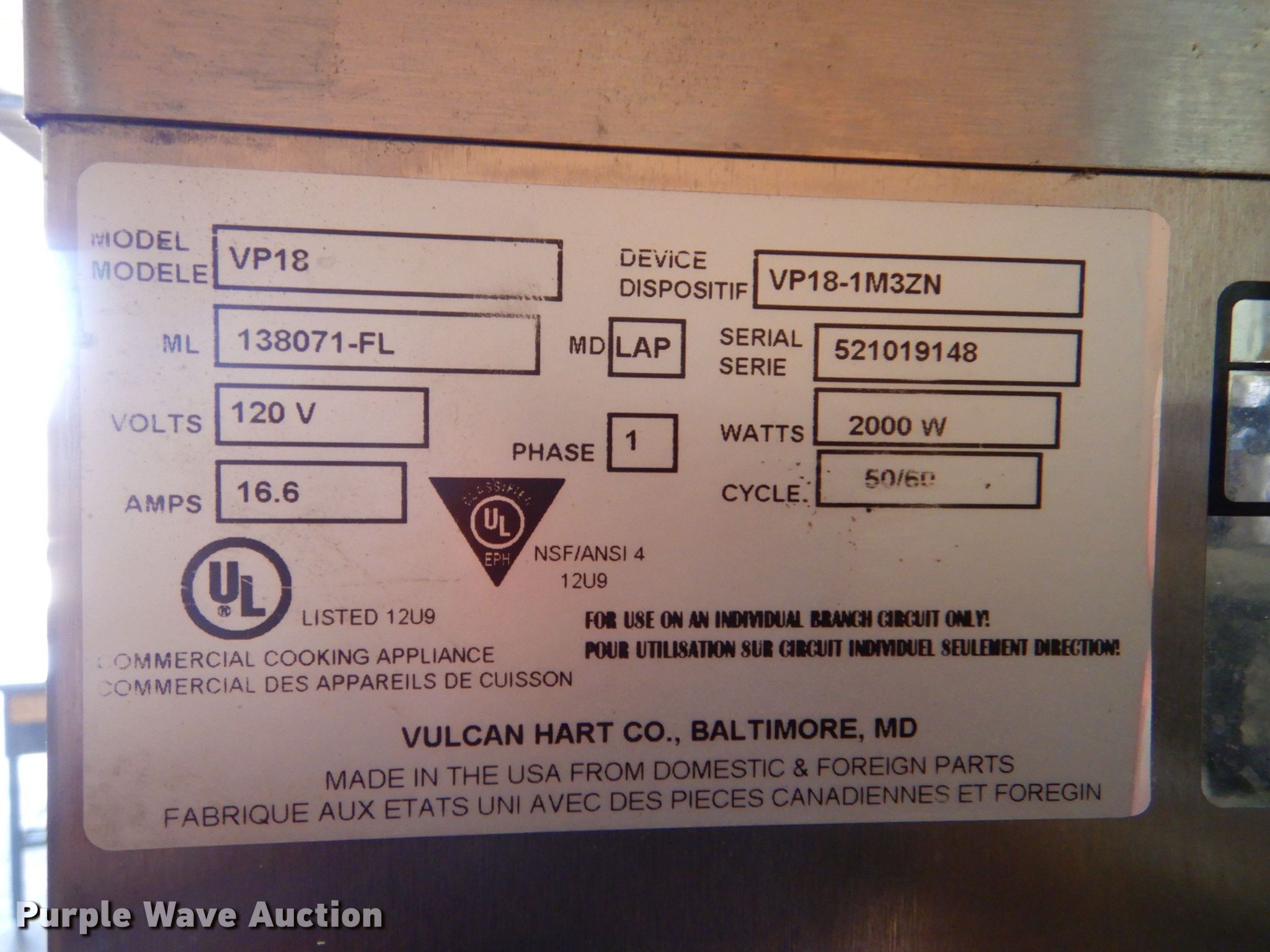 Restaurant equipment has sold in Hutchinson, Kansas for $1430. Item LP9305 sold on July 12th, 2022.