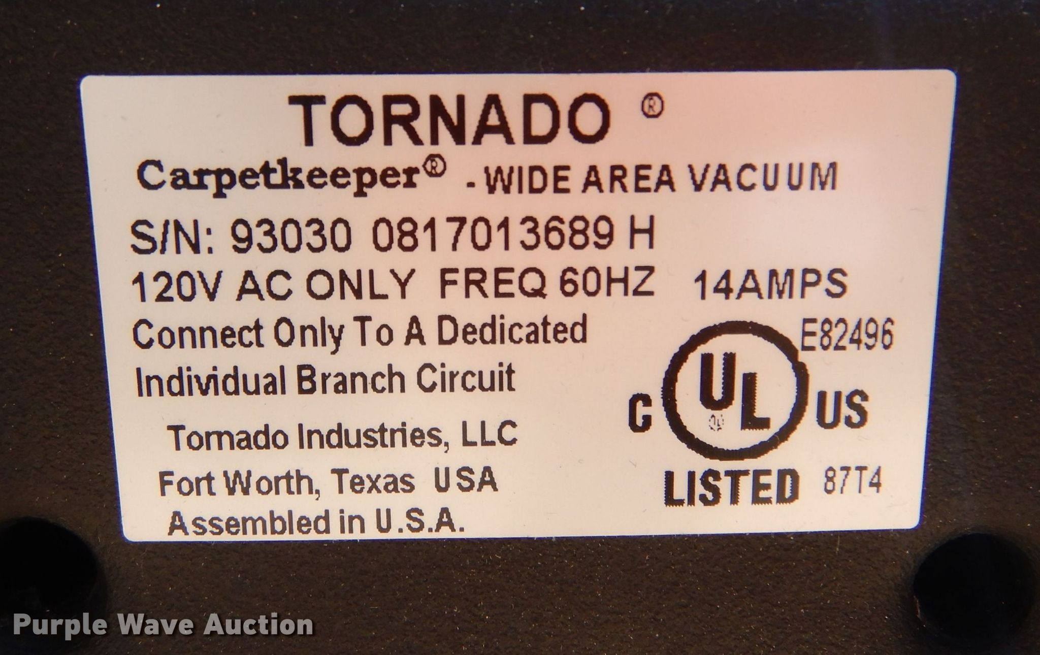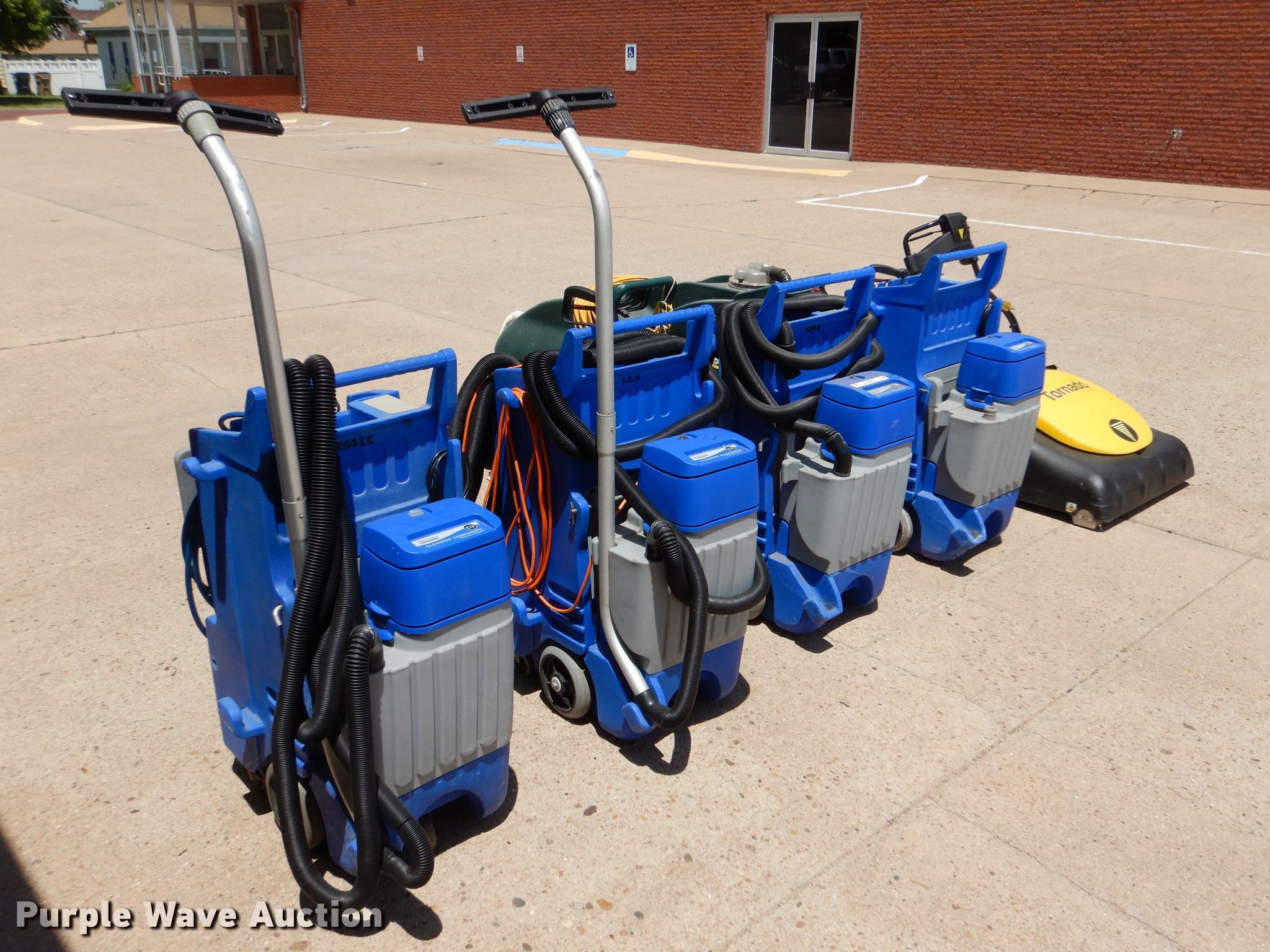 Purple Wave is selling a used All Other Household Items in Kansas. This item is a (7) floor cleaning machines with the following: (4) Hilliard C3 Cleaning Companion Recovery System, 120V, (2) units missing batteries, Tornado Carpetkeeper wide area vacuum, 120V, Nobles Power Eagle 1016 Plus walk behind vacuum cleaner extractor, 120V, Diaphram pump non-operational, Nobles Typhoon EV wet/dry vacuum, Model: 608688, 120V, Motor non-operational