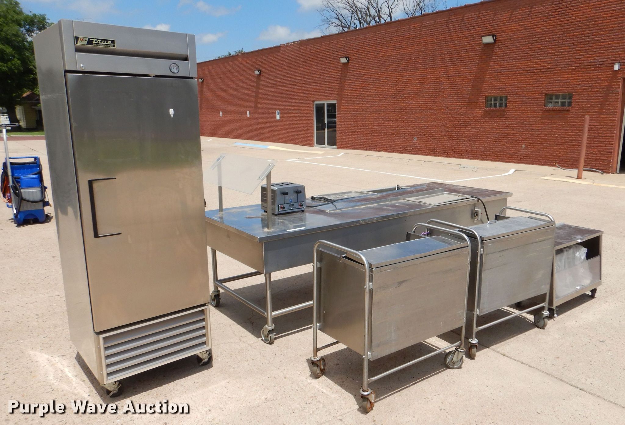 Restaurant equipment. True T-23 refrigerator 115V, Single phase, Leaks refrigerant, Stainless steel warming/serving table Approximately 10' L x 43" W x 34" H, Single phase, Waring Commercial WCT800 toaster 120V, Single phase, (3) Stainless steel tray carts (2) 35" L x 20.5" W x 38" H, 33" L x 15" W x 25.5" H (9) trays.. USD 431 Hoisington. Hoisington, KS 67544