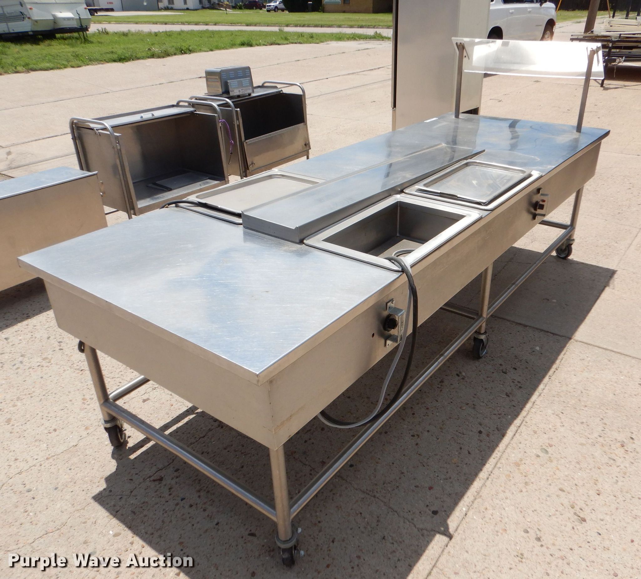 Purple Wave is selling a used Restaurant Equip. in Kansas. This item is a Restaurant equipment with the following: True T-23 refrigerator, 115V, Single phase, Leaks refrigerant, Stainless steel warming/serving table, Approximately 10' L x 43" W x 34" H, Single phase, Waring Commercial WCT800 toaster, 120V, Single phase, (3) Stainless steel tray carts, (2) 35" L x 20.5" W x 38" H, 33" L x 15" W x 25.5" H, (9) trays,