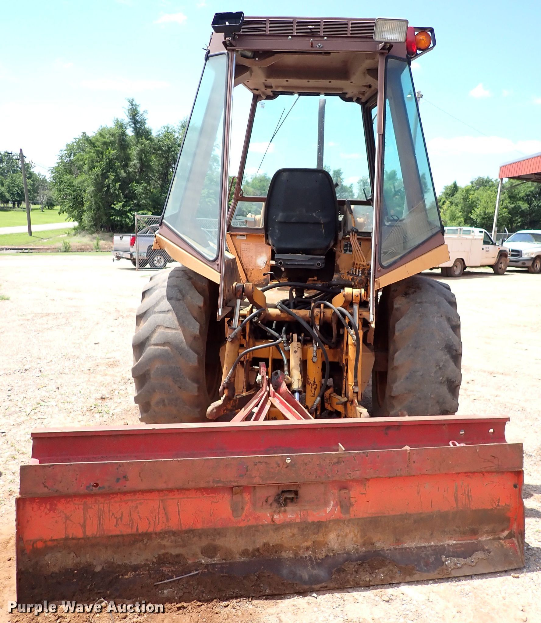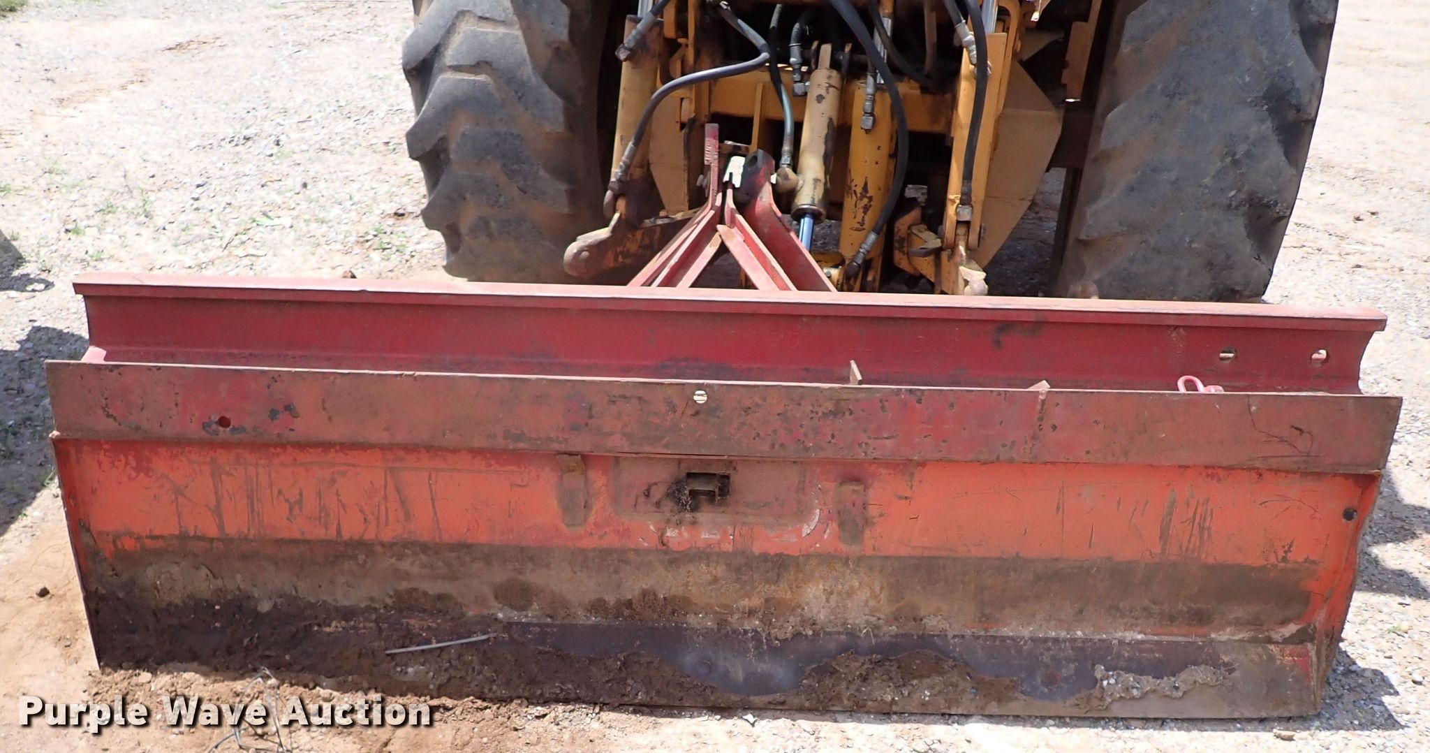 1984 Case 580 Super E landscape tractor. Hours: 6,766 on meter, Serial: 9874166. Engine Case 4-390, Serial: 44114868, Cylinders: 4, Fuel type: Diesel. Transmission Shuttle shift, 4F - 4R. Chassis Differential lock. Operators station Enclosed cab, AC, Heat, Backhoe controls: Four stick. Features Loader Bucket Width: 81", Box blade Width: 84", Cutting edge: Front. Tires Size: 11L-16SL. Notes Rear glass missing. City of Geary. 115 S Broadway. Geary, OK 73040