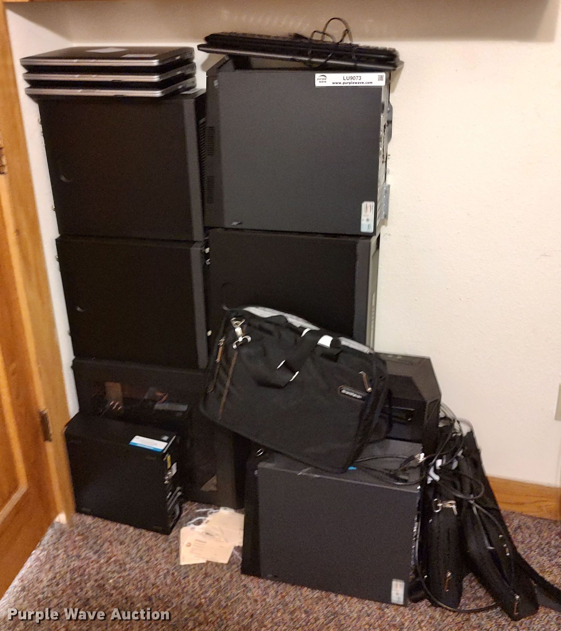 Purple Wave is selling a used Computers in Oklahoma. This item is a Computers with the following: (3) Dell laptops, (7) CPU's, Laptop bags