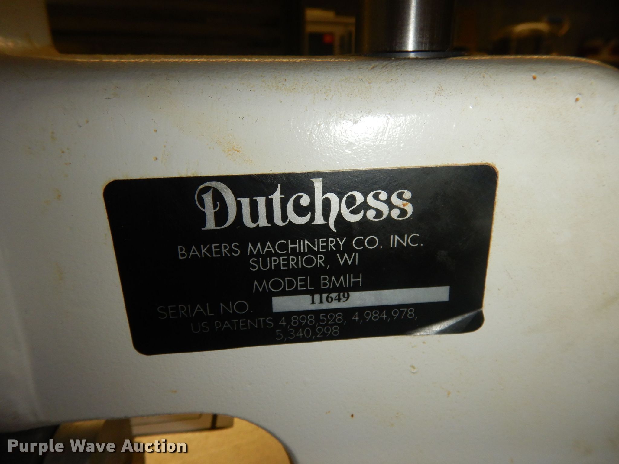 Purple Wave is selling a used Restaurant Equip. in Kansas. This item is a Dutchess dough cutter with the following: Serial: 11649