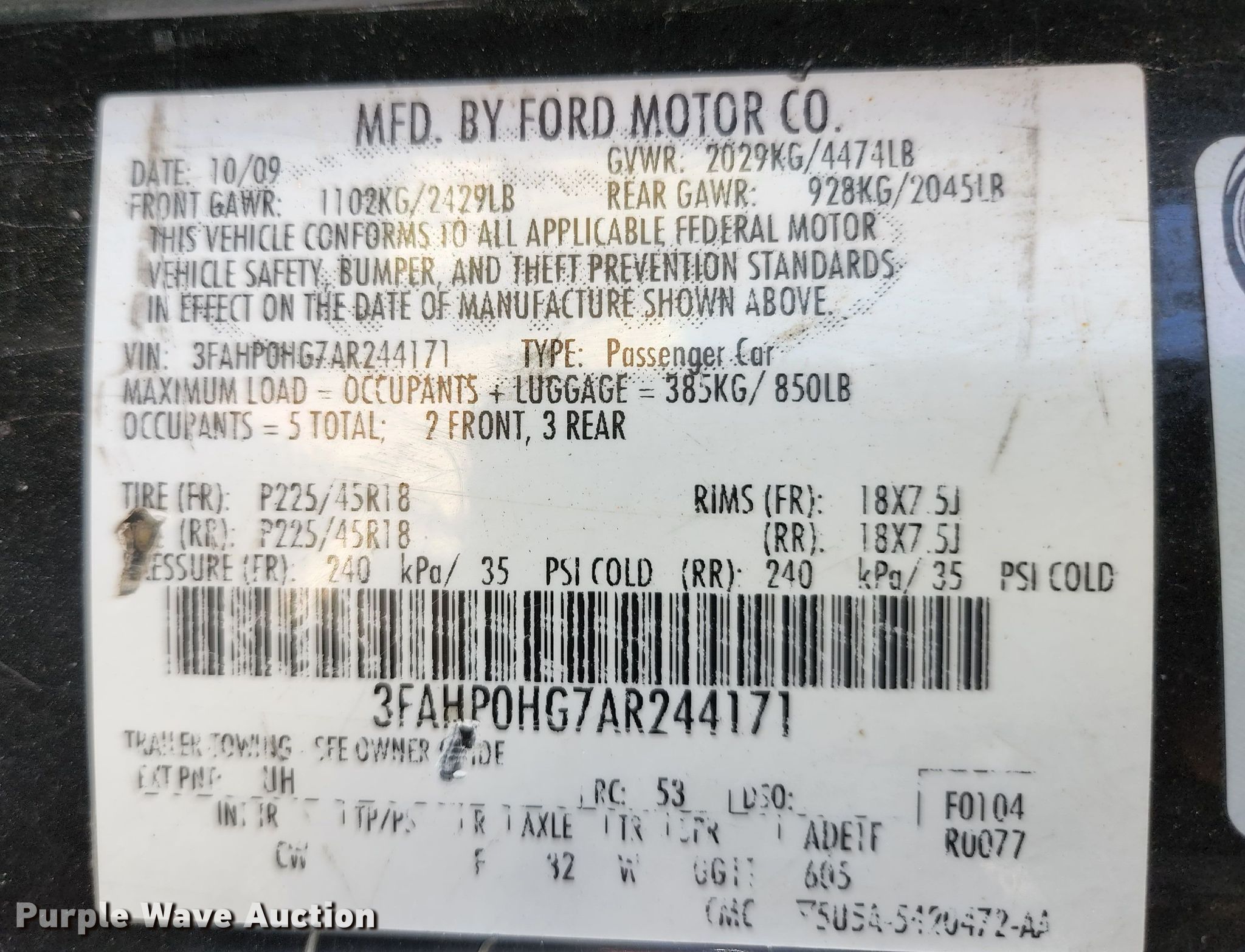 - VIN: 3FAHP0HG7AR244171