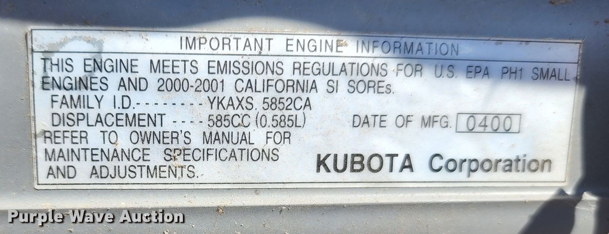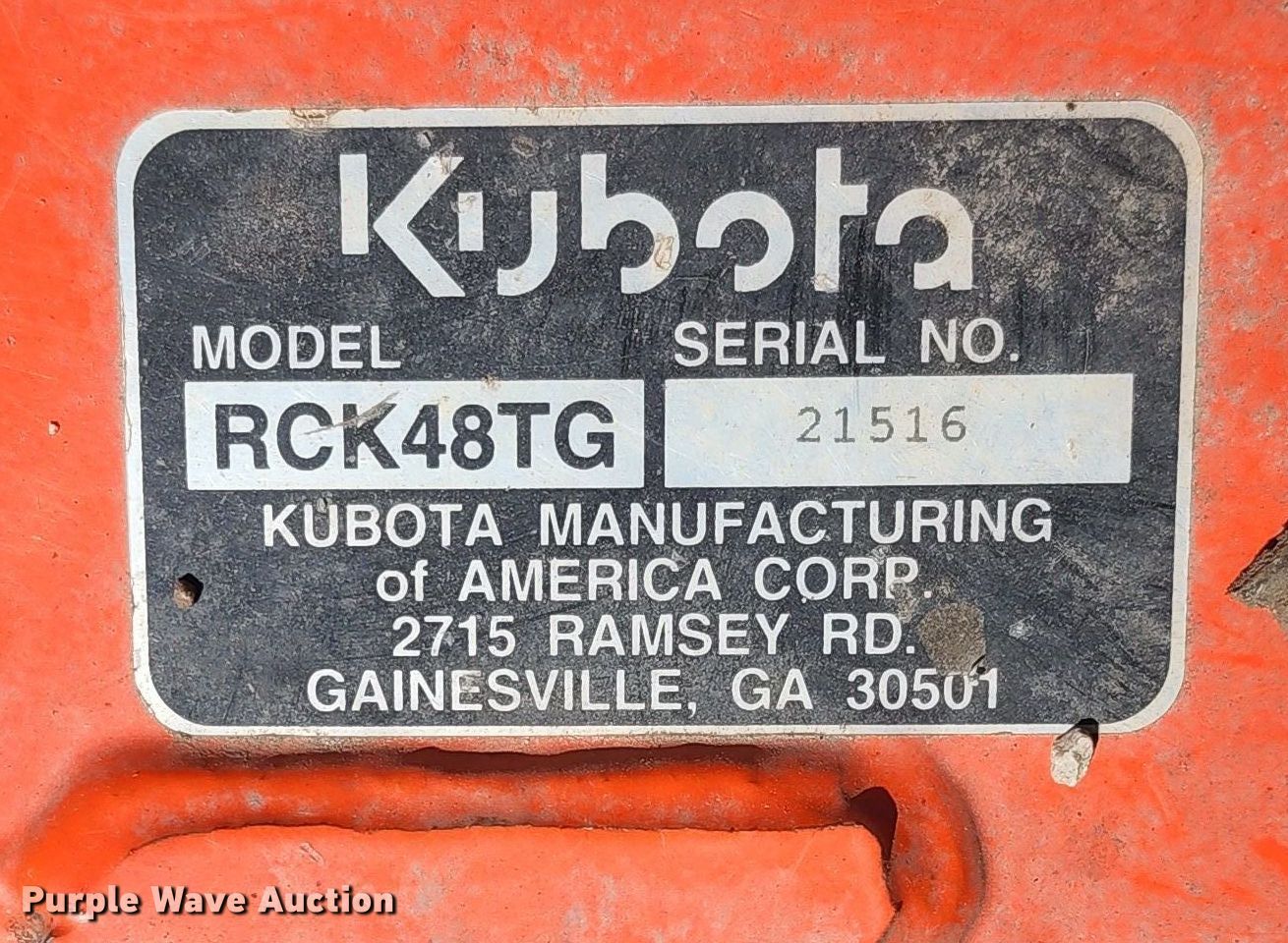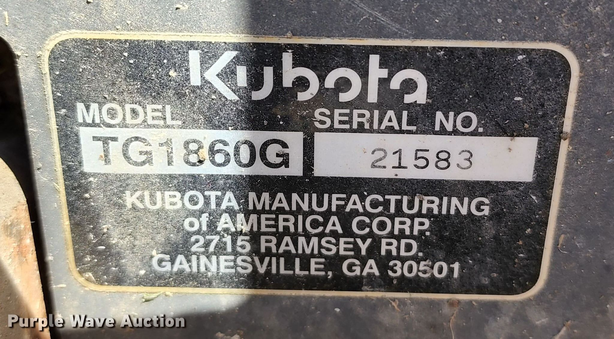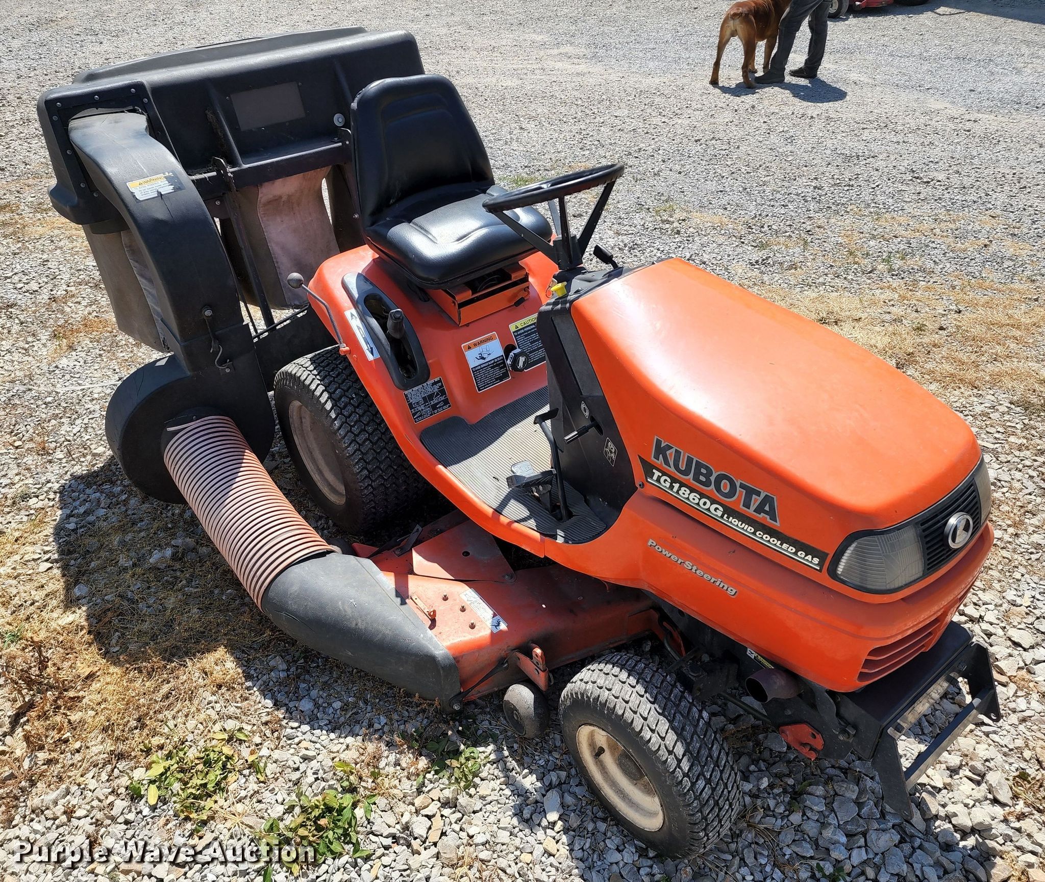 Purple Wave is selling a used Lawn Mower in Missouri. This item is a Kubota TG1860G lawn mower with the following: Hours: 569 on meter, Cutting width: 48", Serial: 21583