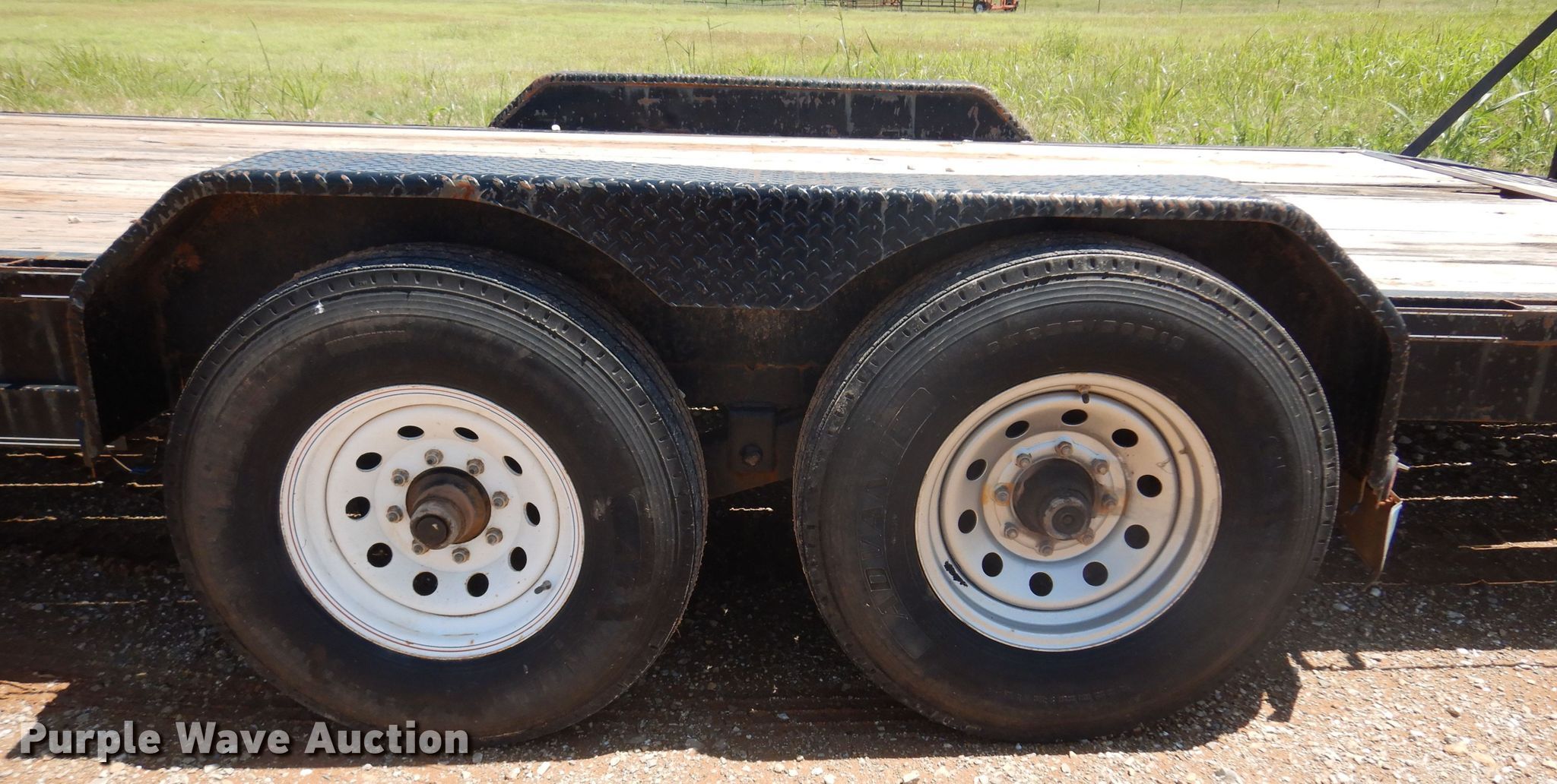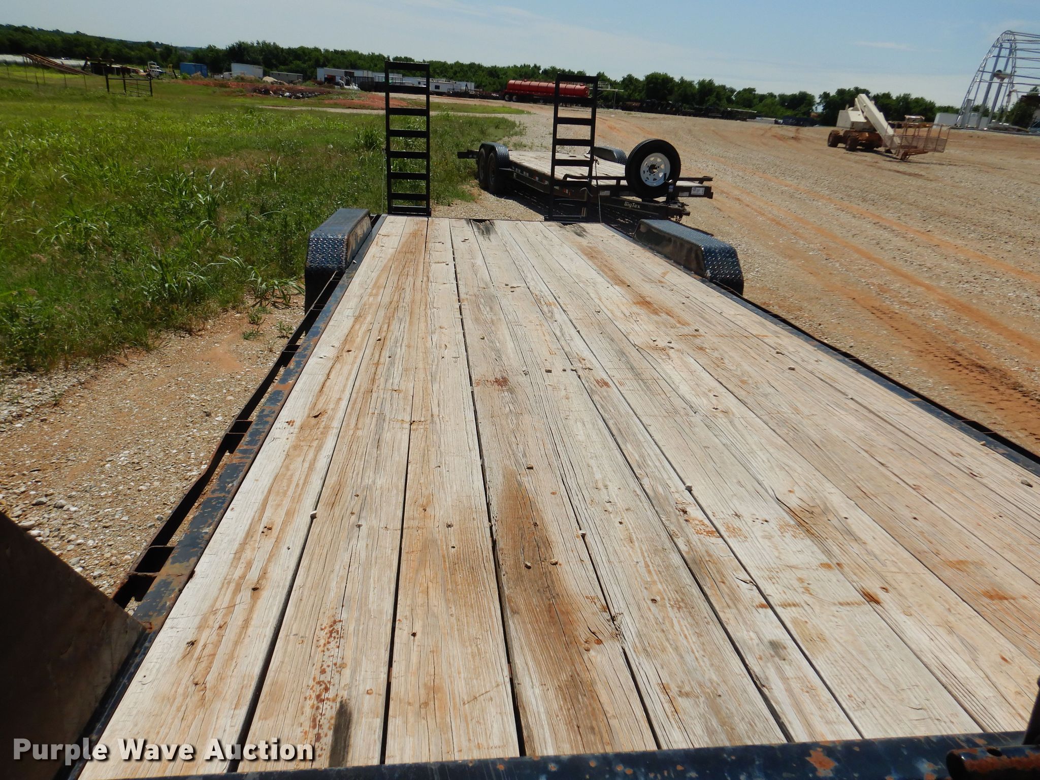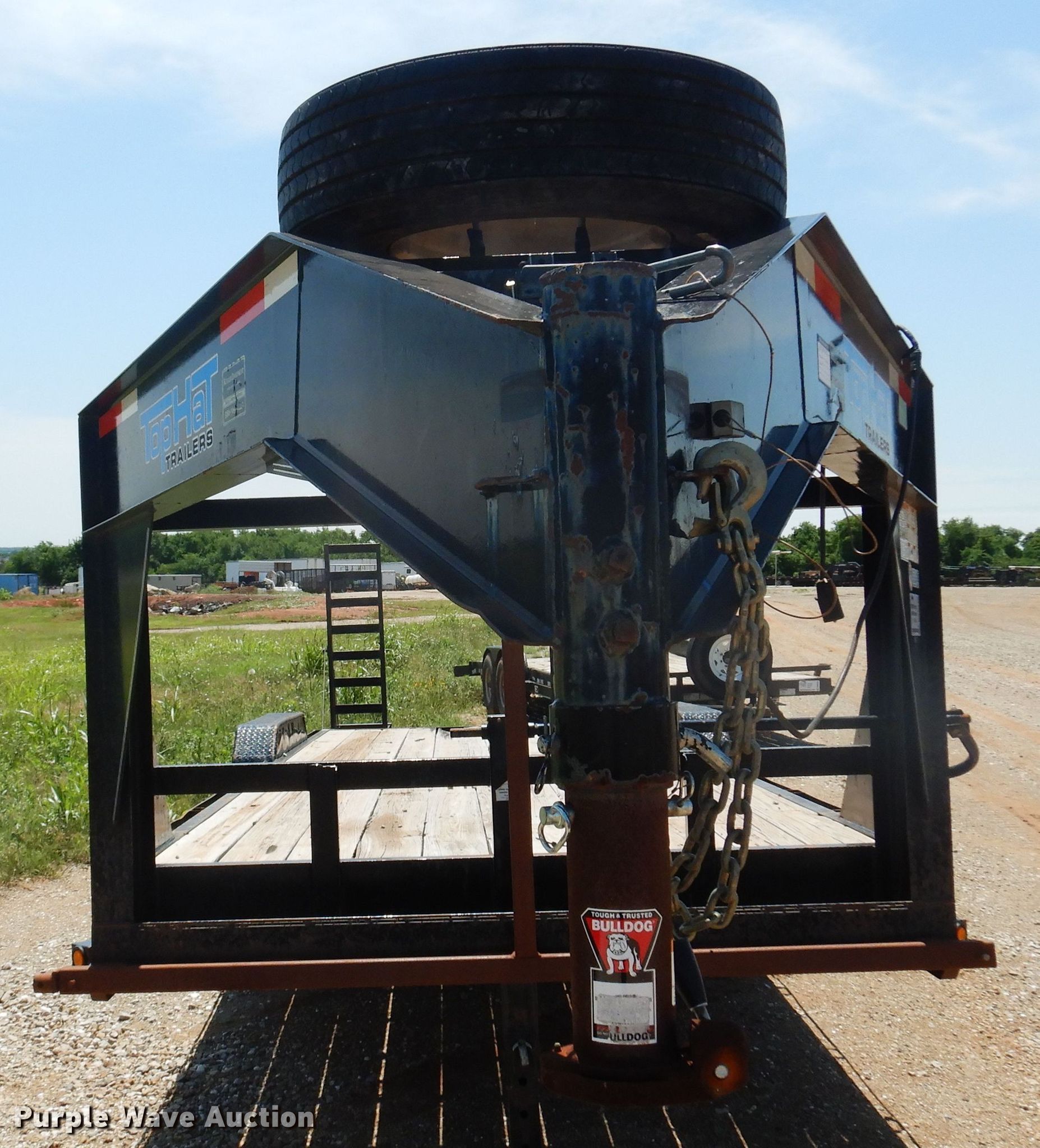 2013 Top Hat equipment trailer. VIN: 4R7GU2427DT126728. Dimensions Overall: 30' L x 87" W, Deck: 22' L x 83" W, Tail length: 2', Ramps: Manual Length: 4' 10". Features Deck type: Wood. Chassis Hitch: Gooseneck, Landing gear: Single, Suspension: Spring, Brakes: Electric, Axles: Tandem. Tires Steel wheels, Size: 235/80R16. Oklahoma title. J and J Solutions. Perry, OK 73077