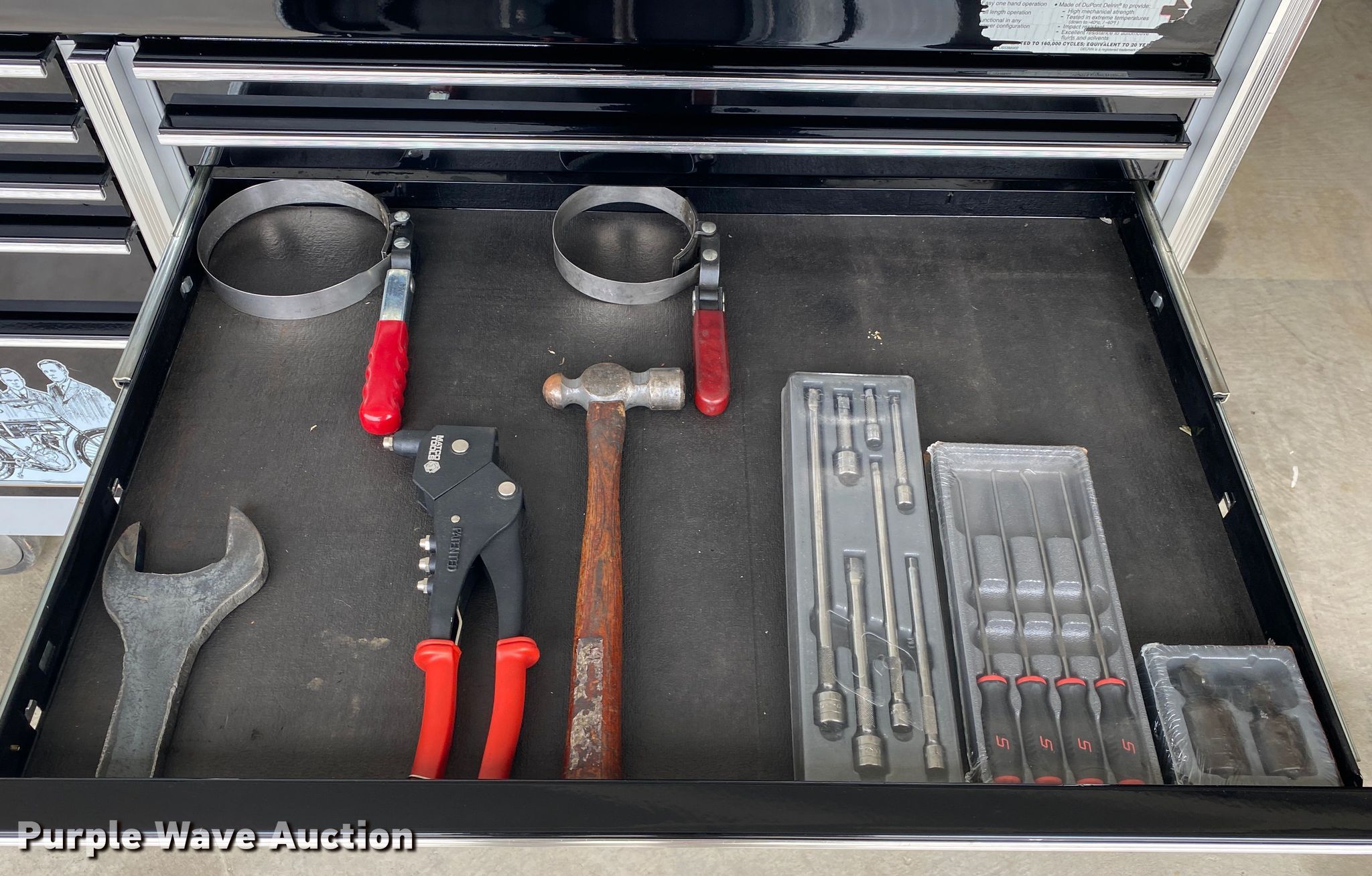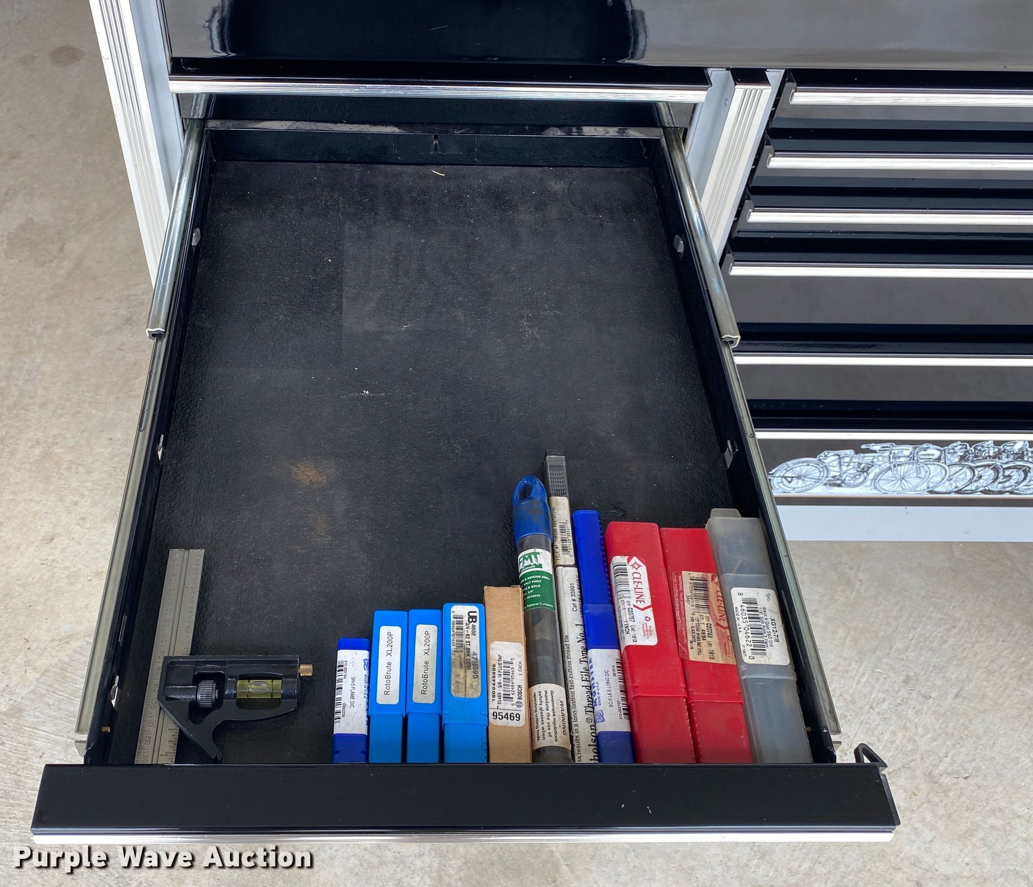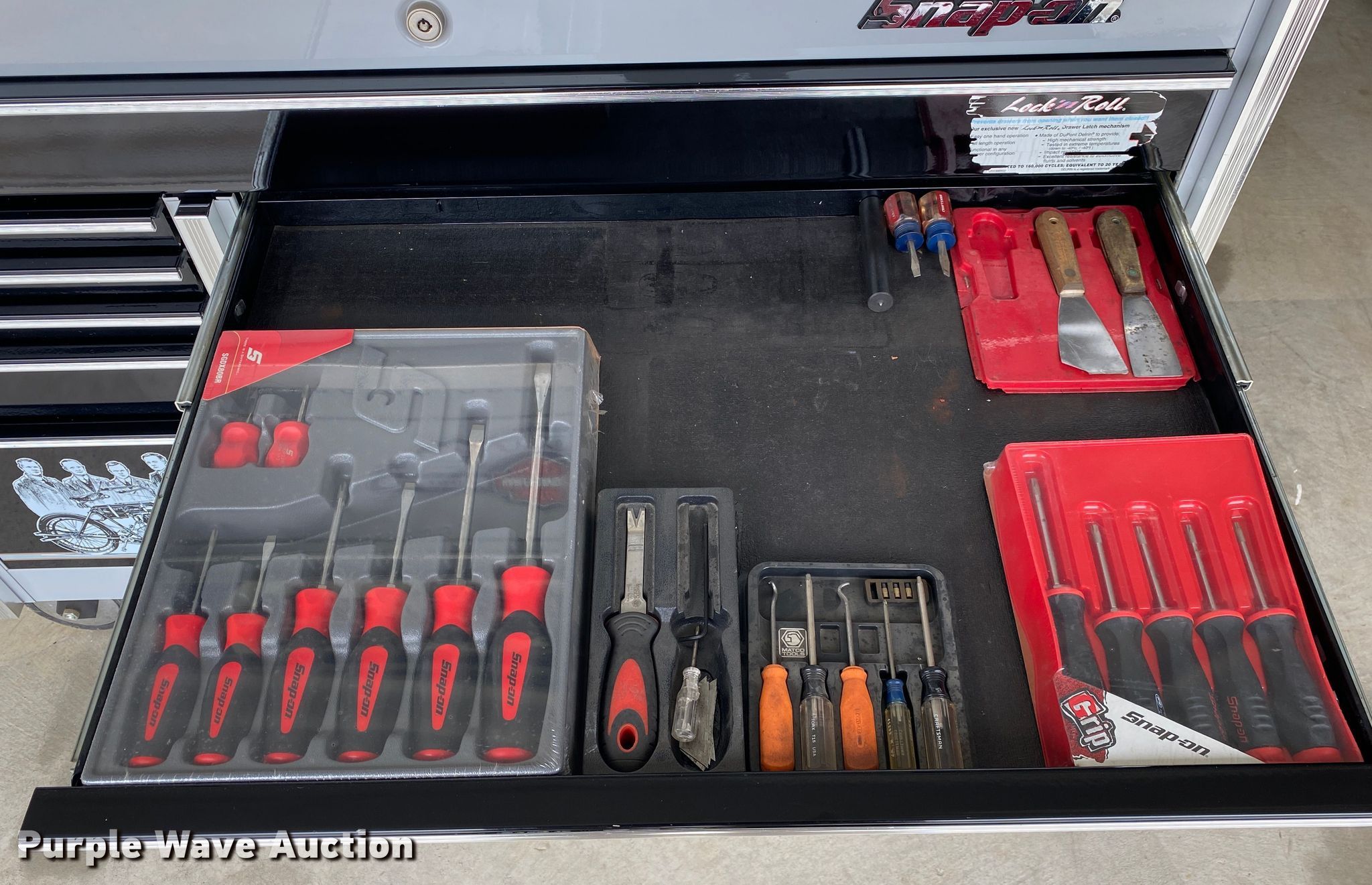 Purple Wave is selling a used Tools in Oklahoma. This item is a Snap-on Harley Davidson 100 Year toolbox with the following: 54"L x 2'W x 81"H, (11) drawers, Tools