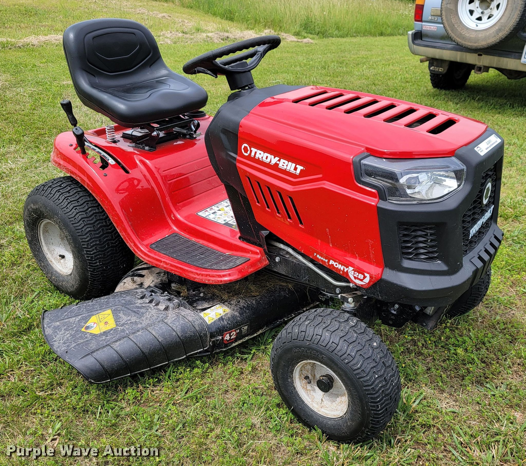 Purple Wave is selling a used Lawn Mower in Missouri. This item is a Troy-Bilt Pony 42B lawn mower with the following: Cutting width: 42", Serial: 1F08MB70137