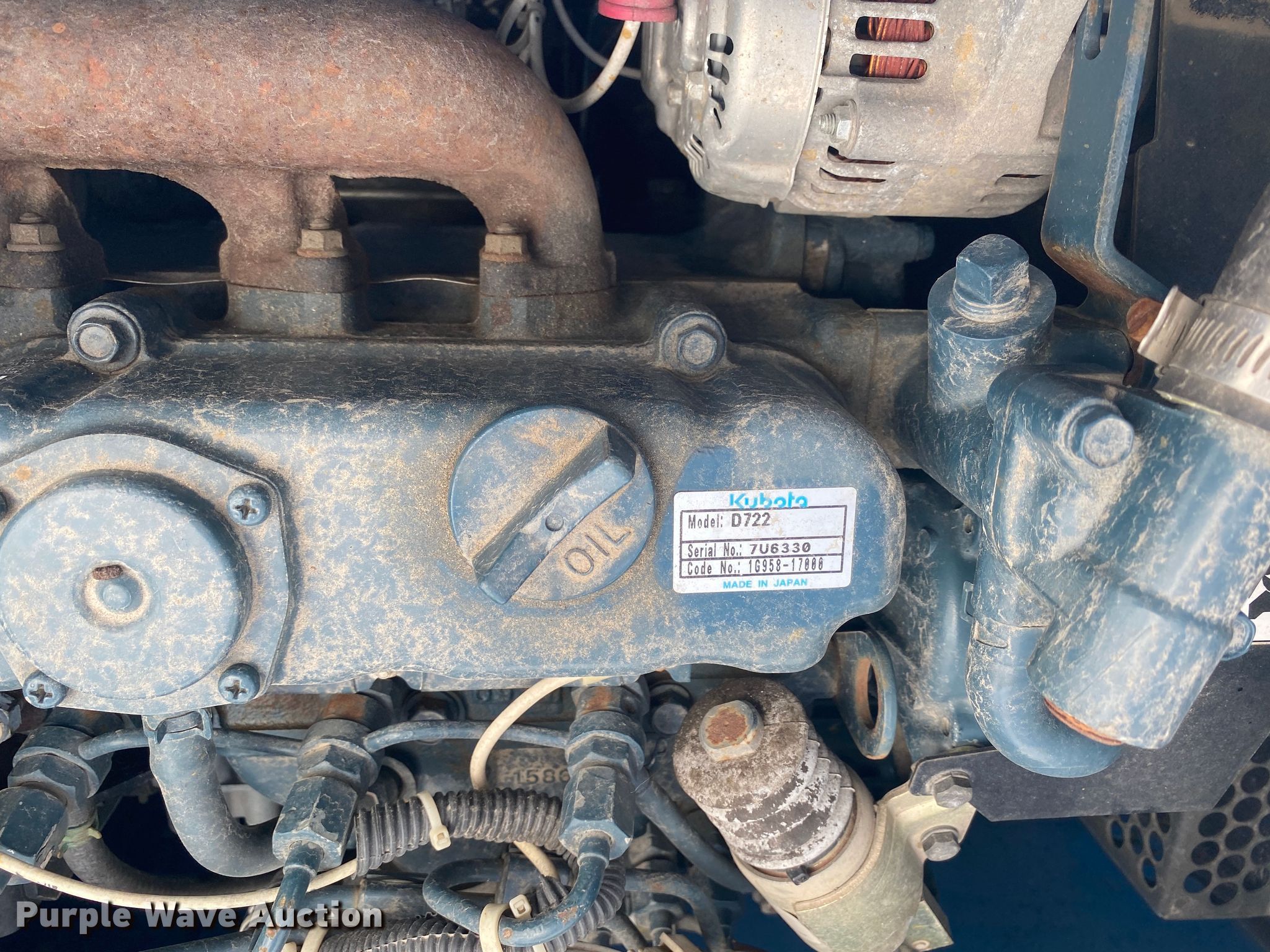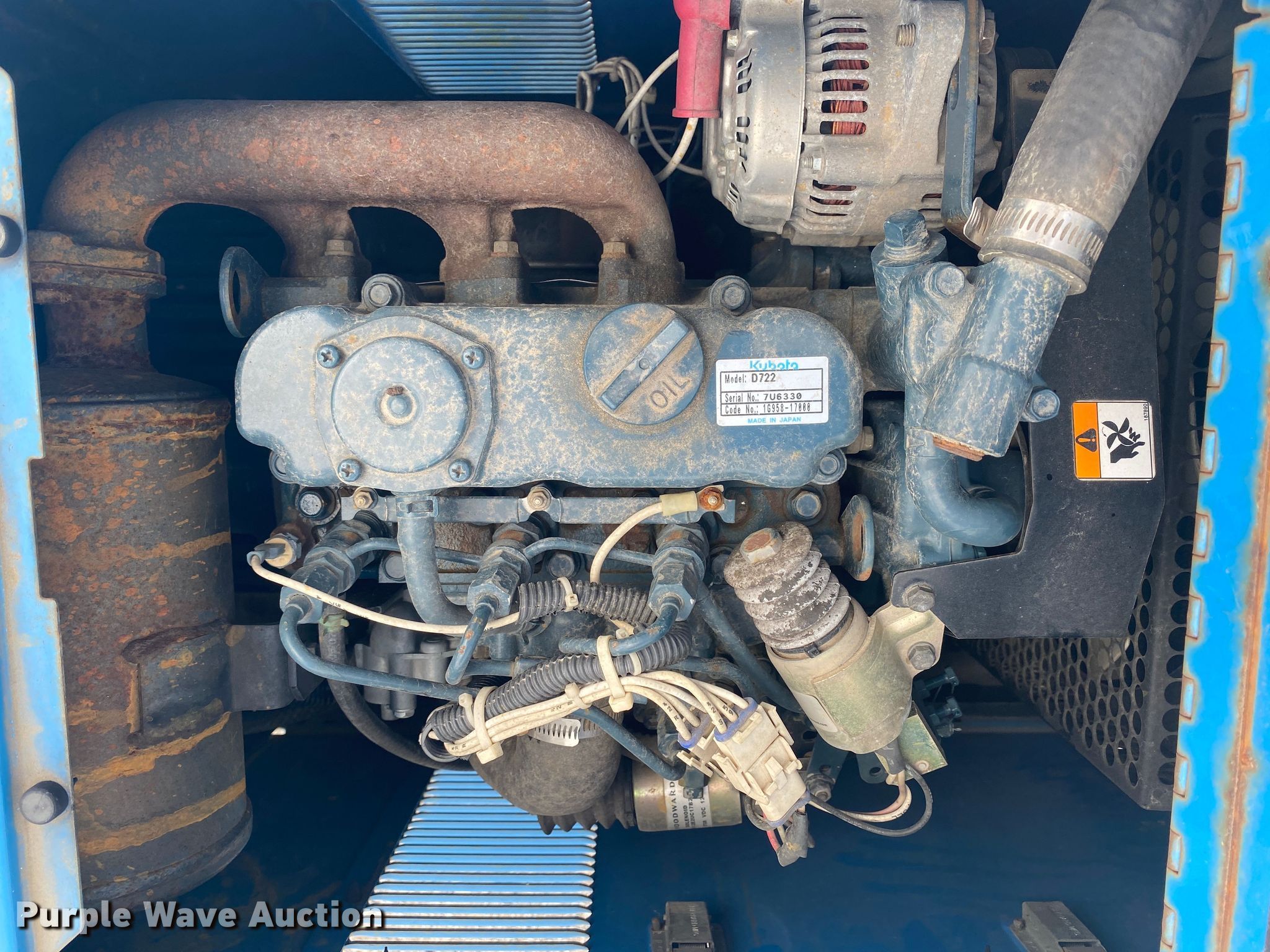 Miller Bobcat 250 welder. Hours: 80 on meter, Serial: LJ080014Q. Engine Kubota D722, Serial: 7U6330, Cylinders: 2, Fuel type: Diesel. Features Welder Capabilities: CC, CV, DC, AC, Generator Watts: 10,500, kW: 10.5, Phase: Single, 240V outlets: 1, 120V outlets: 4. 15600 North 145th East Avenue. Collinsville, OK 74021